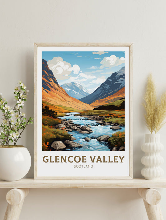 Affiche de voyage de la vallée de Glencoe - Œuvre d'art écossaise