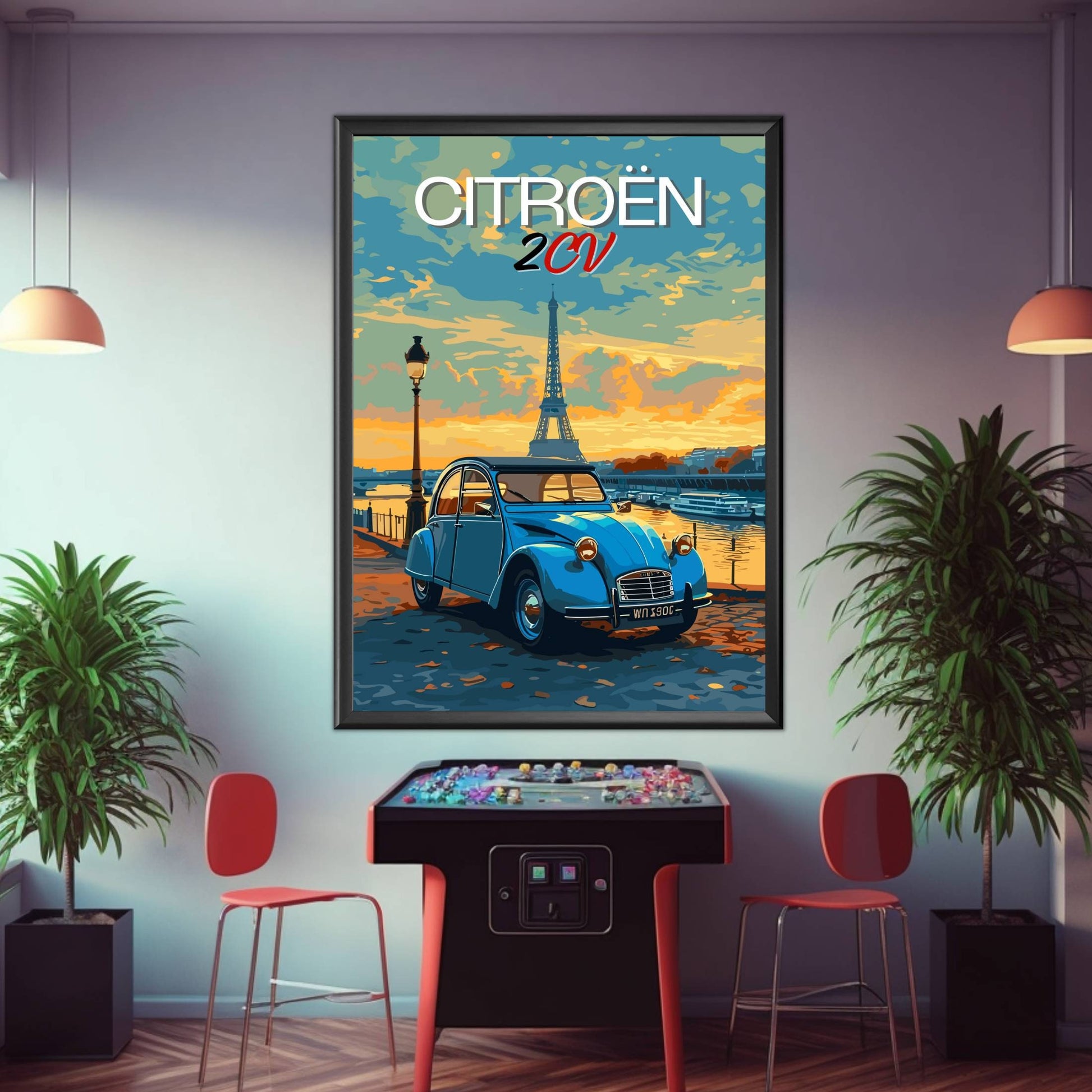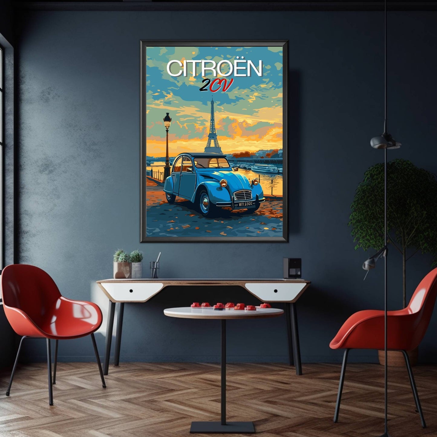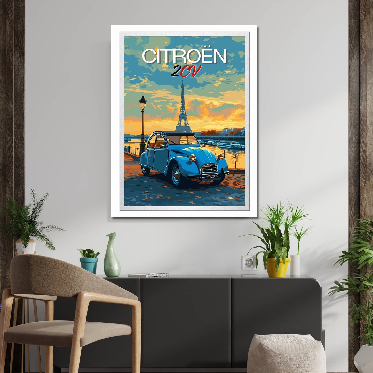 Sublimez votre intérieur ou votre bureau avec cette affiche emblématique de la Citroën 2CV des années 1950 , un incontournable pour les passionnés et collectionneurs de voitures anciennes. Représentée par la légendaire Citroën 2CV française dans un design rétro classique, cette affiche murale capture le charme de la culture automobile des années 1950. Parfaite pour les amateurs de voitures classiques , d'affiches de voitures anciennes , de voitures françaises rétro et de souvenirs automobiles , cette impression de haute qualité apporte une élégance intemporelle à tout espace. Idéale pour les salons, les bureaux, les garages ou comme cadeau unique pour les passionnés d'automobile , cette affiche Citroën 2CV allie nostalgie et style artistique.