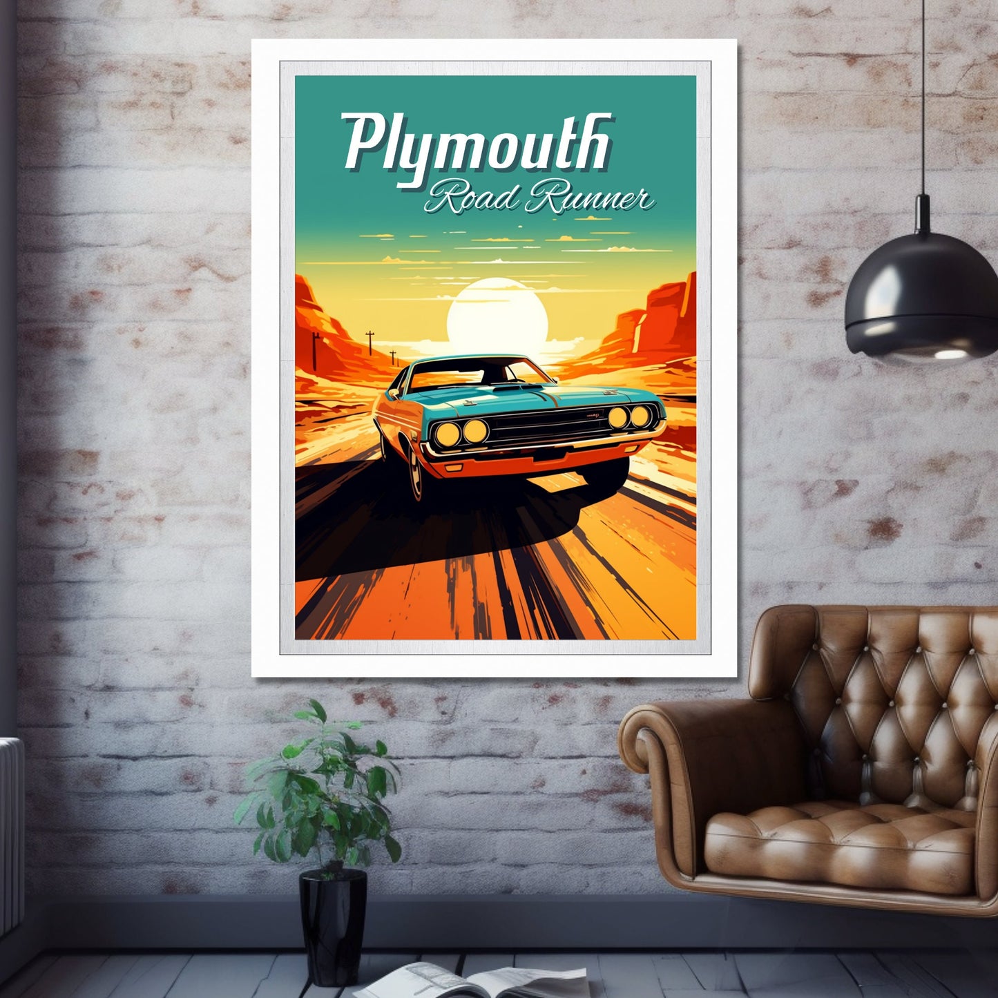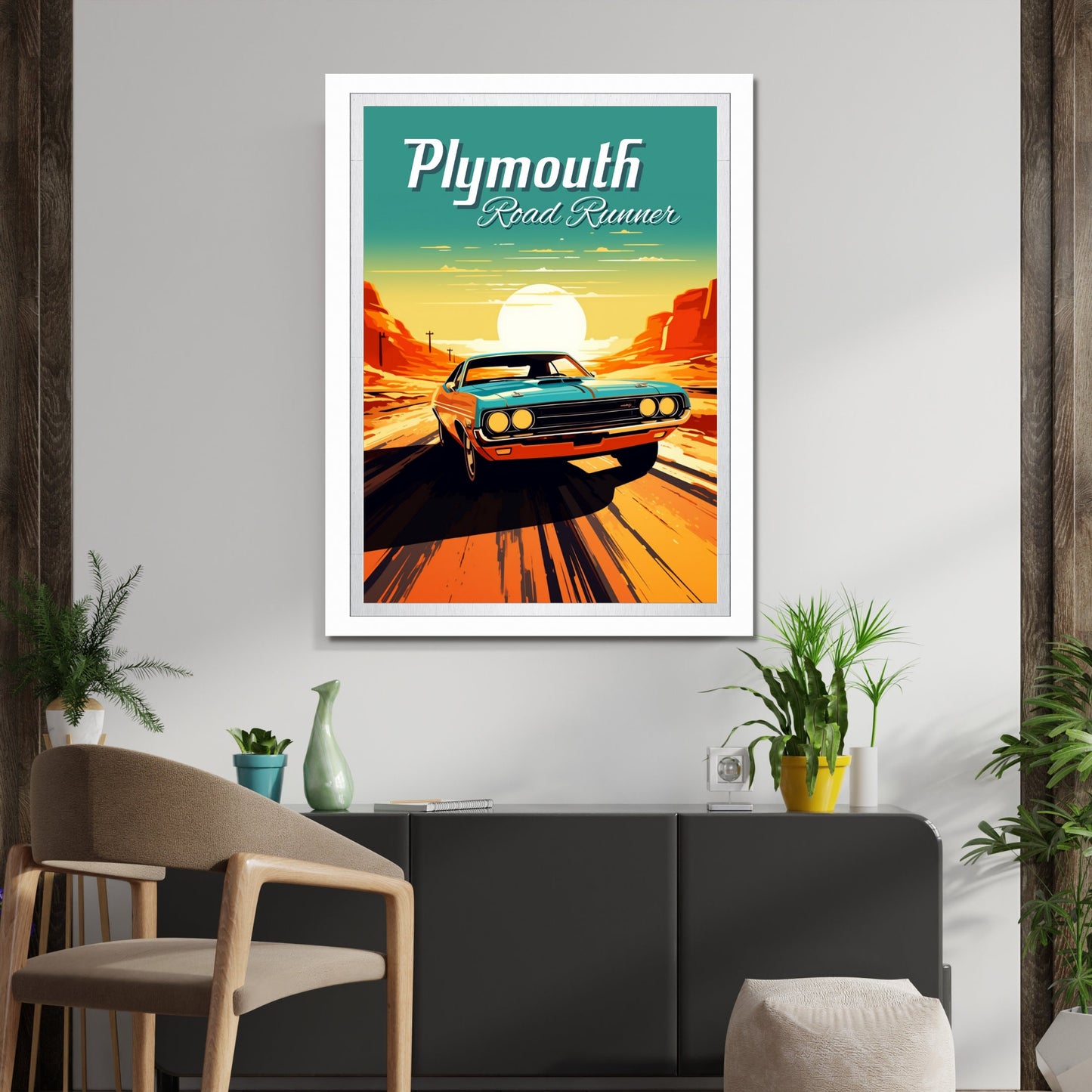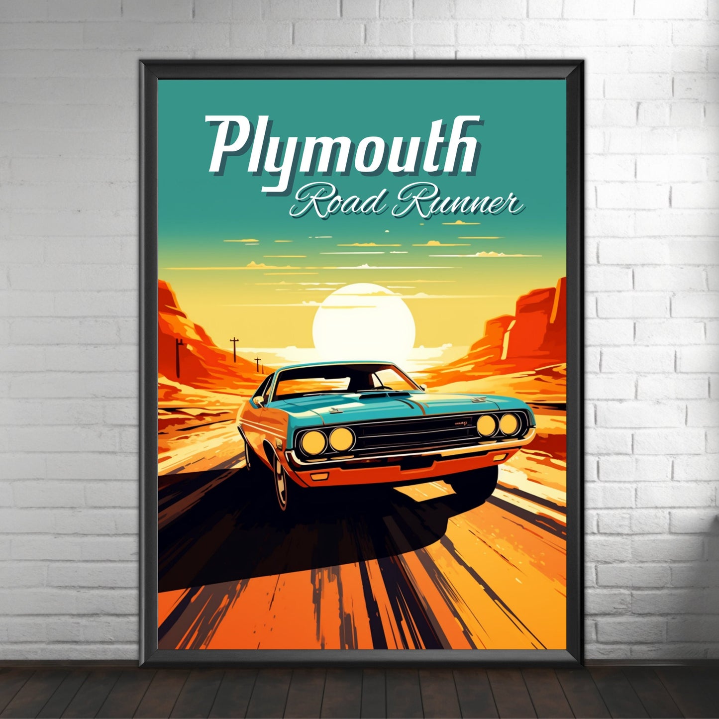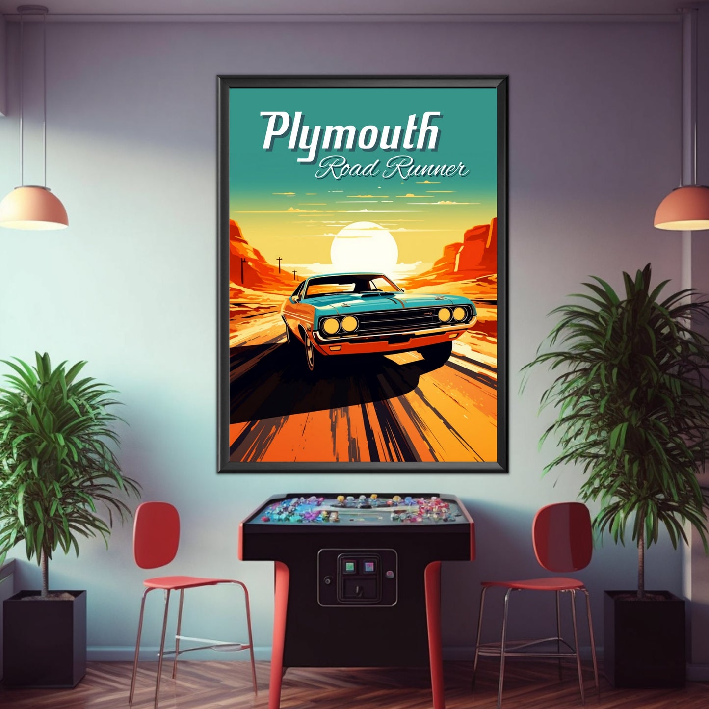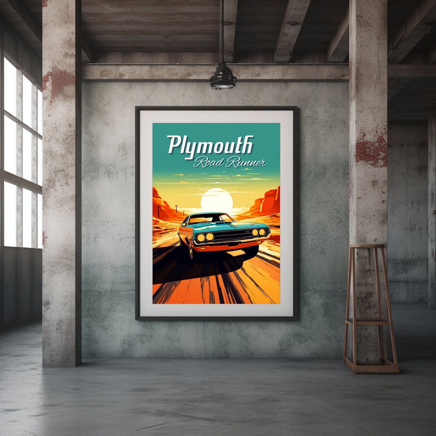 Affiche Plymouth Road Runner des années 1960 – Impression d'art mural classique représentant une voiture musclée