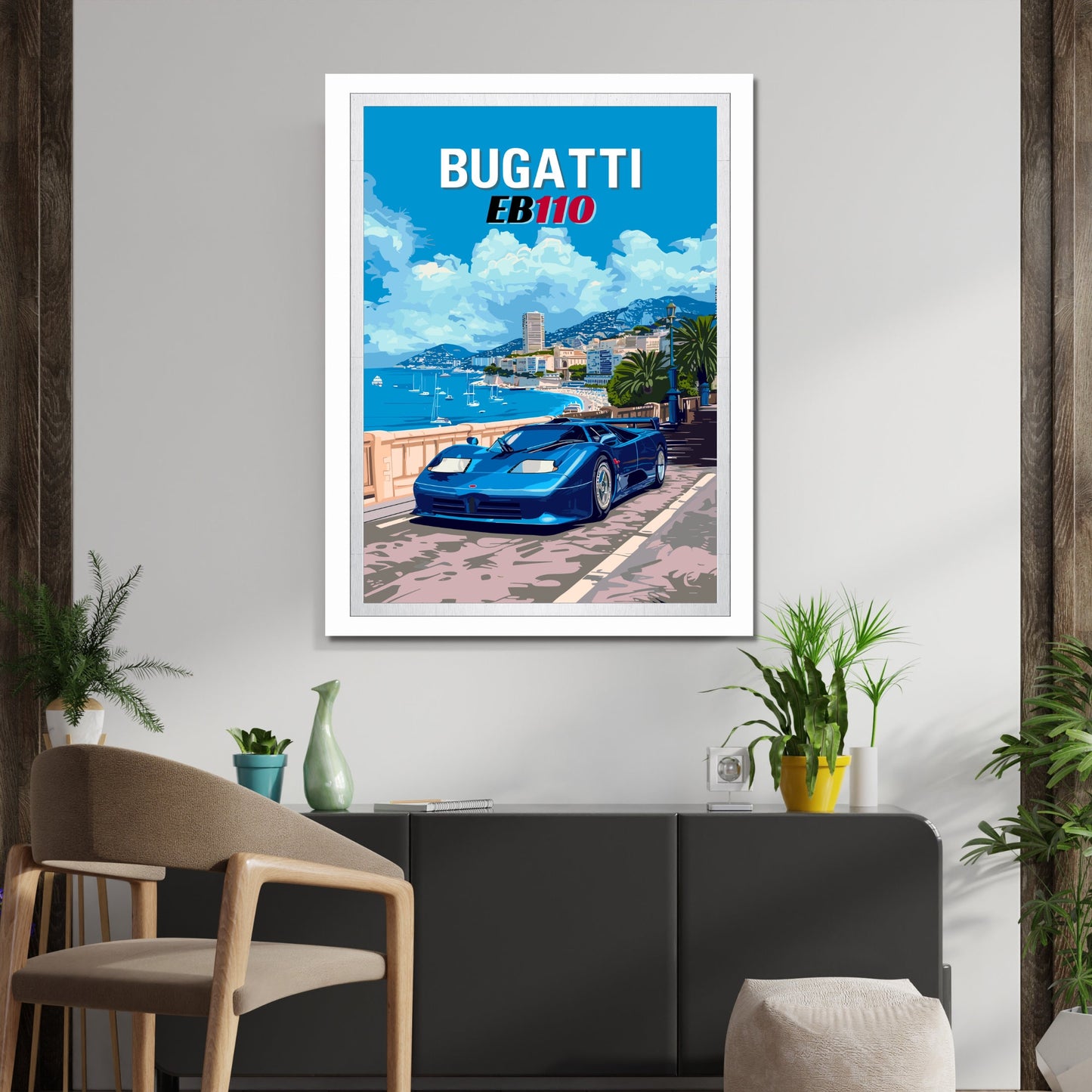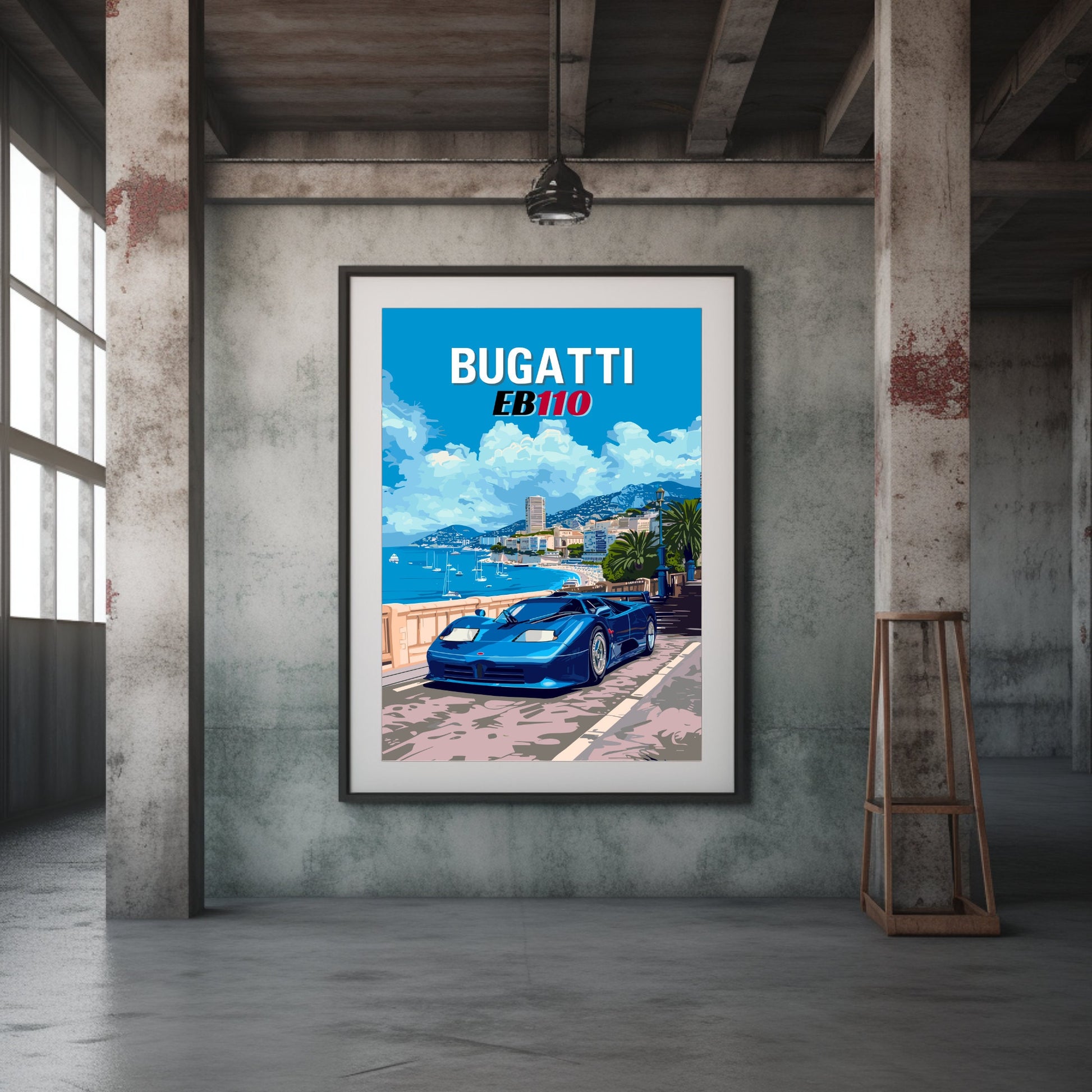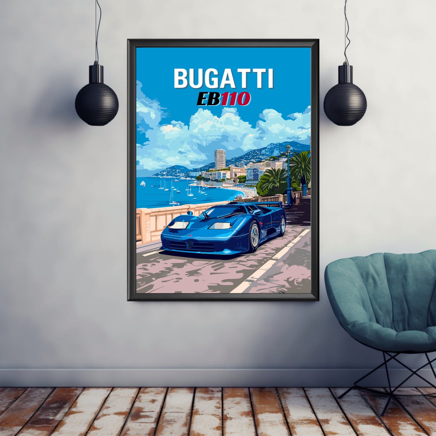 Impression Bugatti EB110 des années 1990 – Décoration murale vintage de supercar italienne