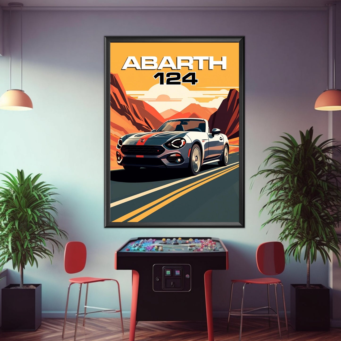 Affiche Abarth 124 – Décoration murale représentant une voiture de sport italienne haute performance