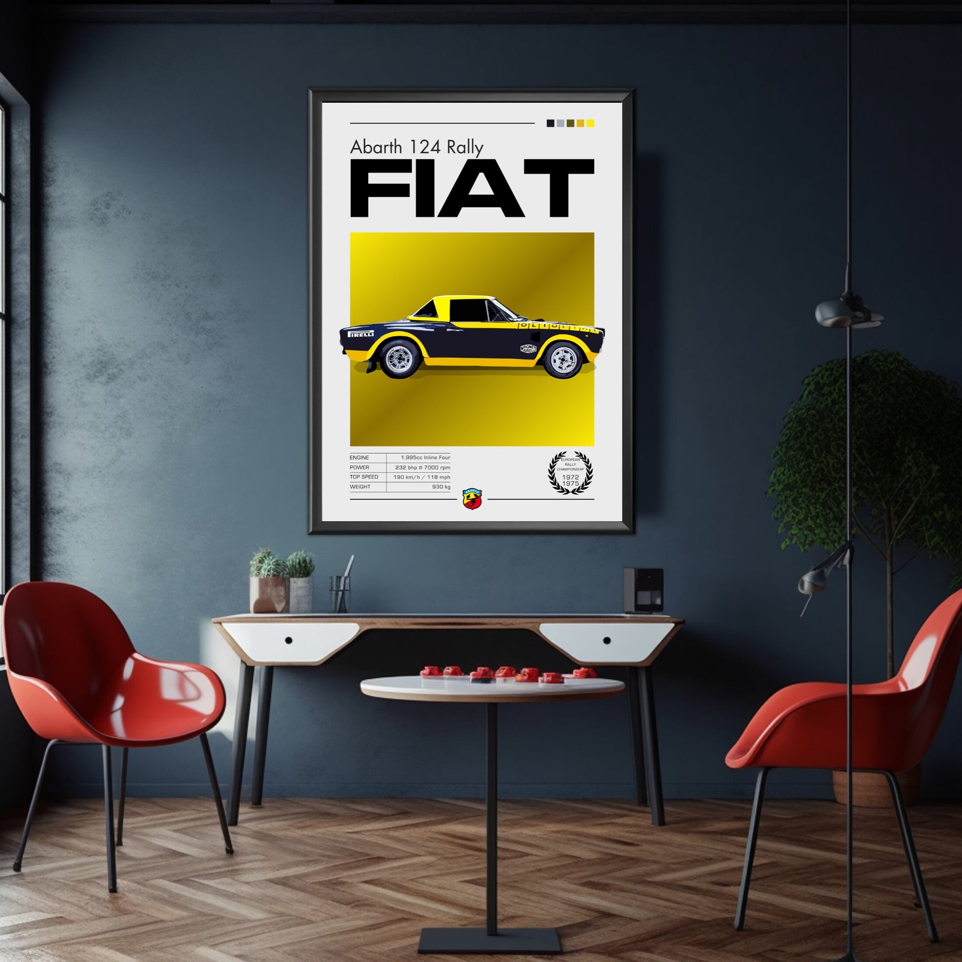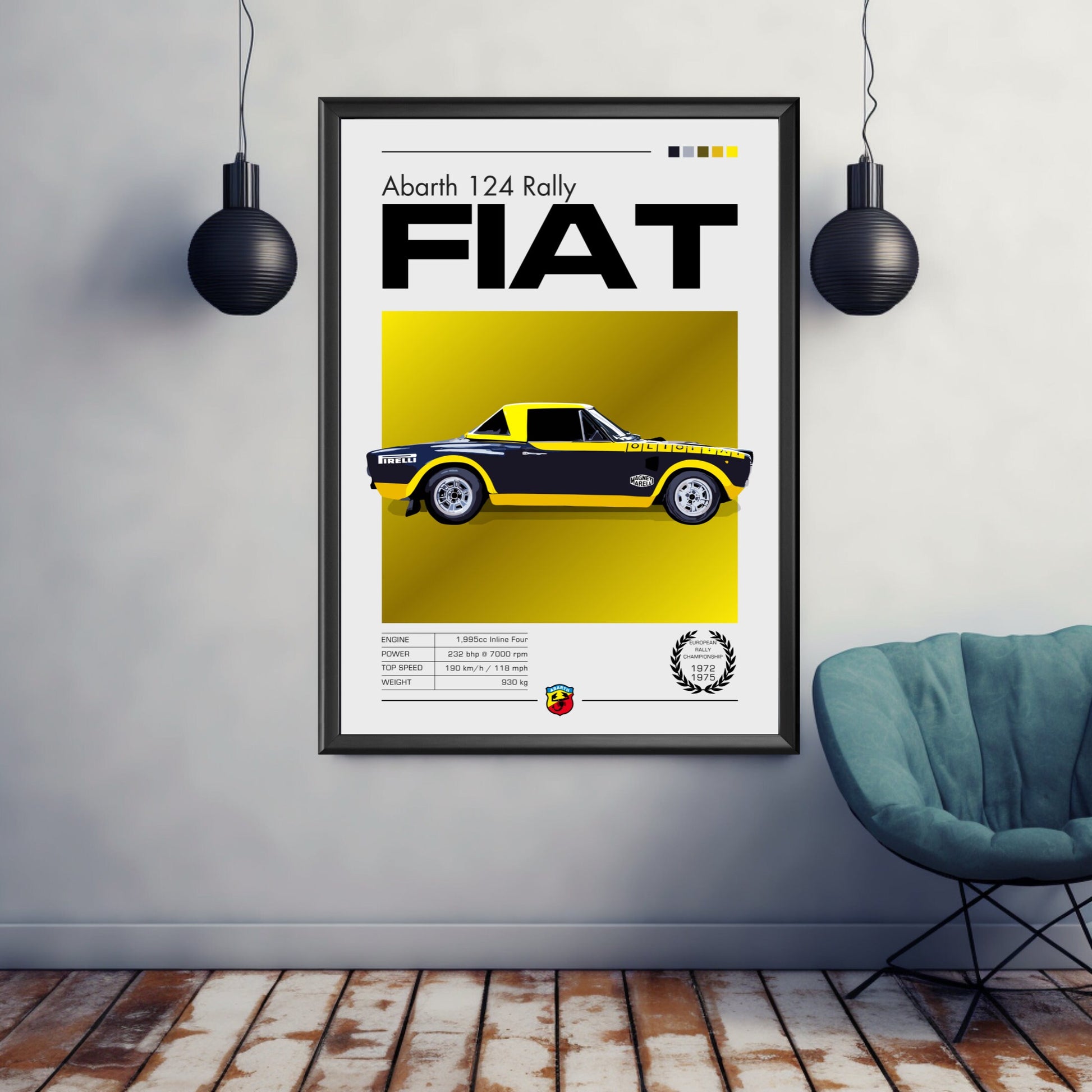 Décoration murale sport automobile . Idéale pour les fans de rallye, les passionnés d'Abarth et les collectionneurs de sport automobile, cette affiche haut de gamme capture la légendaire Abarth 124 dans toute sa splendeur. Reconnue pour son agilité, sa puissance et son style, l'Abarth 124 Rally est devenue une icône de l'histoire du sport automobile italien. Insufflez la passion, la vitesse et l'esprit du rallye classique chez vous, au bureau, dans votre garage ou dans un espace dédié au sport automobile grâce à cette décoration murale saisissante.