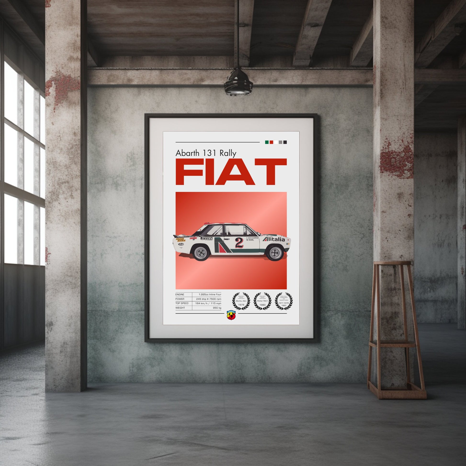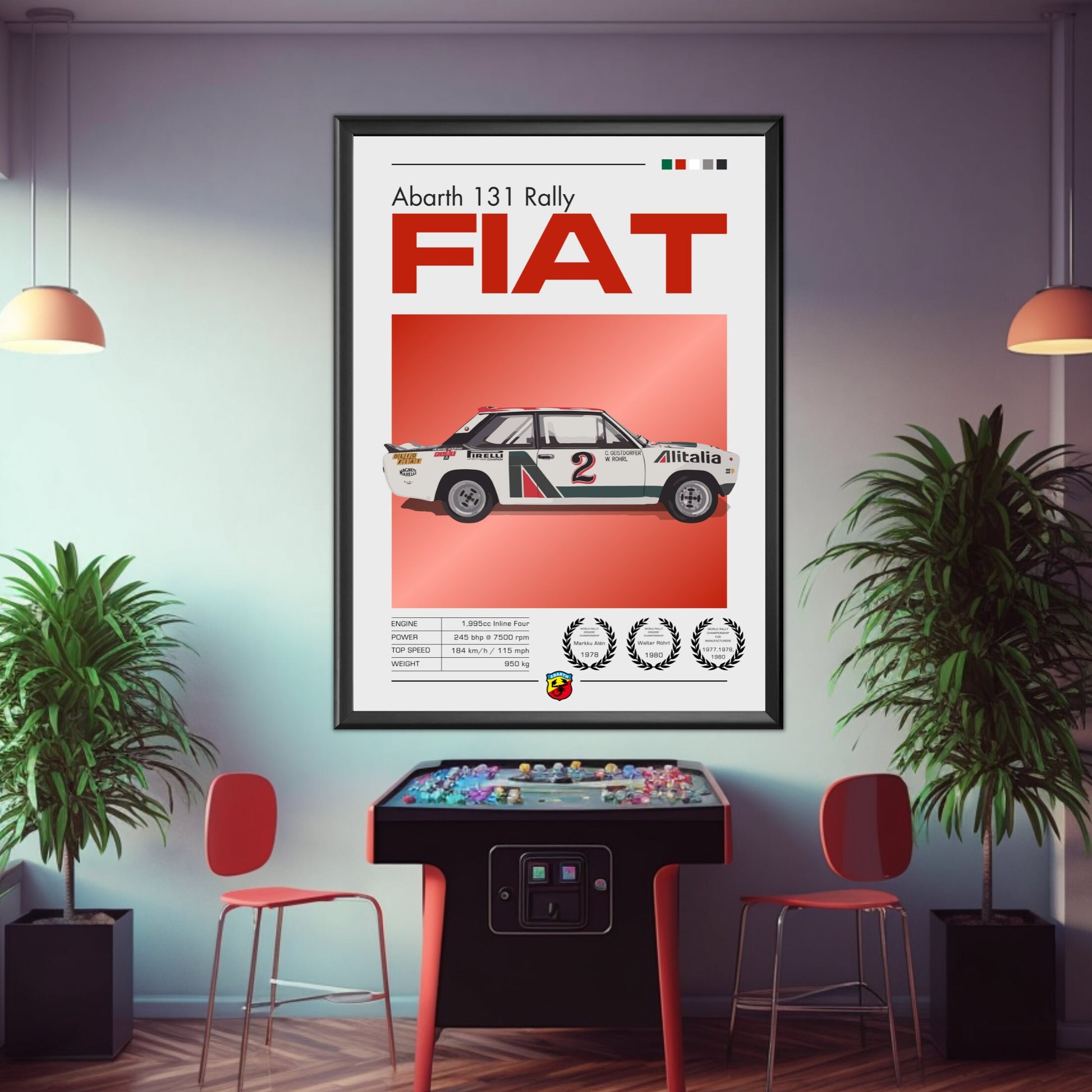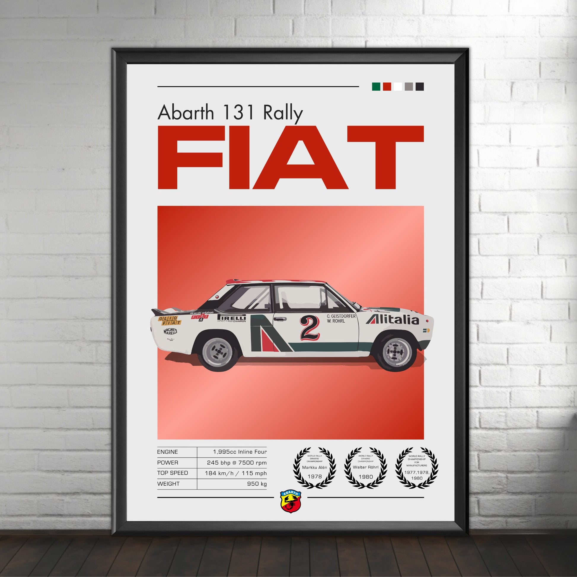 Affiche de rallye Abarth 131 – Décoration murale de voiture de rallye Fiat classique