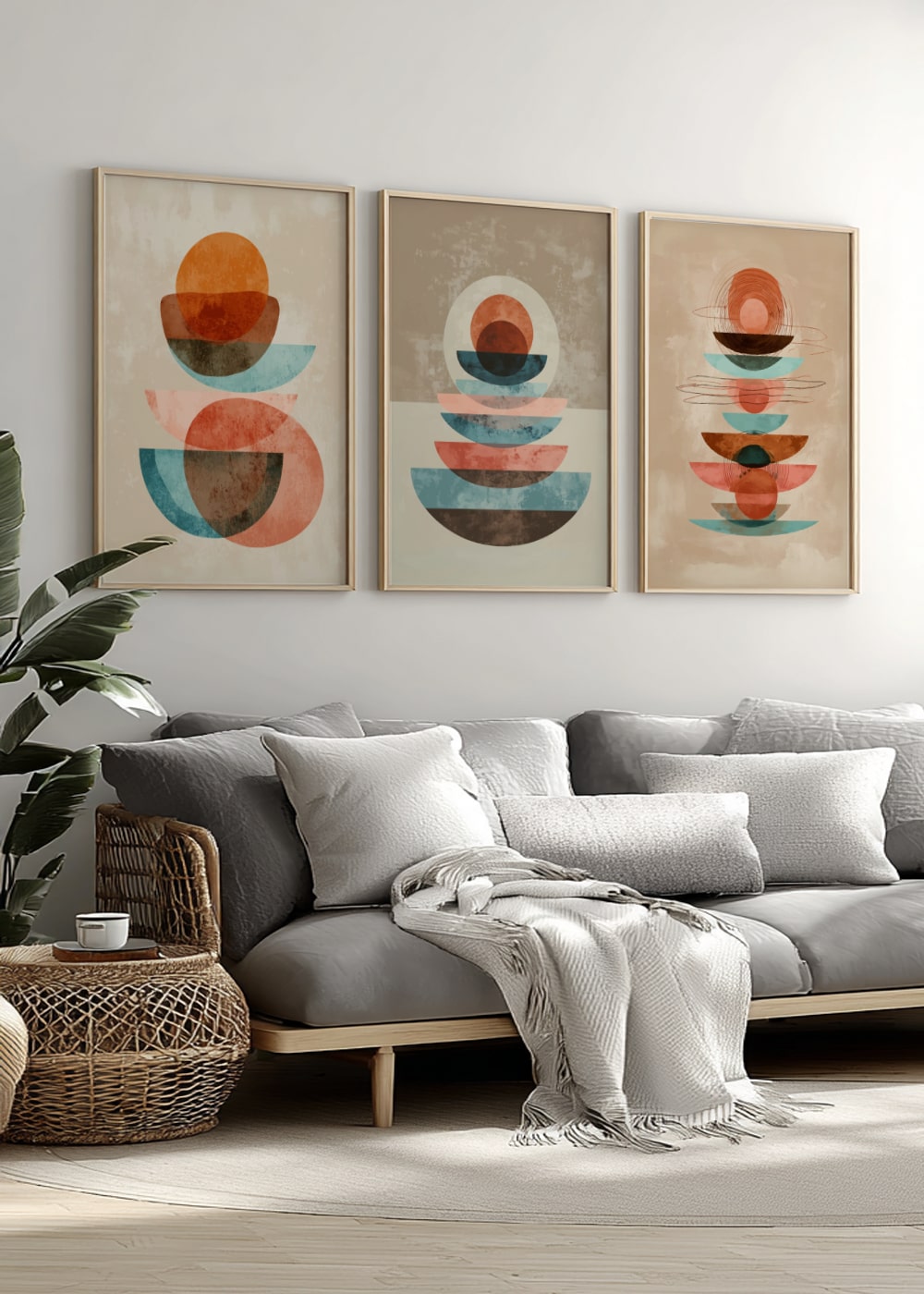 Sublimez votre intérieur avec l' ensemble de 3 affiches murales géométriques abstraites de style Mid-Century Modern . Cet élégant ensemble présente des formes géométriques audacieuses et minimalistes inspirées du design Mid-Century Modern , alliant esthétique abstraite et élégance intemporelle. Parfaits pour les amateurs d' art mural moderne , d'affiches géométriques et de décoration minimaliste , ces imprimés apportent sophistication et harmonie visuelle à n'importe quel espace.
