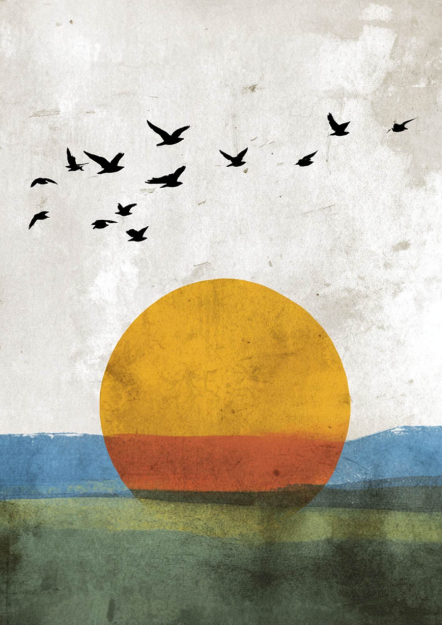 Décoration murale abstraite avec lever de soleil en bord de mer – Affiche moderne inspirée de la nature pour la décoration intérieure