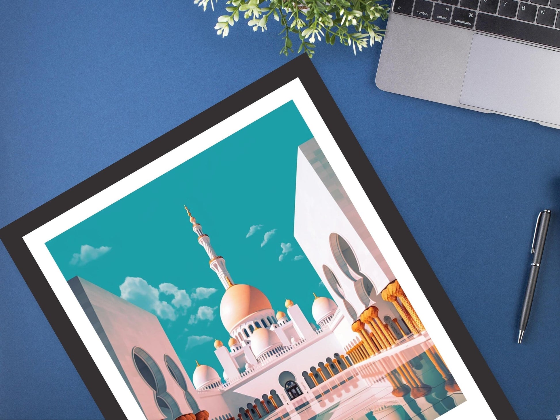 Cette œuvre mêle des blancs immaculés et des sables chauds à l'essence luxueuse d'Abou Dhabi, évoquant une ambiance de voyage vintage avec une touche de modernité. Imprimée sur un papier de qualité supérieure, elle offre un éclat durable et une finition lisse, ce qui en fait un cadeau idéal pour les aventuriers ou les collectionneurs d'art. Cette affiche d'Abou Dhabi apporte une touche de nostalgie arabe à tous vos murs.