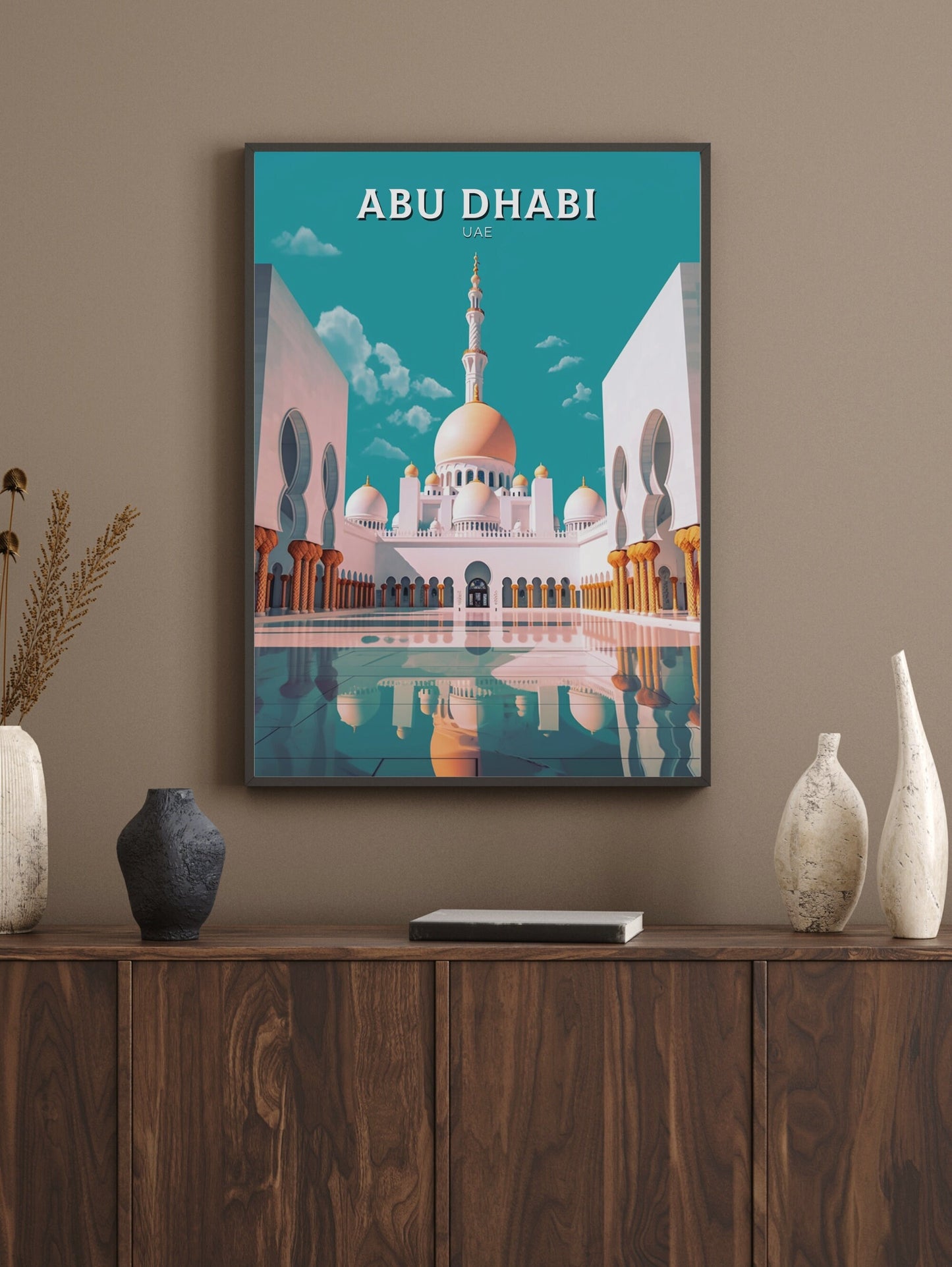 Notre affiche de voyage d'Abou Dabi – Art rétro des Émirats arabes unis – plonge votre intérieur dans le charme opulent d'Abou Dabi grâce à son design nostalgique. Idéale pour les passionnés de voyages et les amateurs d'art rétro, elle capture la Grande Mosquée Cheikh Zayed et les dunes du désert dans un style intemporel. Que vous ayez exploré ses merveilles ou rêvé de sa grandeur, cette affiche rétro d'Abou Dabi sera un ajout remarquable à votre décoration.