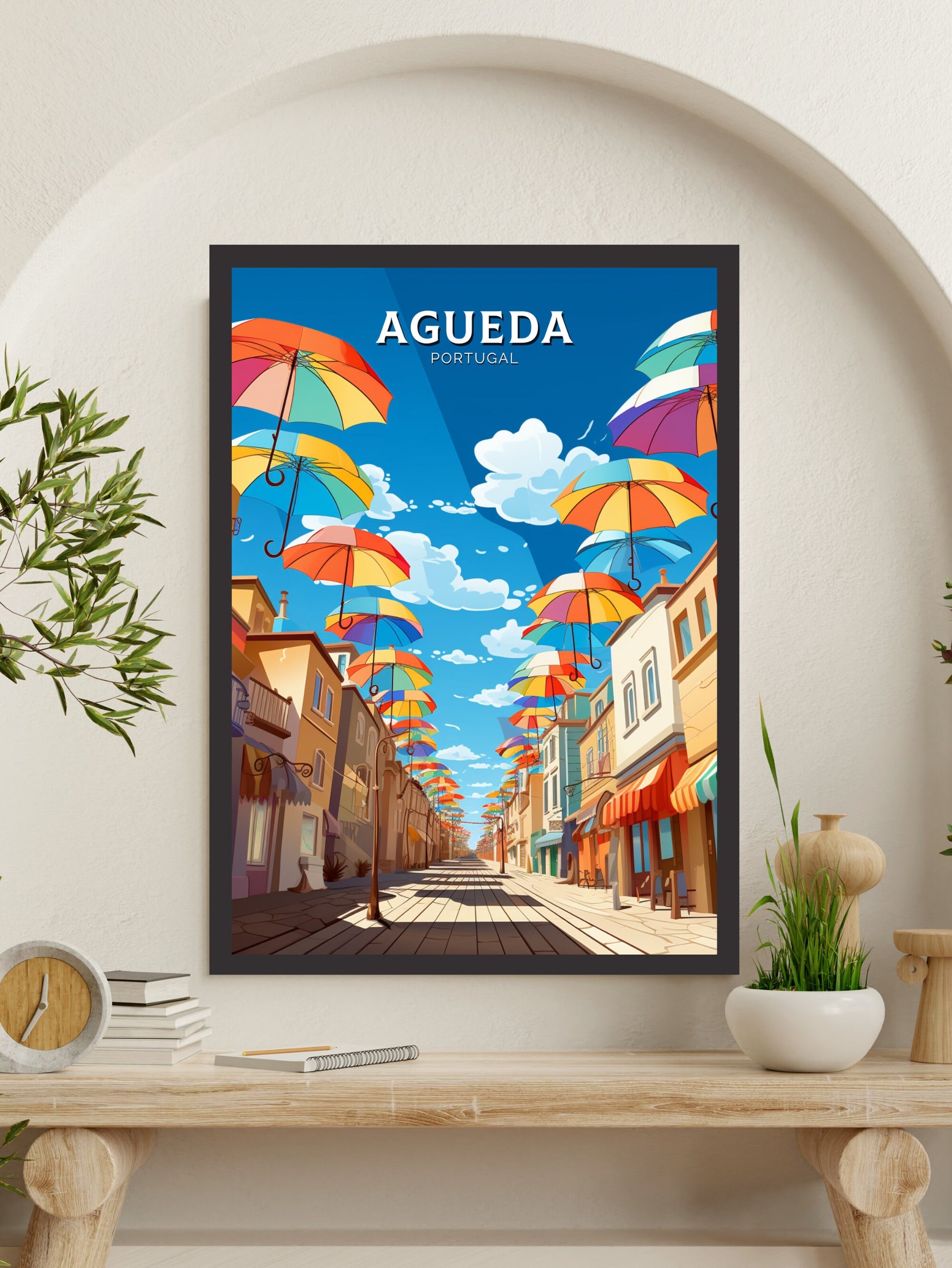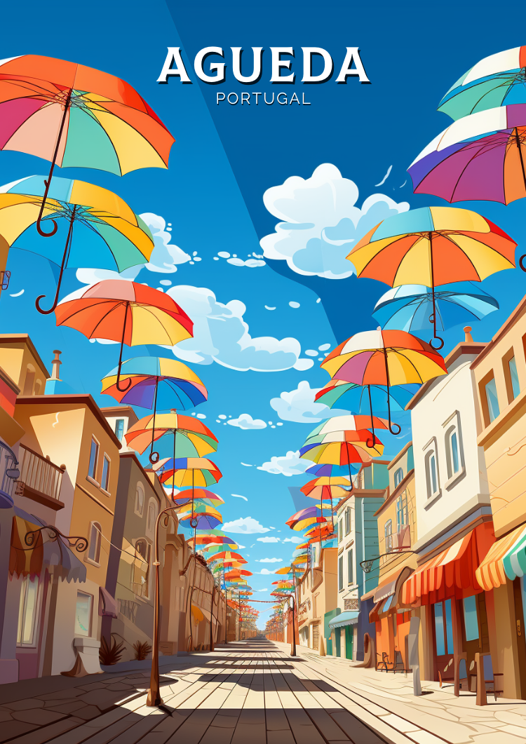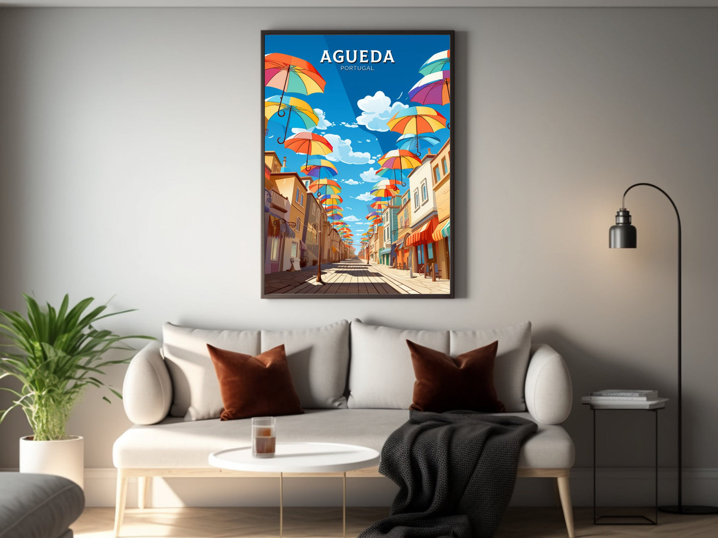 Apportez les rues colorées d'Agueda dans votre décor avec cette affiche de voyage saisissante.