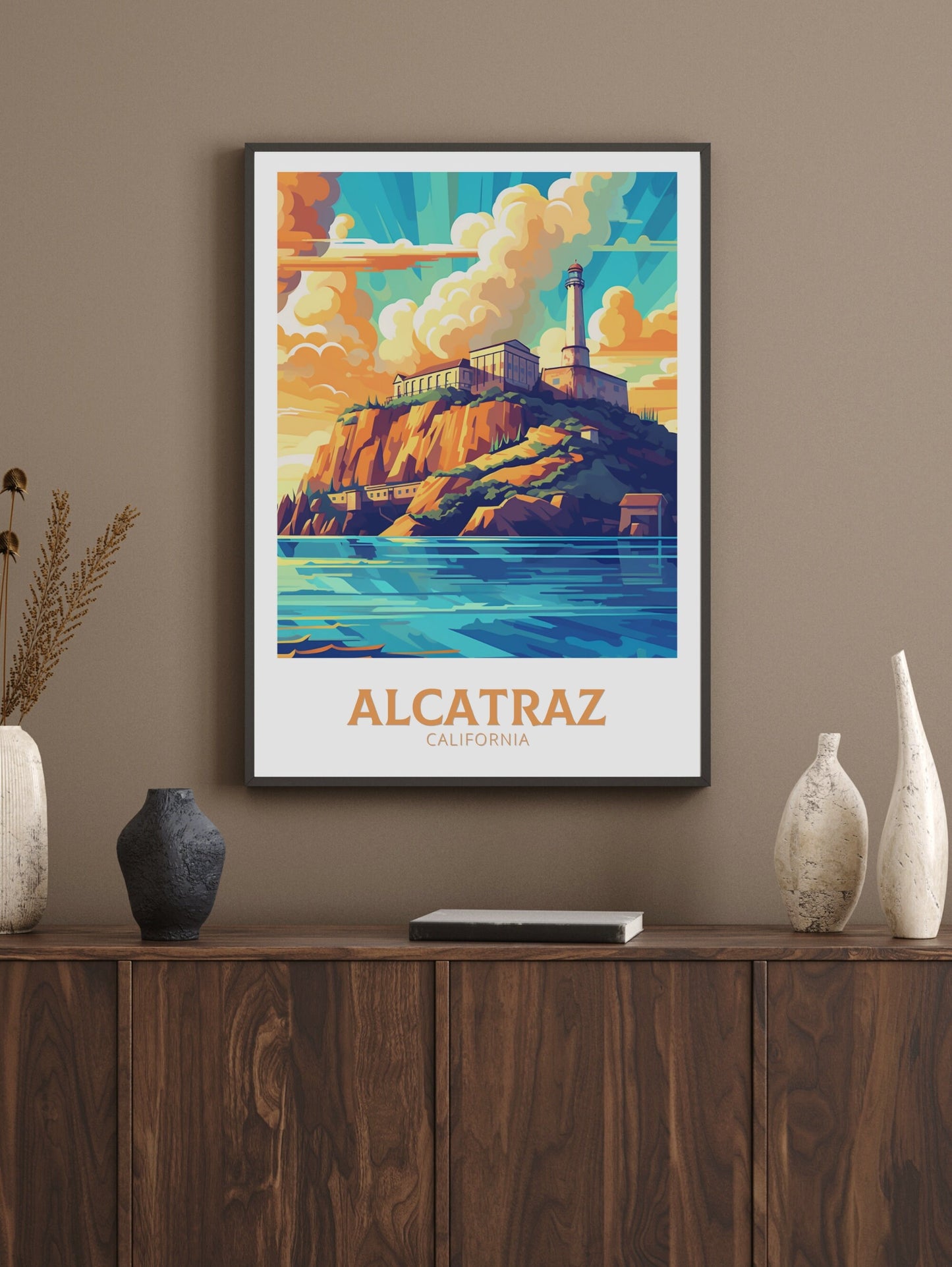 Apportez un peu d'histoire de San Francisco chez vous avec notre affiche de voyage Alcatraz . Cette œuvre californienne met en valeur la célèbre île d'Alcatraz, avec pour toile de fond les eaux scintillantes de la baie, et constitue un ajout attrayant à n'importe quel mur. Idéale pour les voyageurs, les passionnés d'histoire et les amoureux des monuments californiens, cette affiche apportera du caractère et de l'inspiration à votre décoration intérieure.