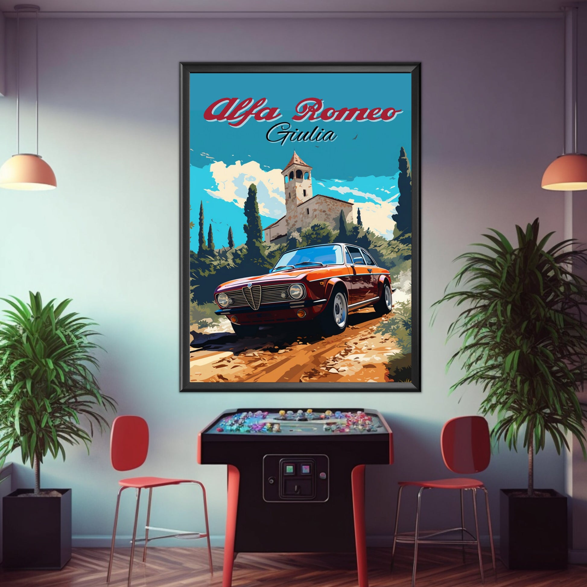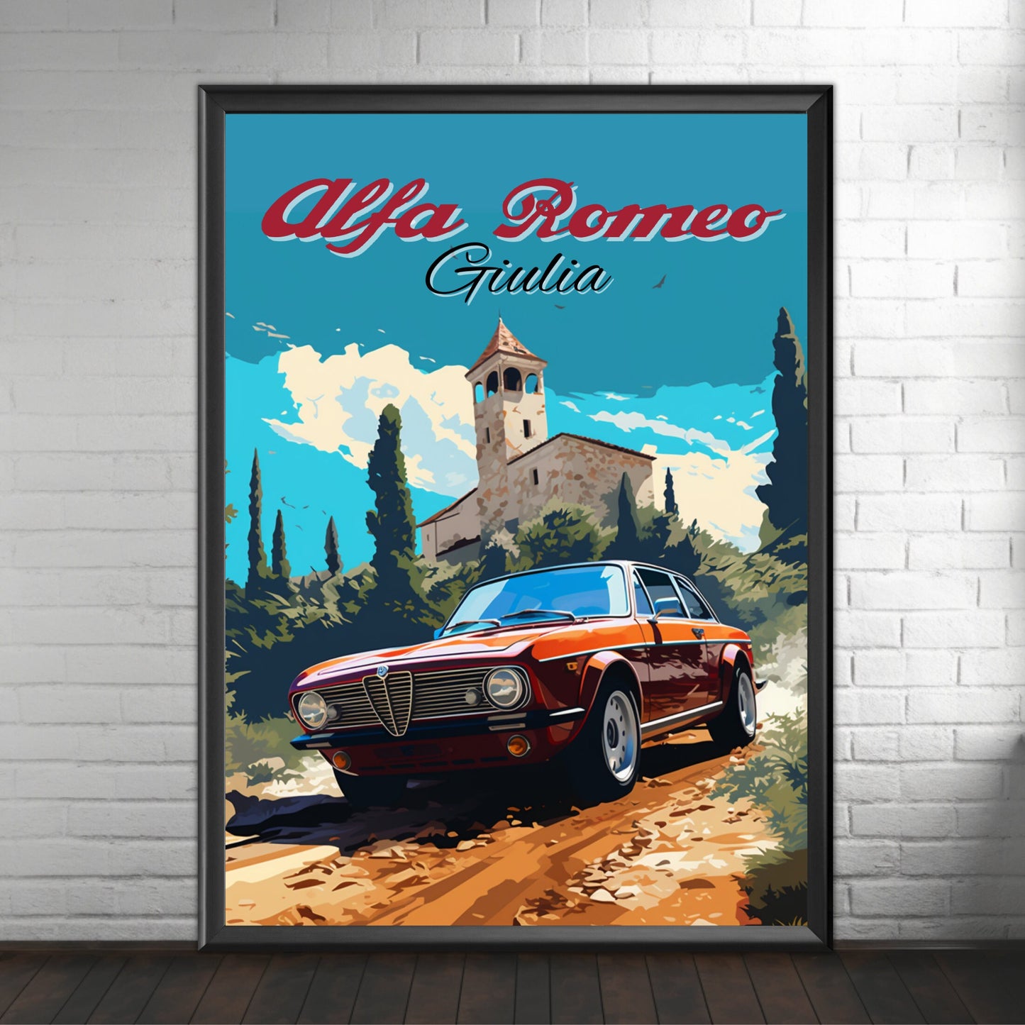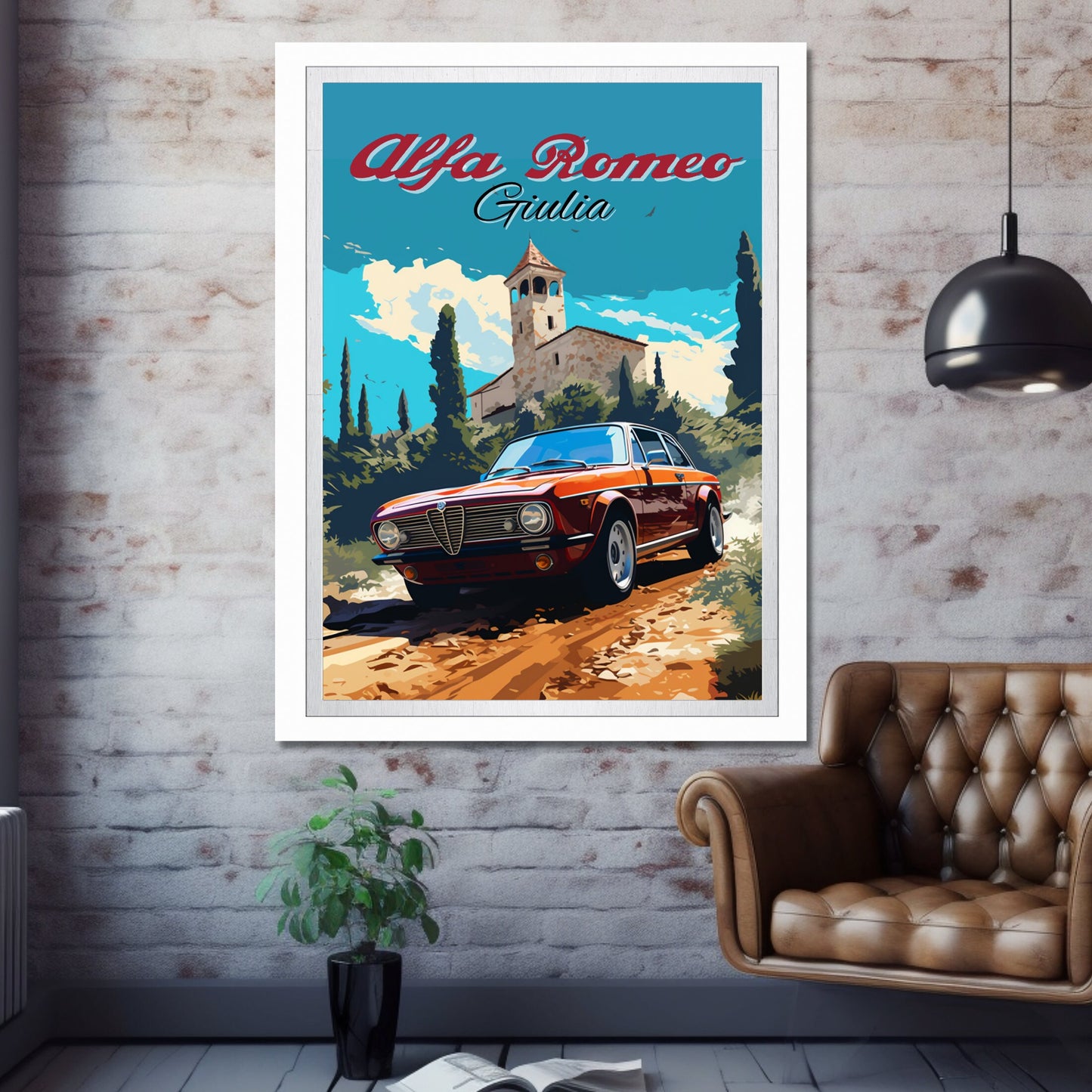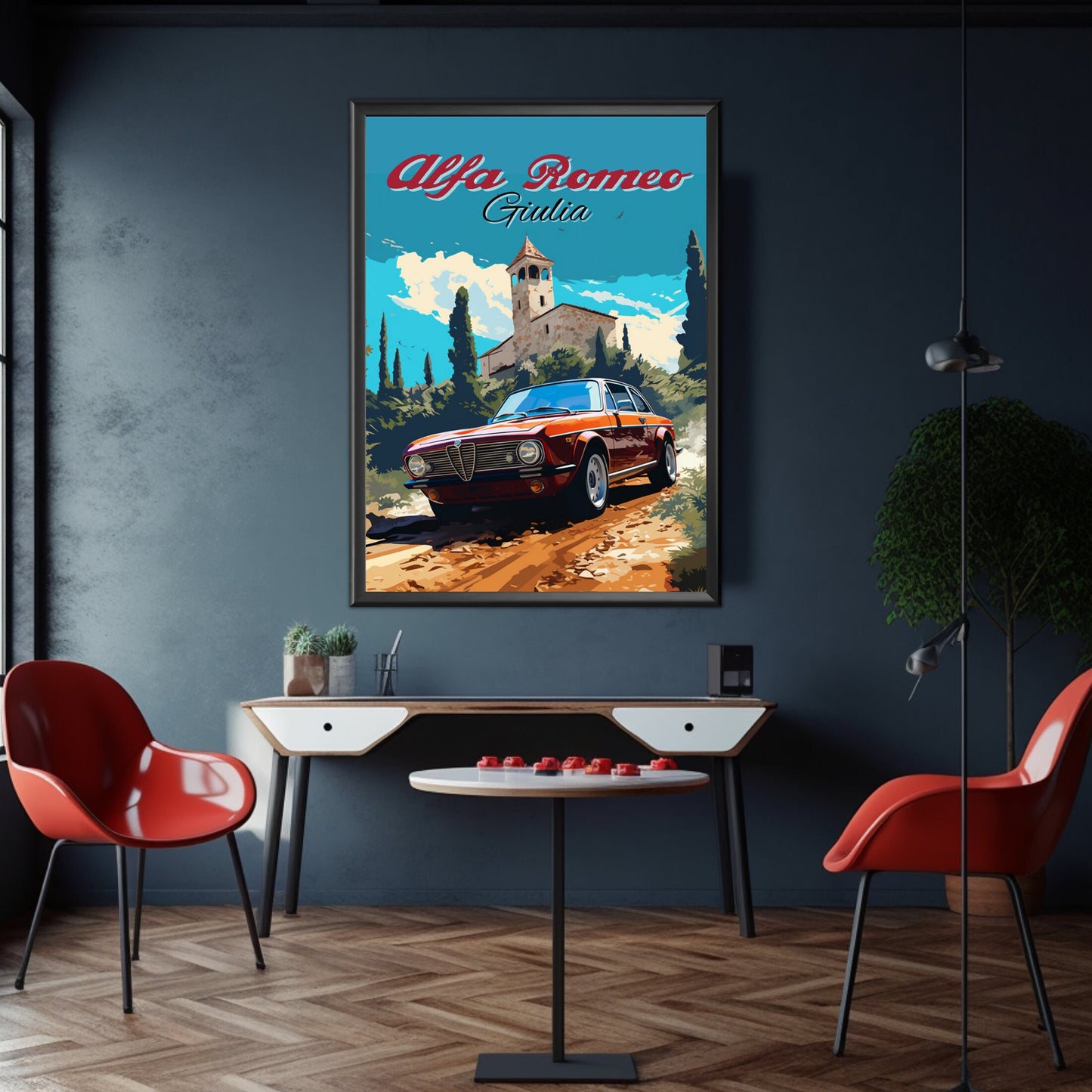 Affiche Alfa Romeo Giulia – Décoration murale moderne de voiture de sport italienne