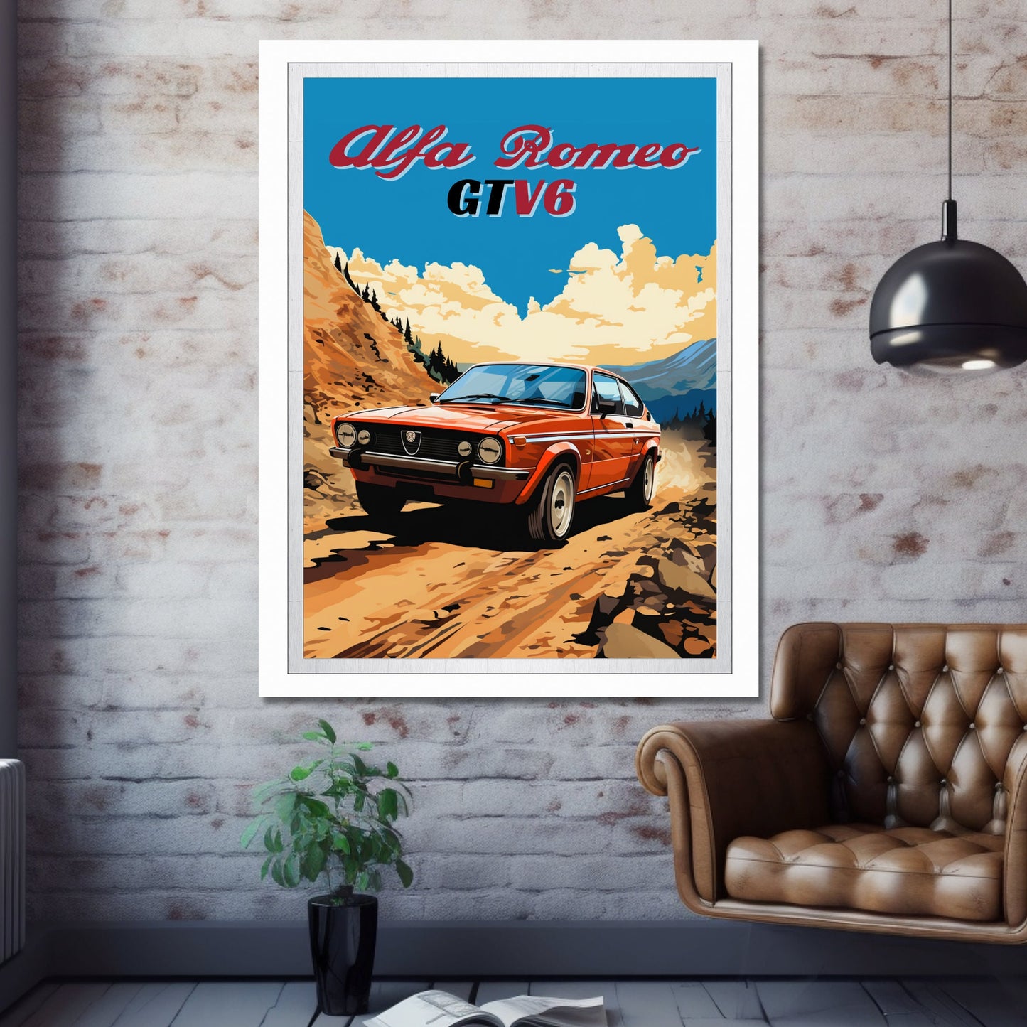 Affiche Alfa Romeo GTV6 – Décoration murale classique de voiture de sport italienne