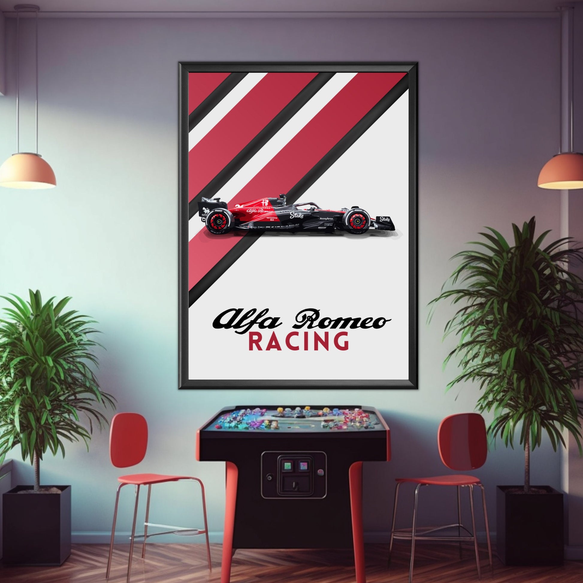 Affichez votre passion pour le sport automobile avec l' affiche Alfa Romeo Racing F1 – Décoration murale de l'écurie italienne de Formule 1. Idéale pour les fans de Formule 1, les passionnés de course et les supporters de l'emblématique écurie Alfa Romeo F1, cette affiche de haute qualité capture la vitesse, la précision et l'héritage de la Formule 1 italienne. Ajoutez une touche de sport automobile à votre maison, votre bureau ou votre collection avec cette superbe décoration murale F1.