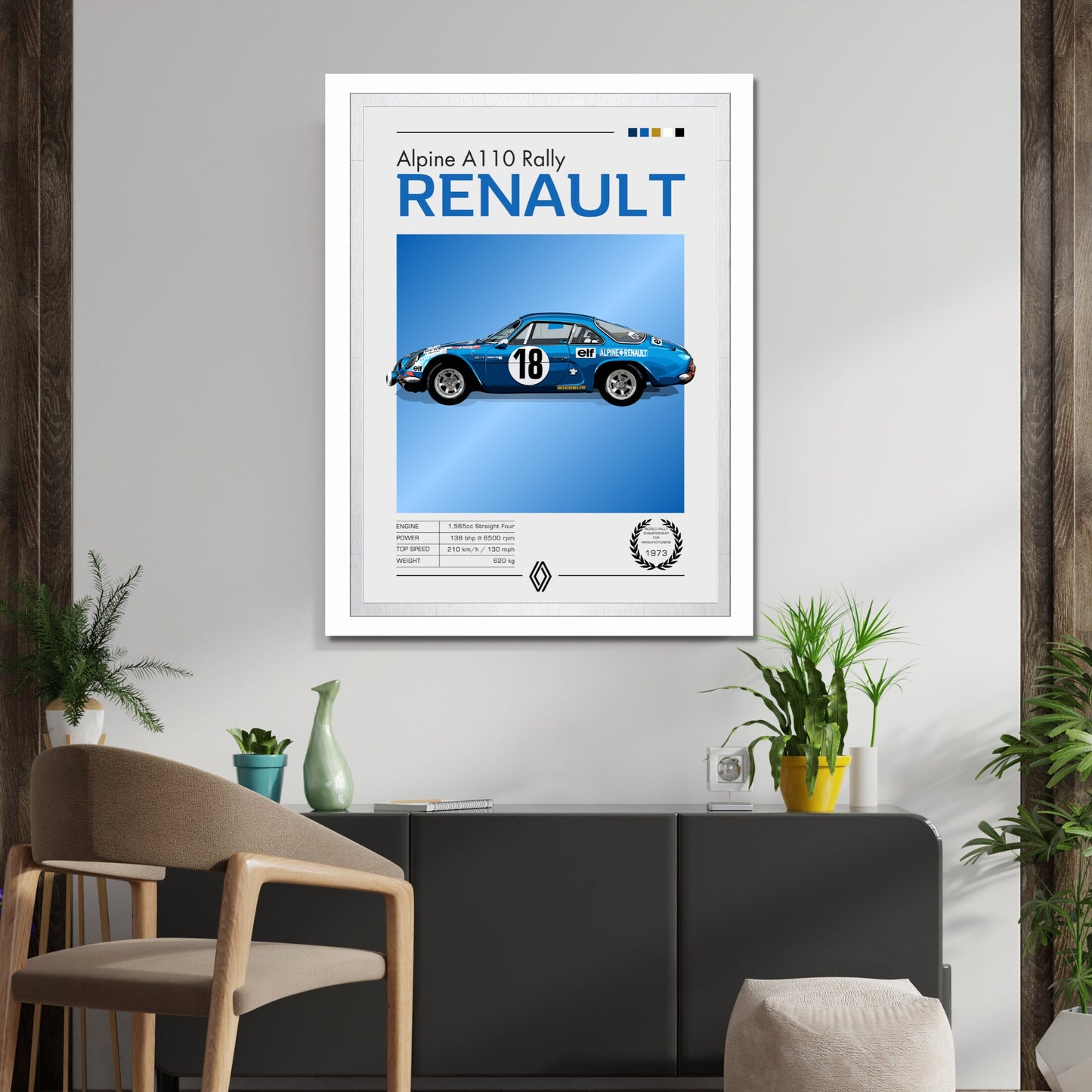 Affiche Alpine A110 – Décoration murale de voiture de rallye française classique