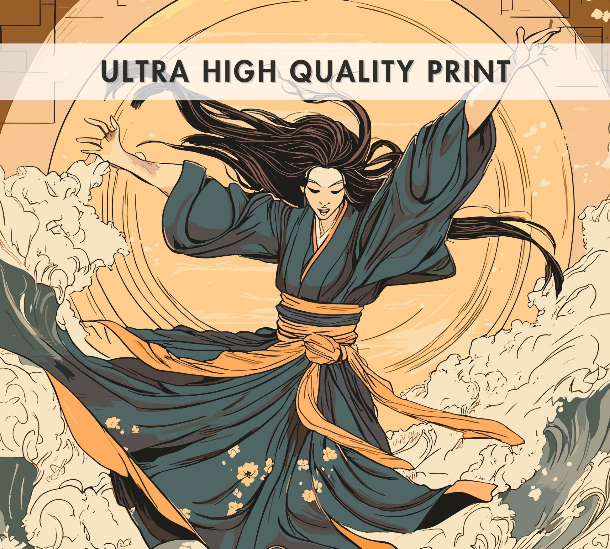 Réalisée sur un papier robuste et de haute qualité, cette œuvre d'art mythologique japonaise respire la vivacité de son esprit, parfaite pour les passionnés de mythologie ou ceux qui recherchent une touche d'éclat sur leurs murs. C'est le charme ensoleillé d'Uzume.