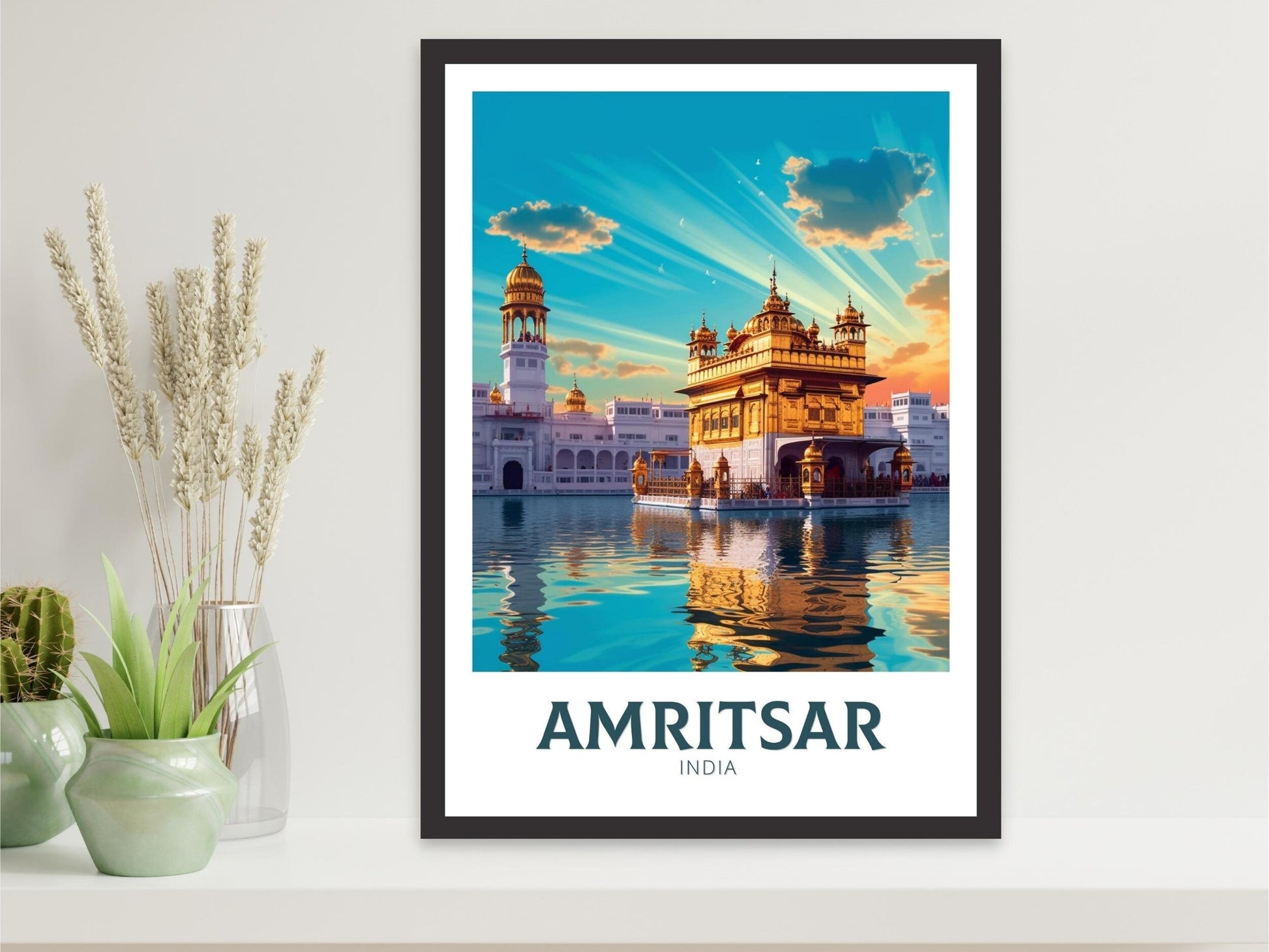 Notre affiche du Temple d'Amritsar, imprimée sur un motif époustouflant, plonge votre intérieur dans le rayonnement spirituel d'Amritsar, en Inde. Idéale pour les passionnés de voyages et d'art, elle capture avec force détails la beauté chatoyante du Temple d'Or au milieu des eaux sereines. Que vous ayez visité son sanctuaire ou rêvé de sa paix, cette affiche du Temple d'Amritsar sera un ajout saisissant à votre décoration.