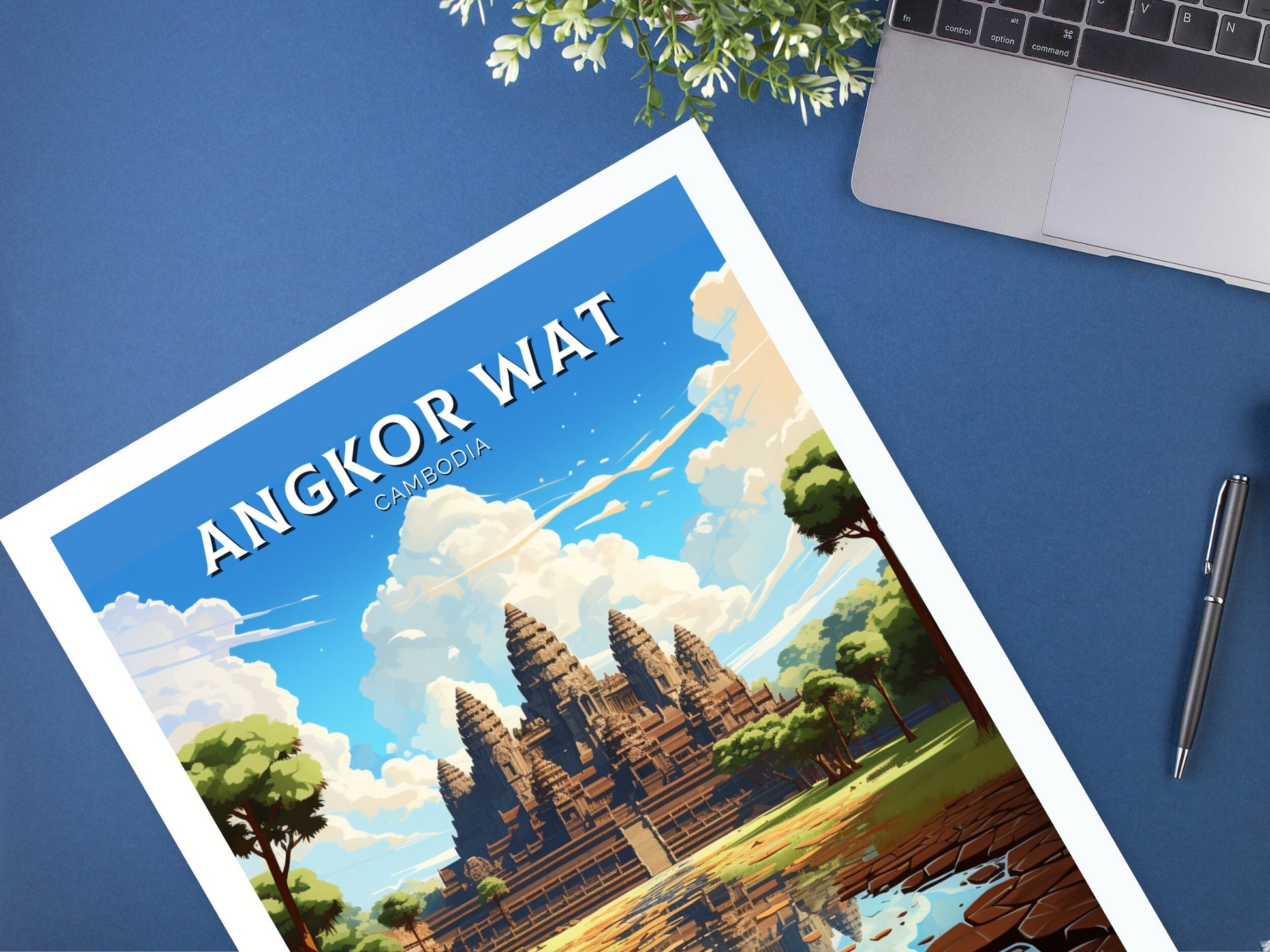 Cette œuvre mêle des verts riches et des ors chaleureux à l'essence majestueuse d'Angkor Vat, évoquant le charme d'un voyage vintage avec une touche de modernité. Imprimée sur un papier de qualité supérieure, elle offre un éclat durable et une finition lisse, ce qui en fait un cadeau idéal pour les aventuriers ou les collectionneurs d'art. Cette affiche d'Angkor Vat apporte une touche historique à n'importe quel mur.