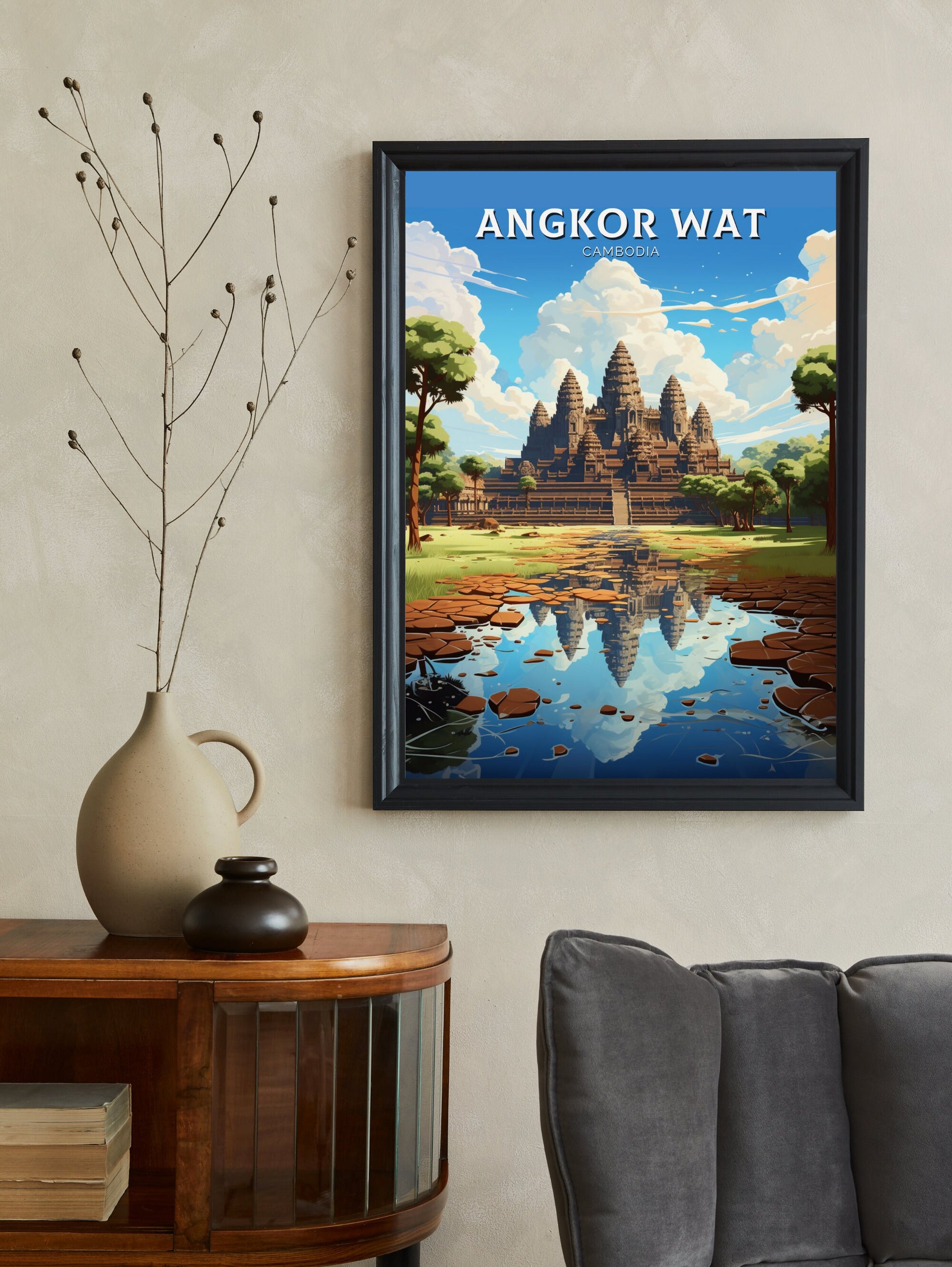 Affiche de voyage d'Angkor Wat - Art rétro du Cambodge