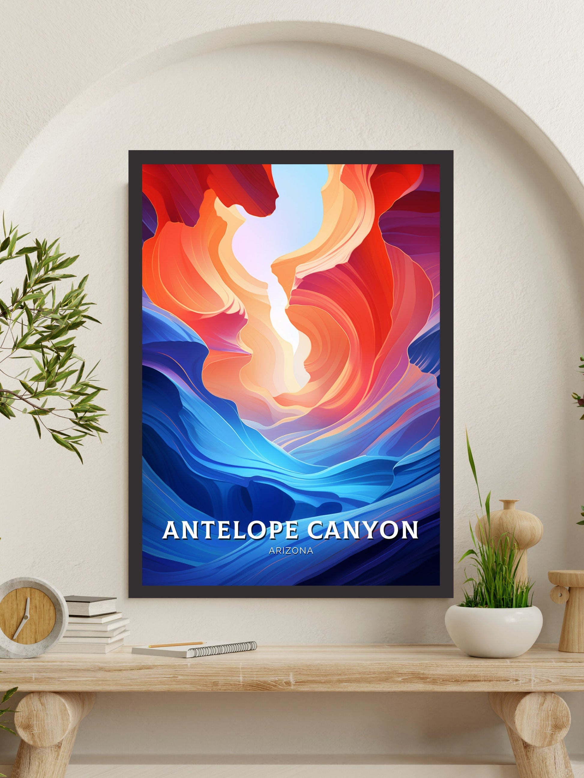 Disponible en téléchargement numérique et en tirage physique premium , cette affiche de voyage Antelope Canyon est disponible dans une gamme complète de formats, des formats standard de la série A aux formats audacieux de 76 x 102 cm. Imprimée sur un papier de haute qualité aux couleurs vives et aux détails époustouflants, elle est idéale pour les salons, les bureaux, les studios, ou comme cadeau attentionné pour tous les amoureux de l'Arizona et de ses paysages à couper le souffle.