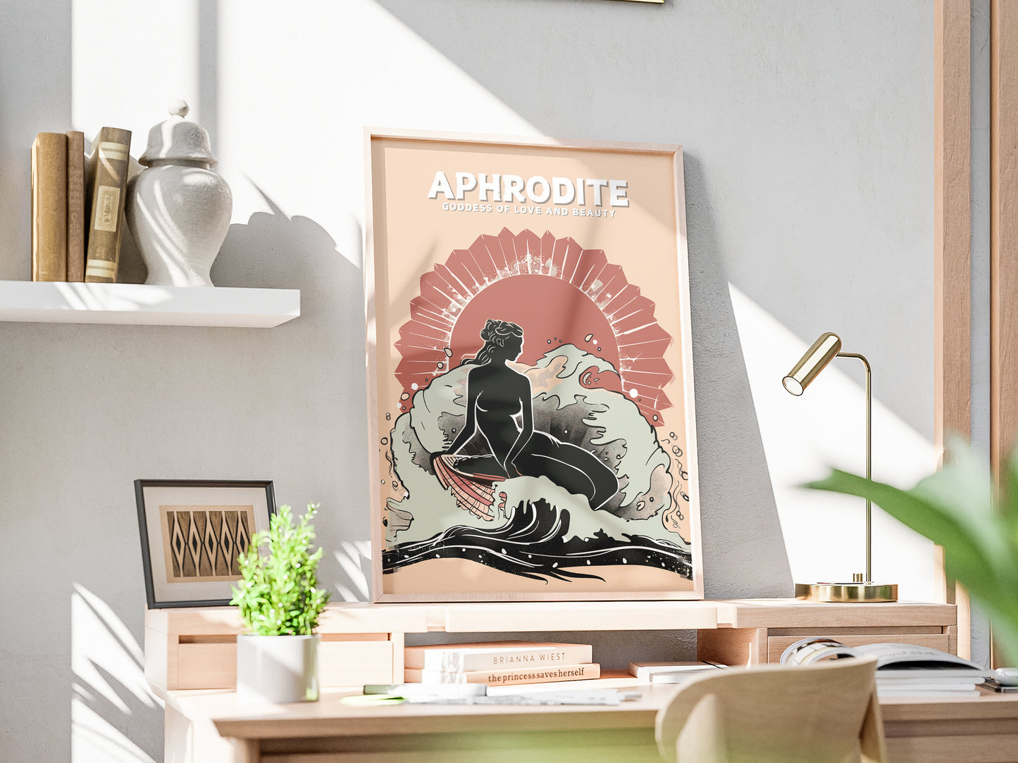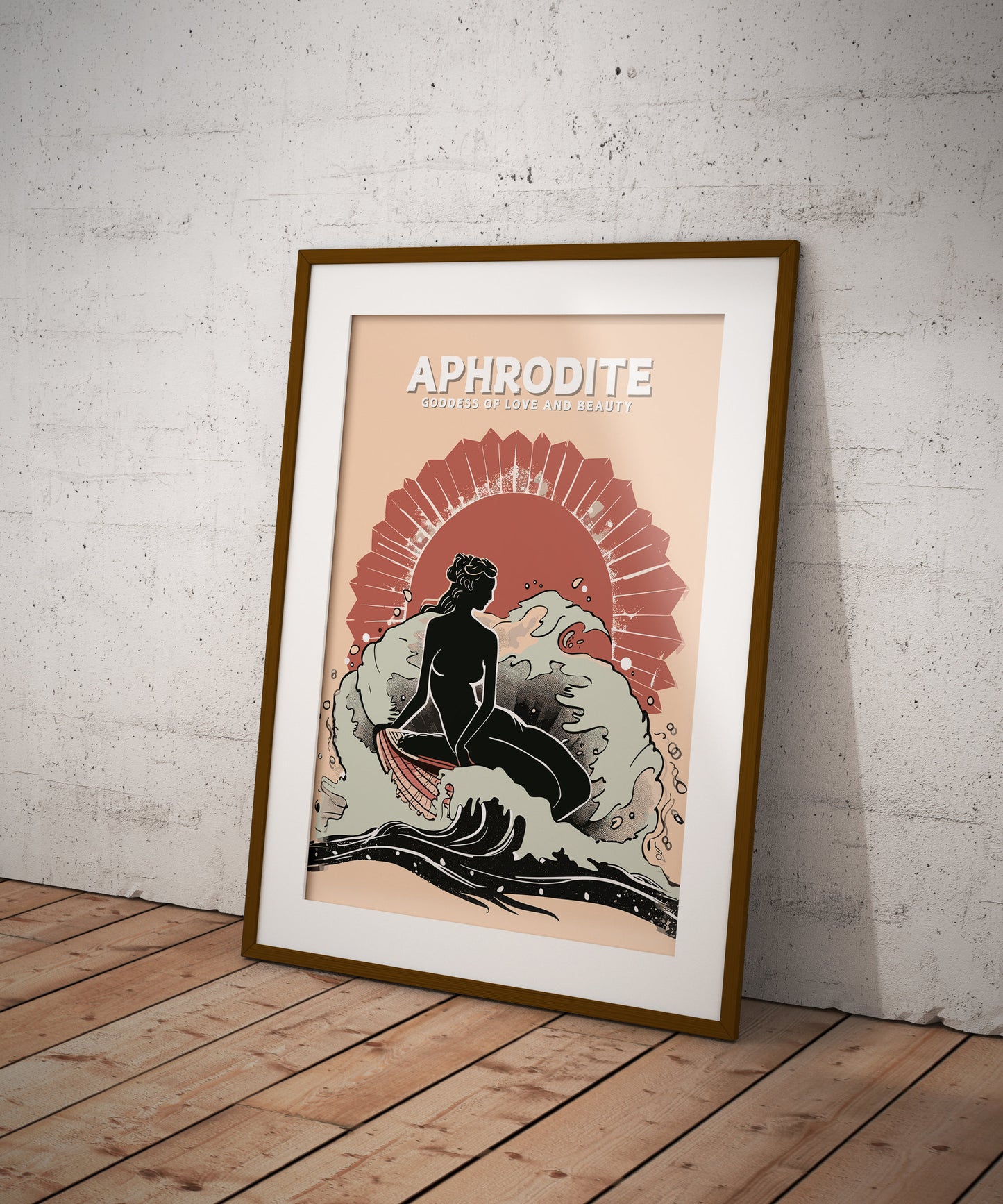 Notre affiche de la déesse Aphrodite, œuvre d'art mythologique grecque, enchantera votre intérieur par son design divin. Parfaite pour les amoureux de mythologie et les romantiques, elle représente Aphrodite, déesse grecque de l'amour et de la beauté, rayonnant de grâce au milieu des vagues éthérées. Que vous admiriez son mythe ou que vous aimiez l'art intemporel, cette affiche mythique d'Aphrodite sera un ajout magnifique à votre décoration.