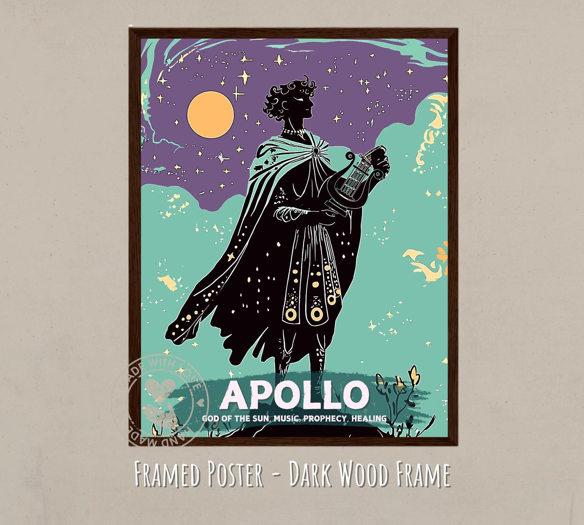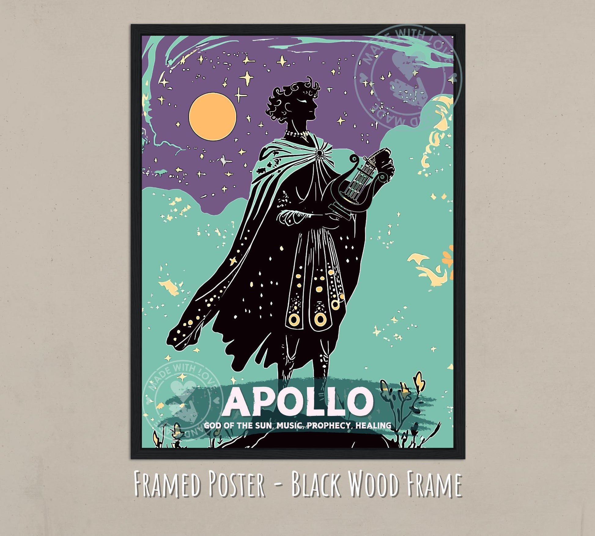 Parfait comme cadeau attentionné ou objet de collection personnel, cette affiche du dieu Apollon – œuvre d'art de la mythologie romaine incarne l'élégance et la grandeur de la mythologie classique, ajoutant inspiration et sophistication à n'importe quel décor.