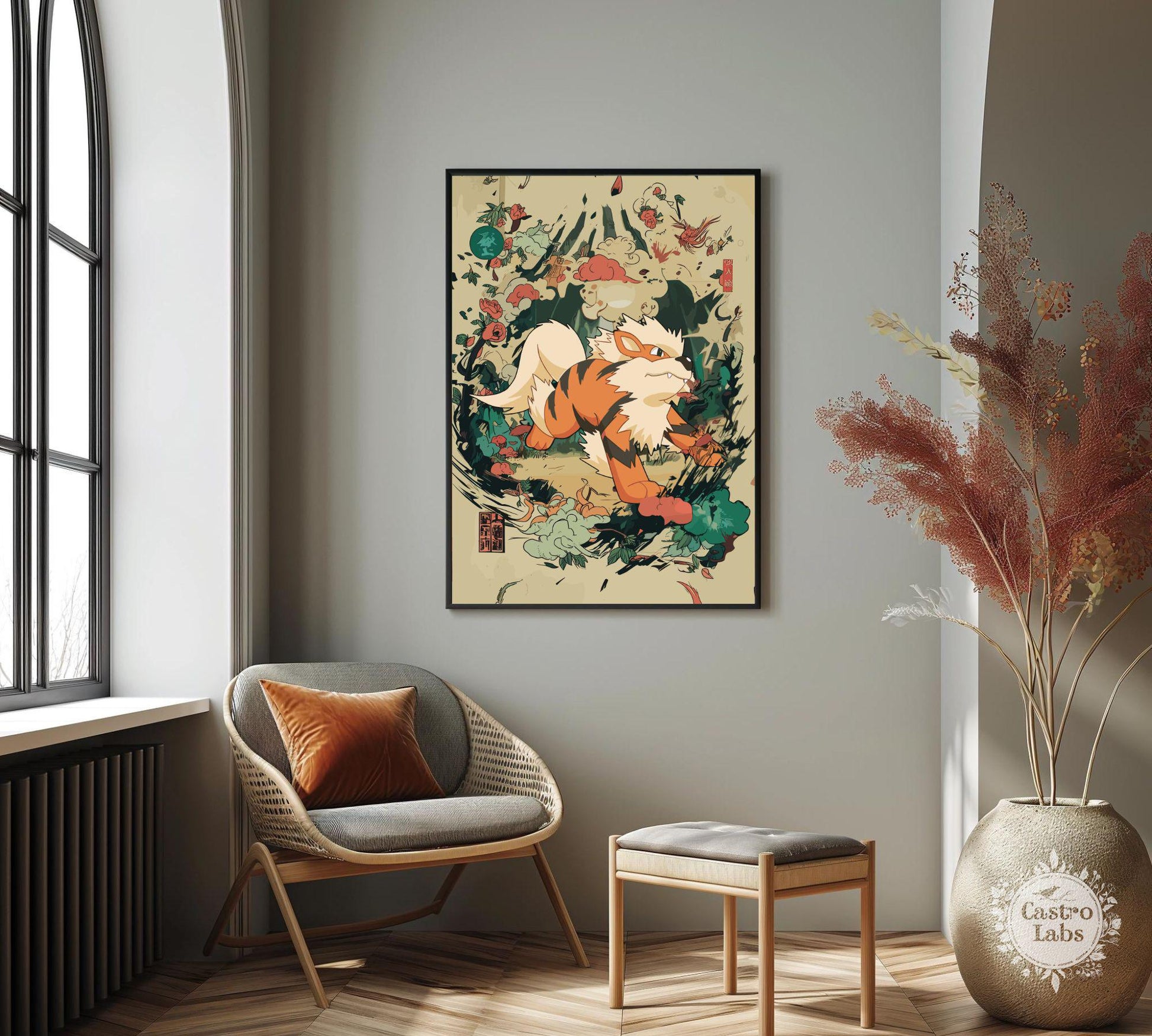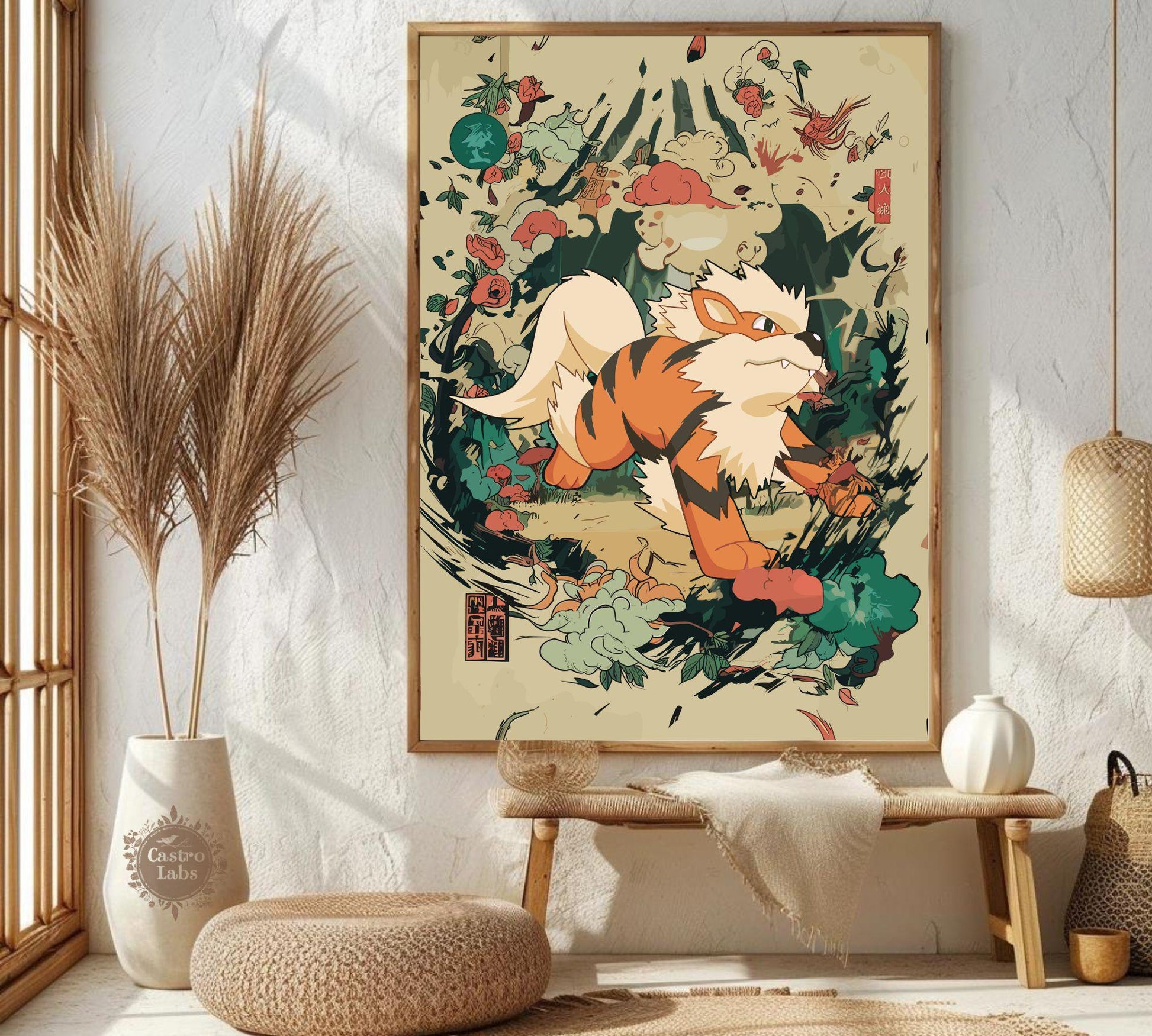 Cette affiche Arcanine est parfaite pour les passionnés de Pokémon et les amateurs d'art, offrant un mélange unique de culture animée et d'art classique. Que vous décoriez un espace de jeu ou que vous cherchiez simplement à ajouter une touche Pokémon épique à vos murs, cette œuvre Arcanine saura inspirer et impressionner.
