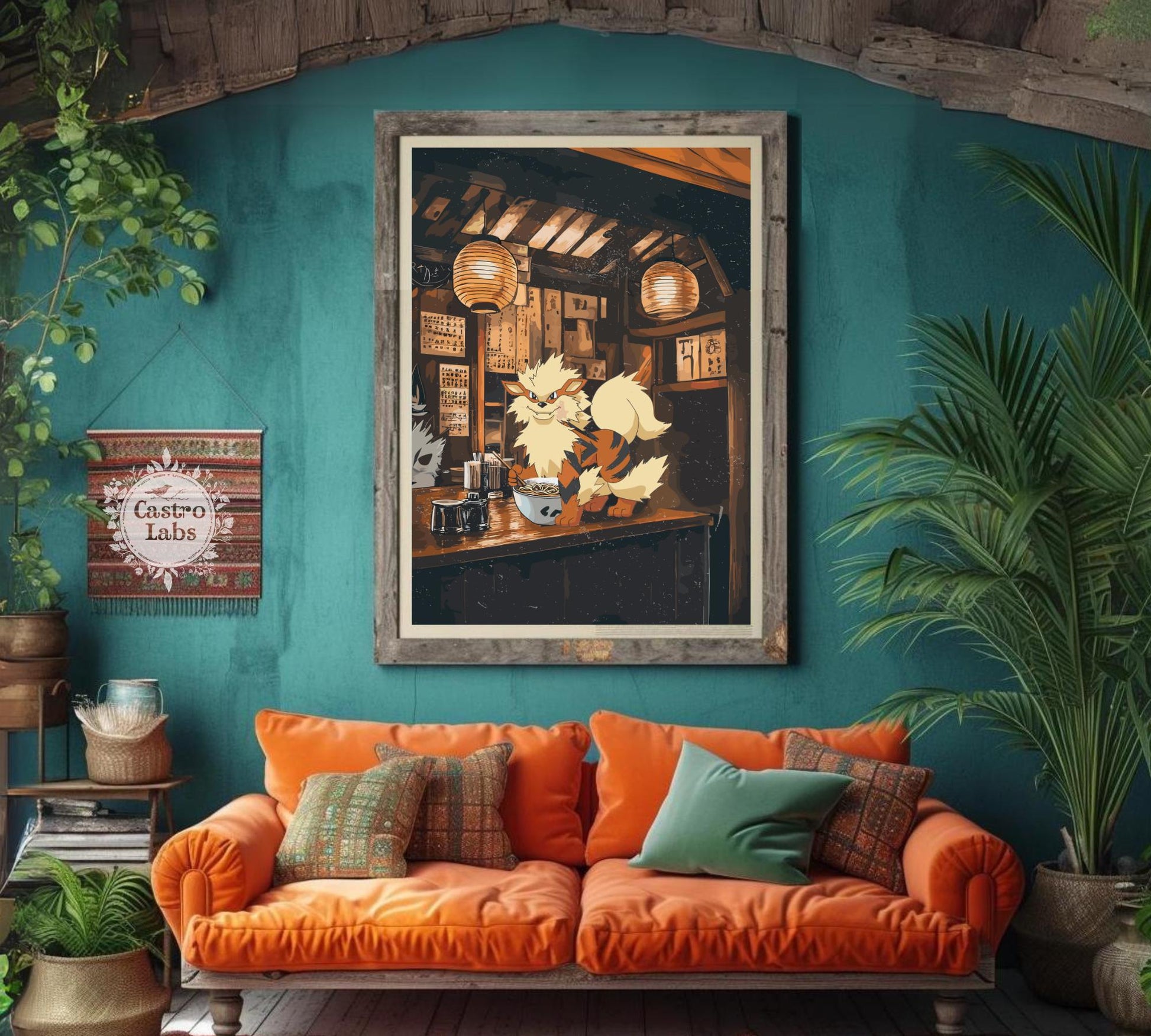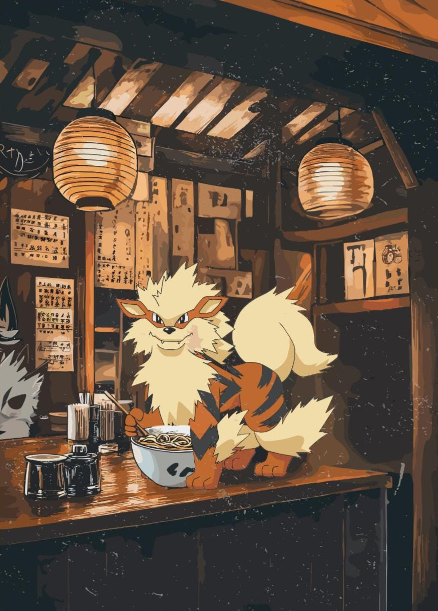 Affiche Ramen Arcanine - Décoration murale Pokémon japonaise | Décoration Anime et Nouilles