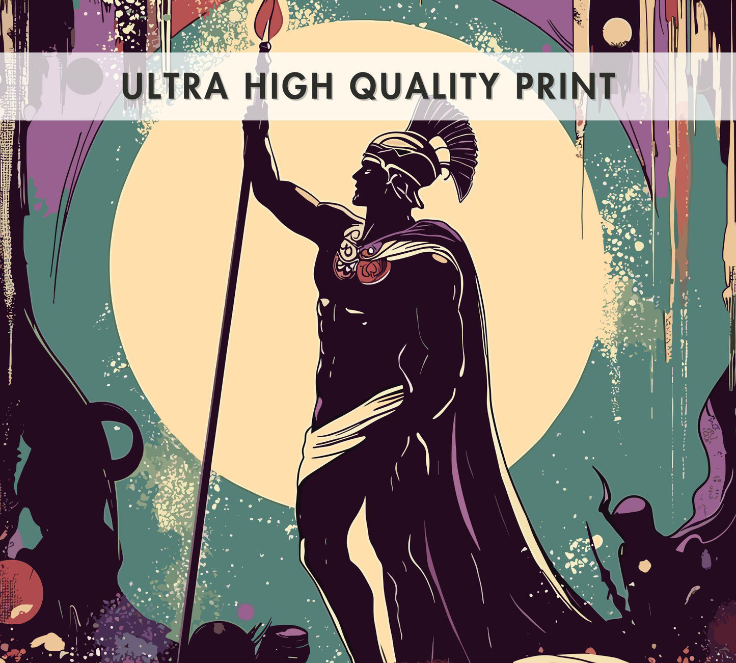 Cette œuvre mêle des rouges sang et des gris acier à l'essence sauvage d'Arès, capturant son esprit implacable dans un style saisissant. Imprimée sur un papier de qualité supérieure, elle offre une vivacité durable et une finition impeccable, ce qui en fait un cadeau idéal pour les passionnés d'histoire ou de mythologie. Ce poster d'Arès apporte une touche d'intensité martiale à n'importe quel mur.