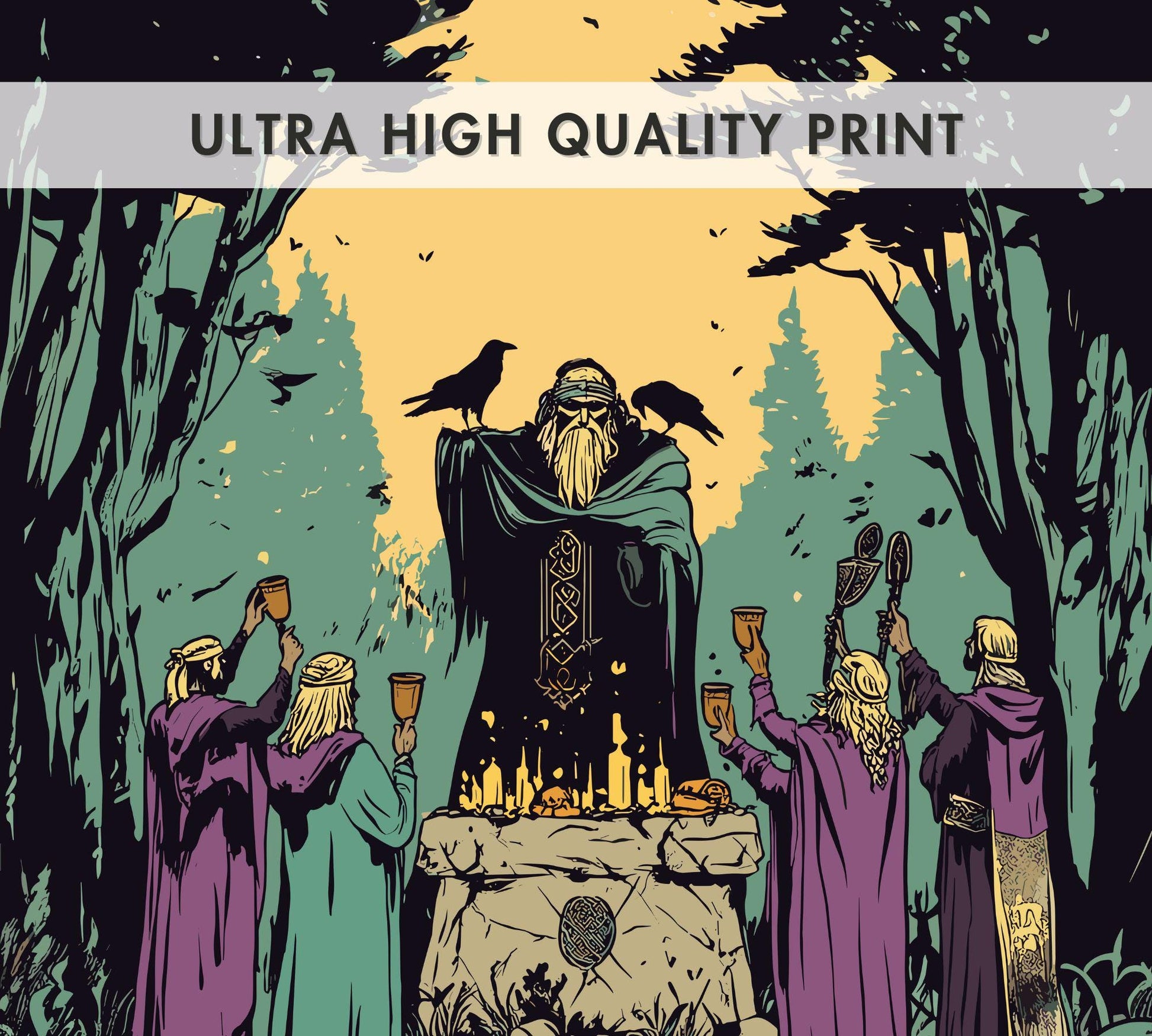 Imprimé sur un papier résistant et de haute qualité, cet art rituel nordique donne vie au pouvoir d'Ásatrú. Parfait pour ceux qui chérissent les traditions païennes ou recherchent une œuvre unique pour leur intérieur. C'est un hommage à Thor, Odin et aux rites sacrés.