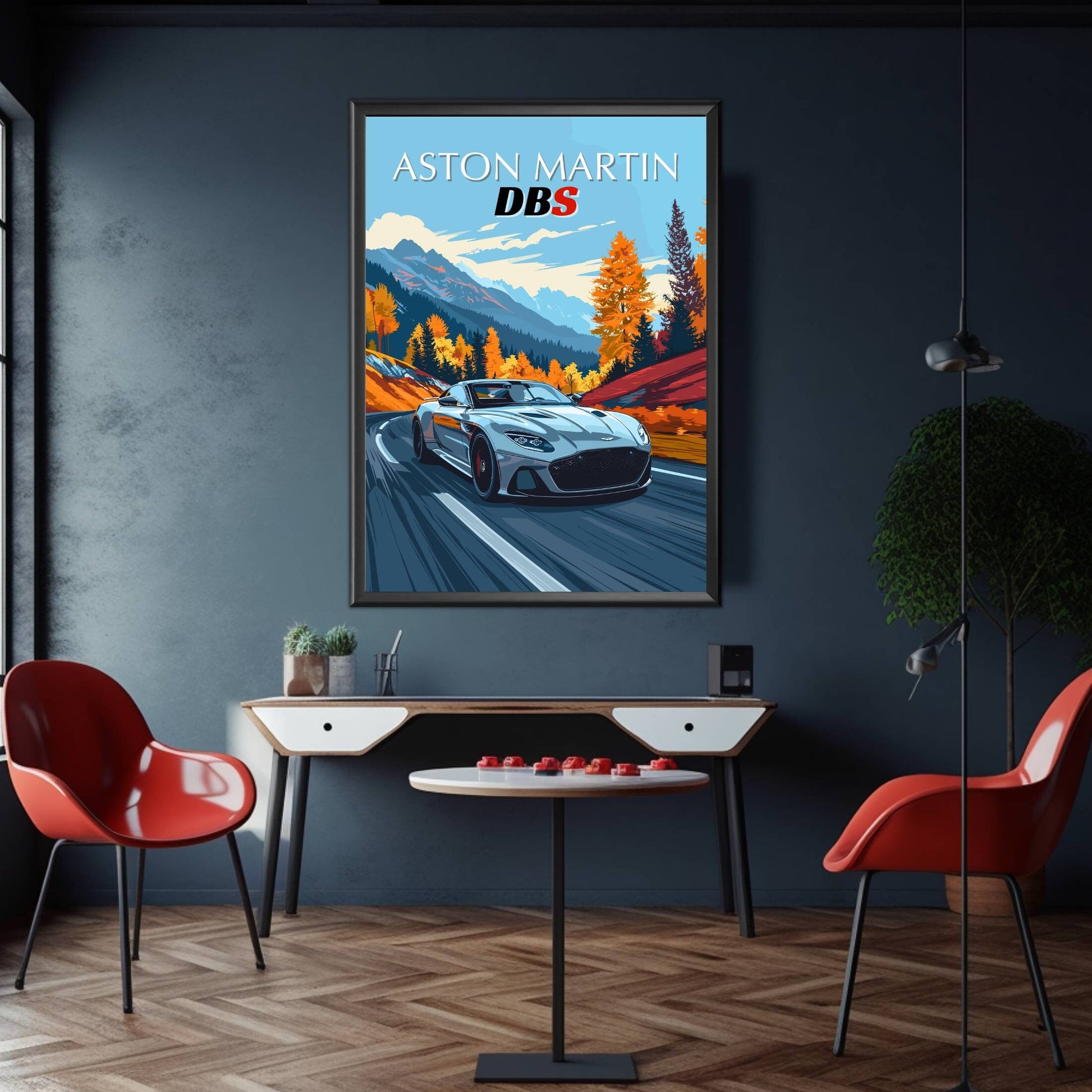 Affiche Aston Martin DBS – Impression d'art mural de voiture de sport britannique moderne