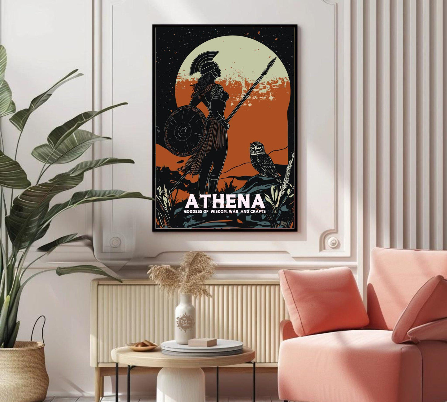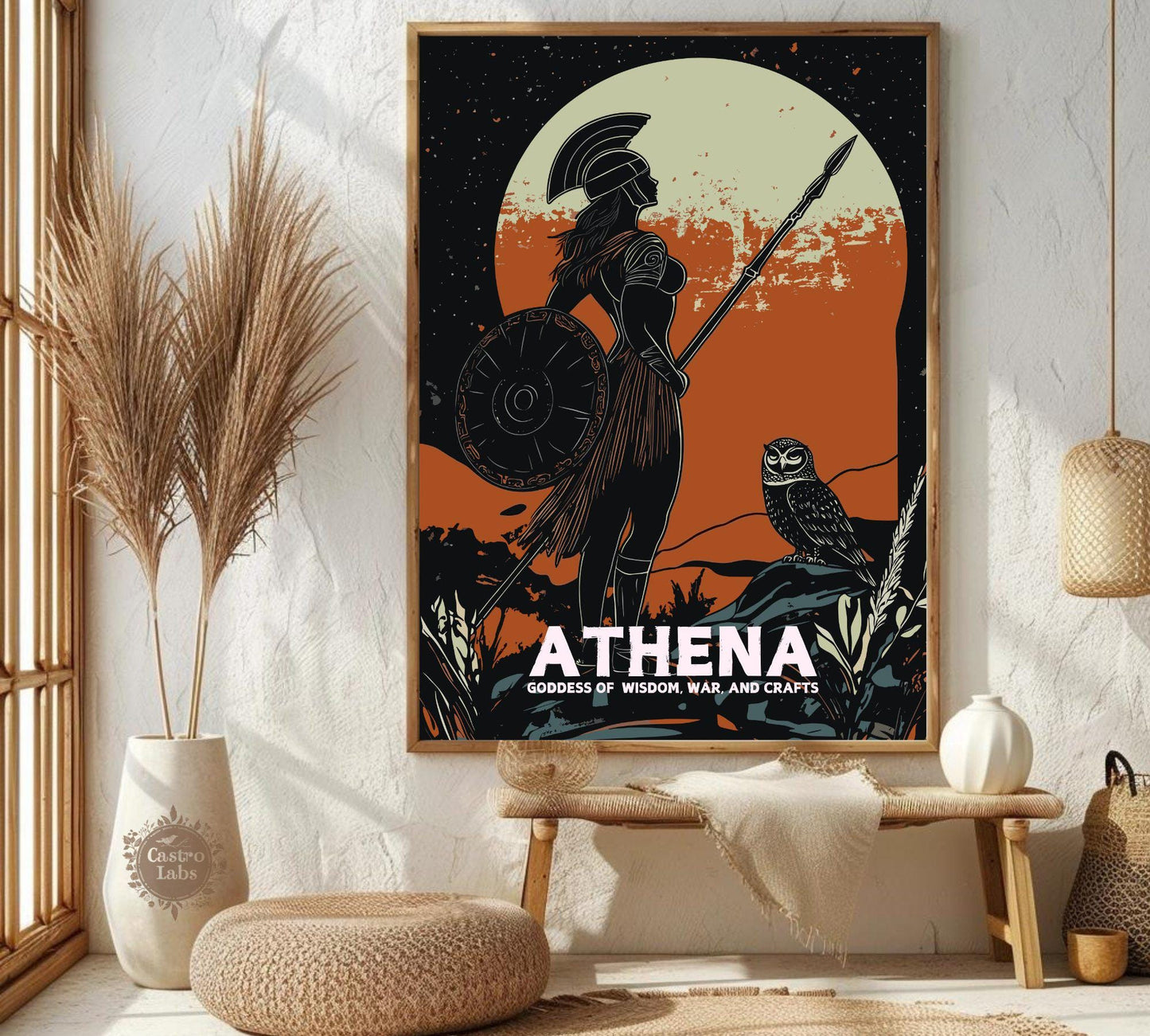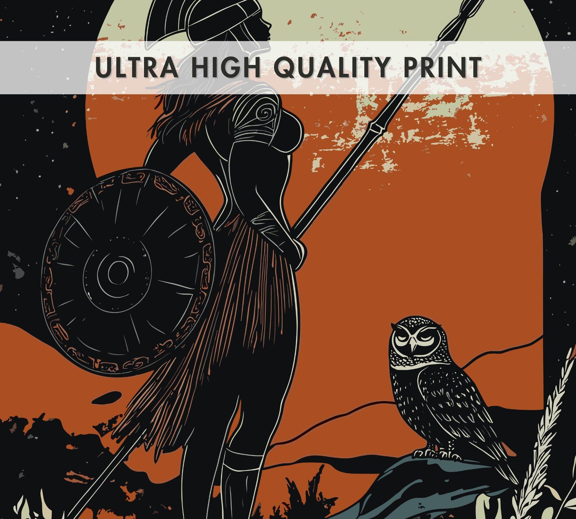 Notre affiche de la déesse Athéna - Grèce antique embellit votre espace grâce à son design sage et courageux. Parfaite pour les passionnés de mythologie et les chercheurs de sagesse, elle représente Athéna, déesse grecque de la sagesse et de la guerre, brandissant sa chouette et sa lance avec une force intemporelle. Que vous admiriez son héritage ou que vous soyez amateur d'art historique, cette affiche d'Athéna Grèce sera un atout précieux pour votre décoration.