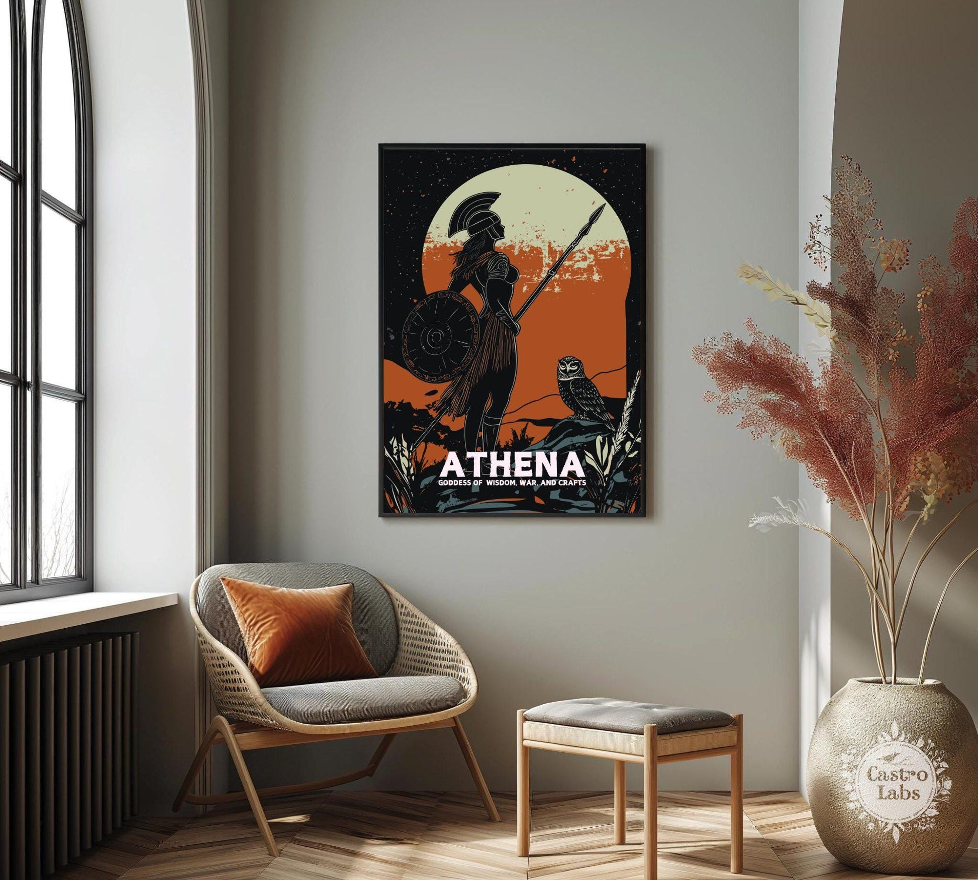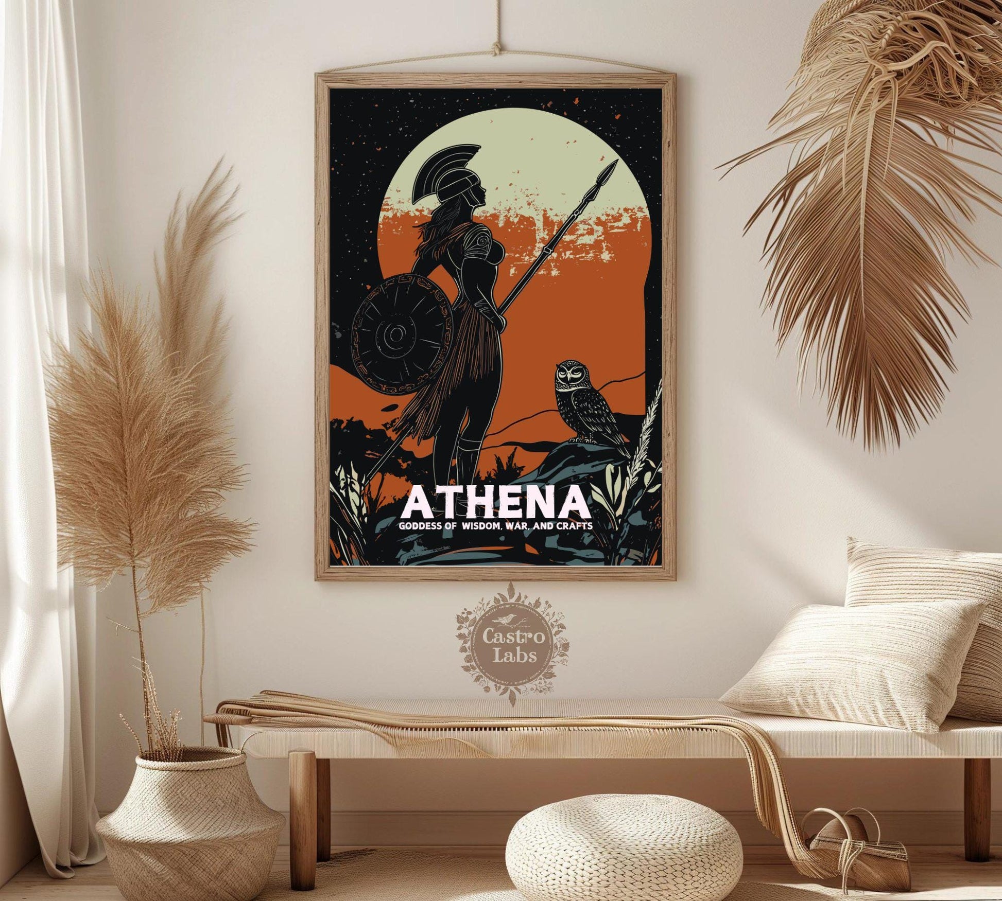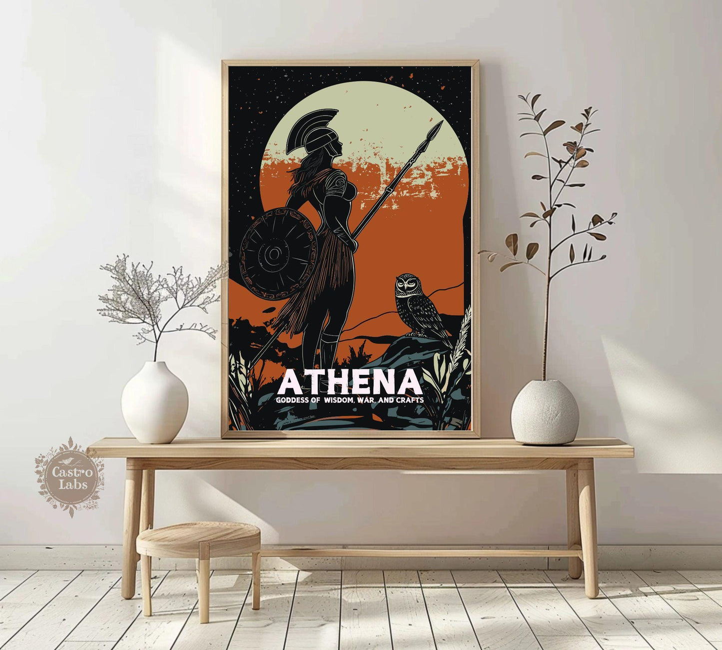 Notre affiche de la déesse Athéna - Grèce antique embellit votre espace grâce à son design sage et courageux. Parfaite pour les passionnés de mythologie et les chercheurs de sagesse, elle représente Athéna, déesse grecque de la sagesse et de la guerre, brandissant sa chouette et sa lance avec une force intemporelle. Que vous admiriez son héritage ou que vous soyez amateur d'art historique, cette affiche d'Athéna Grèce sera un atout précieux pour votre décoration.