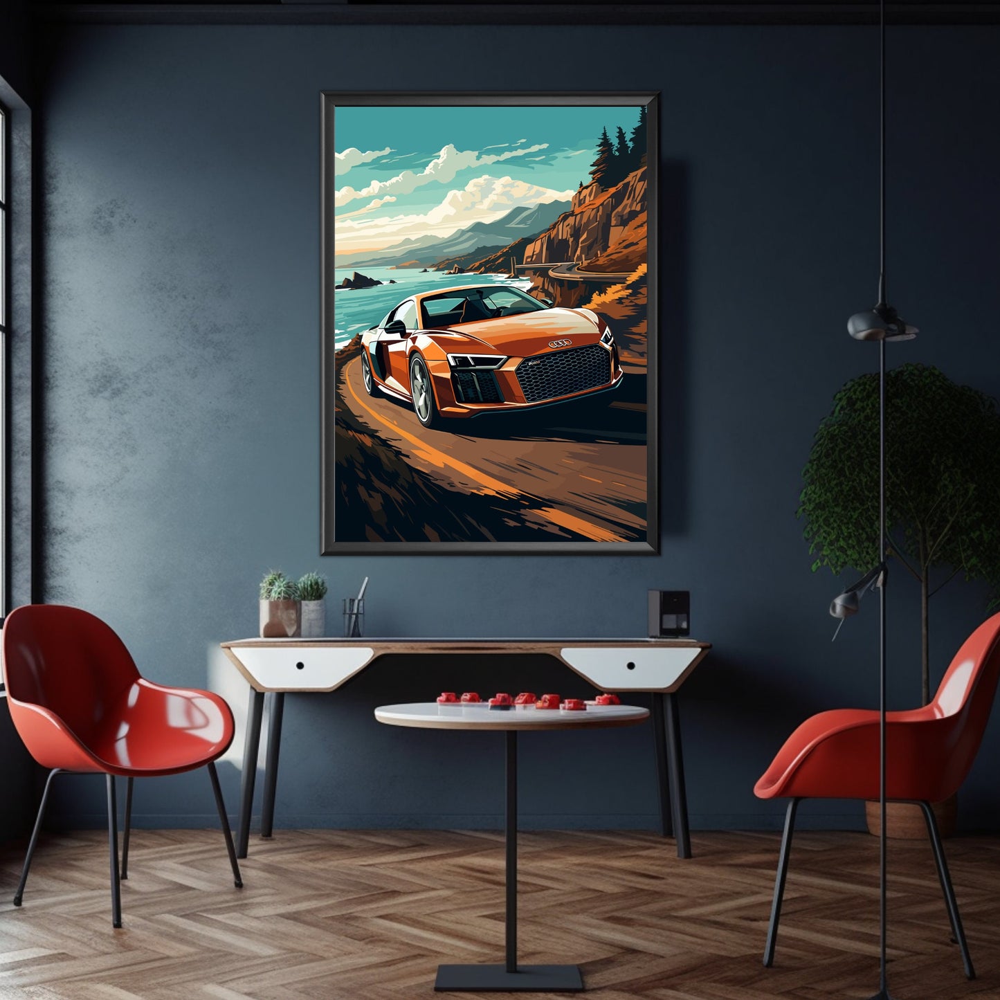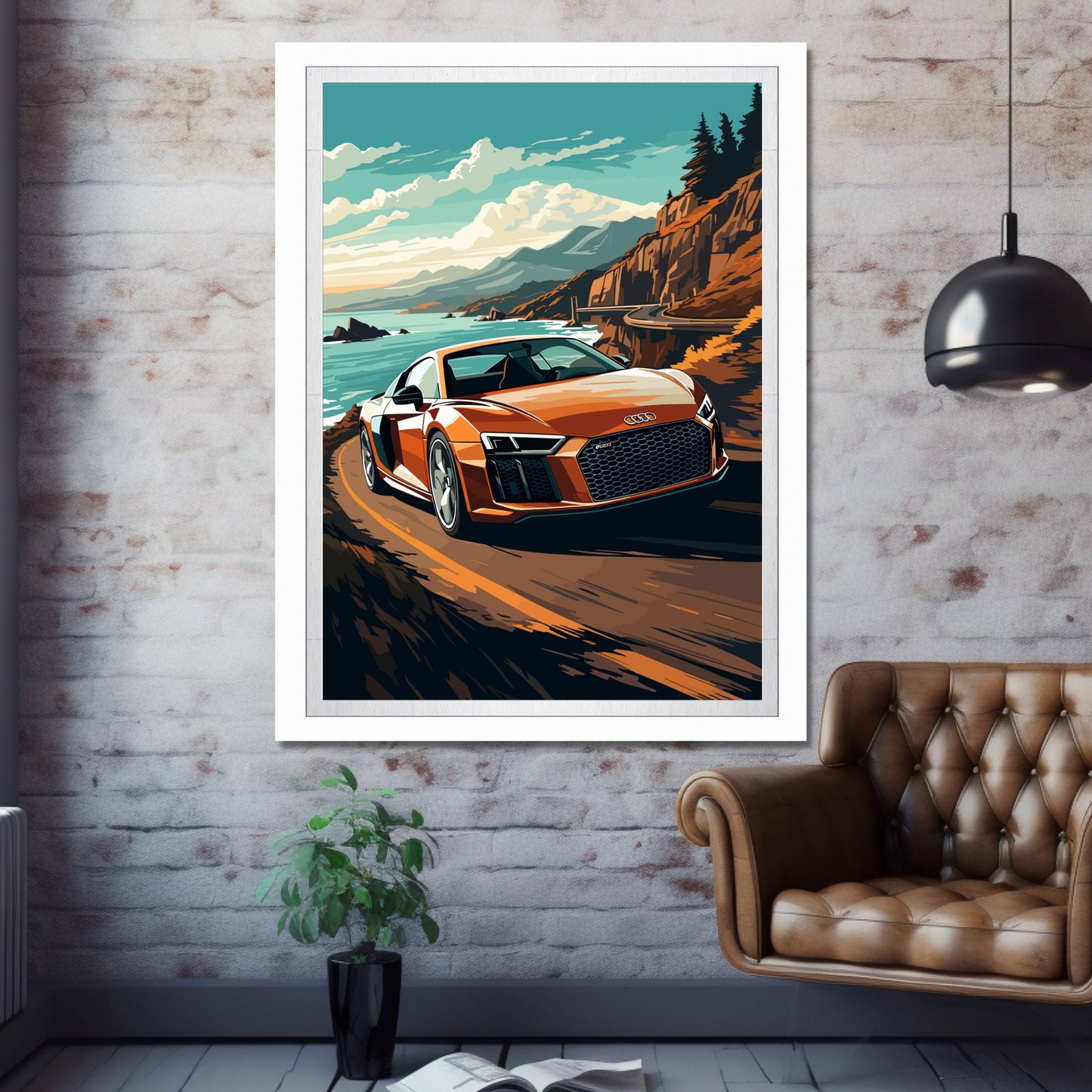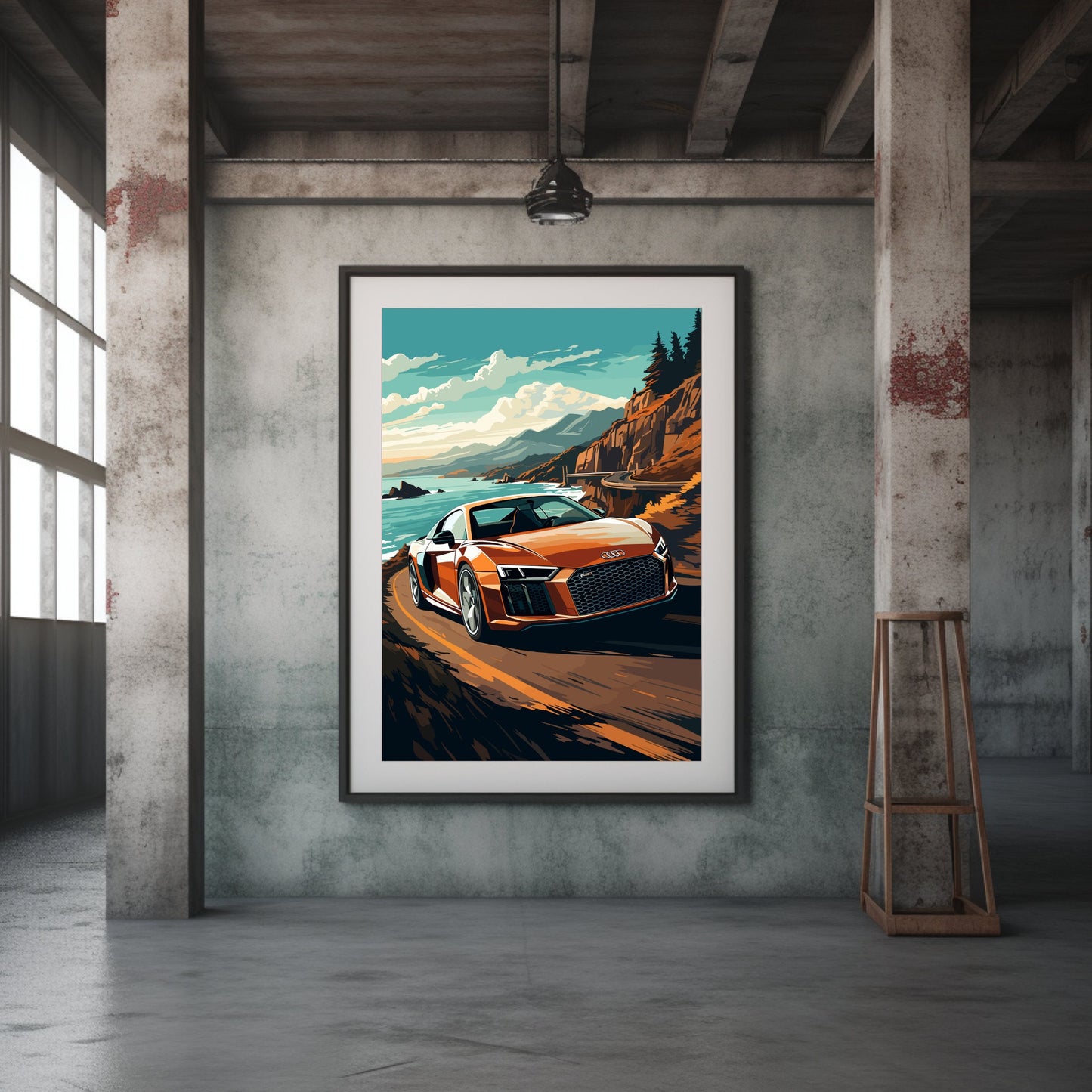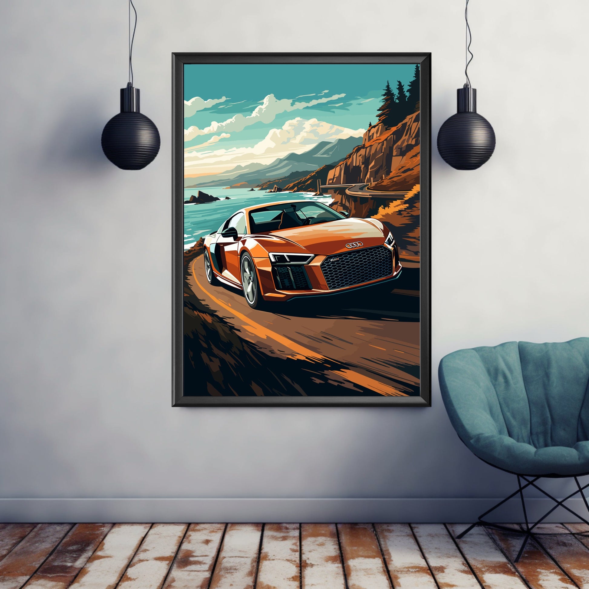Affiche Audi R8 – Décoration murale représentant une voiture de sport allemande haute performance