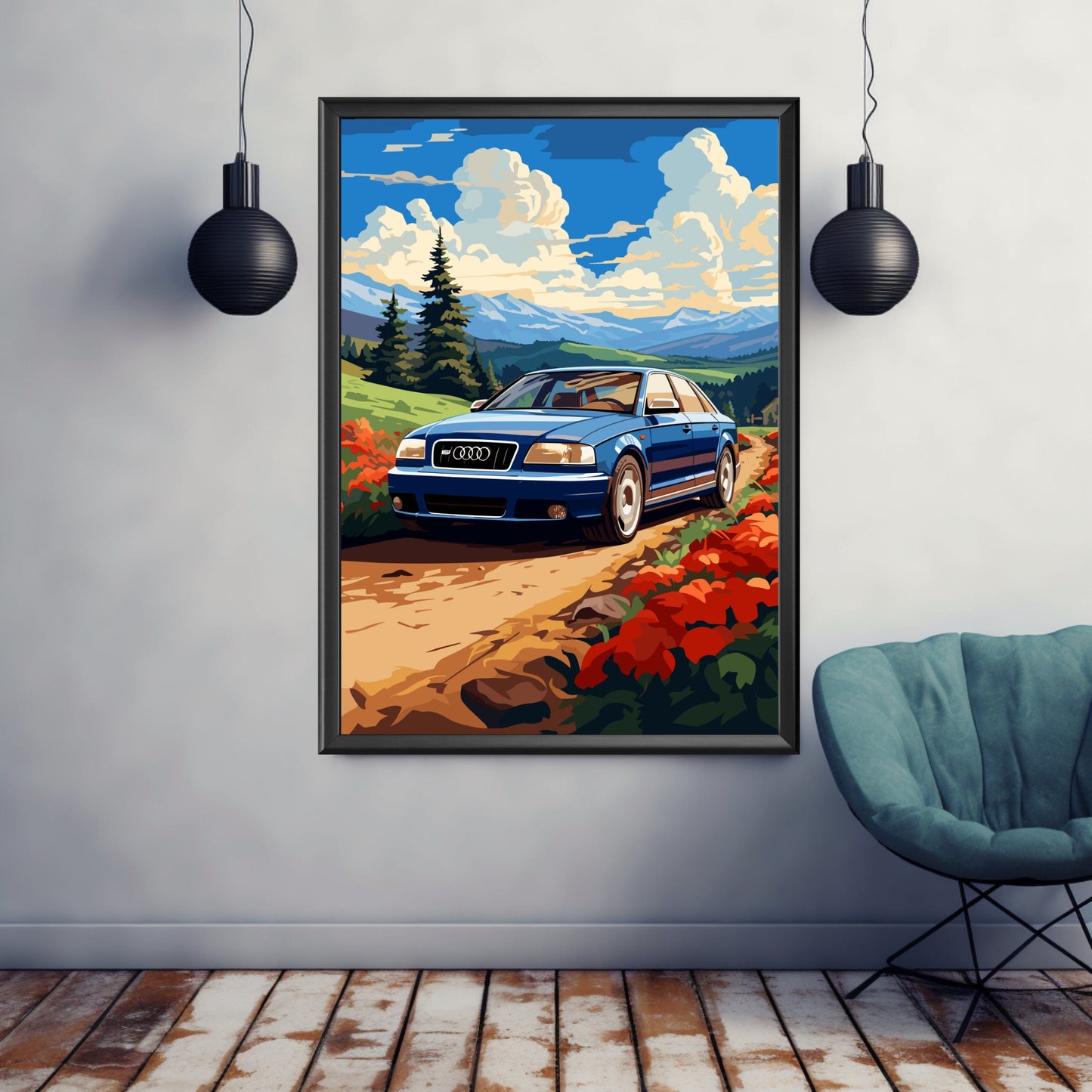 Affiche Audi S4 B5 – Impression d'art mural classique de voiture de sport allemande