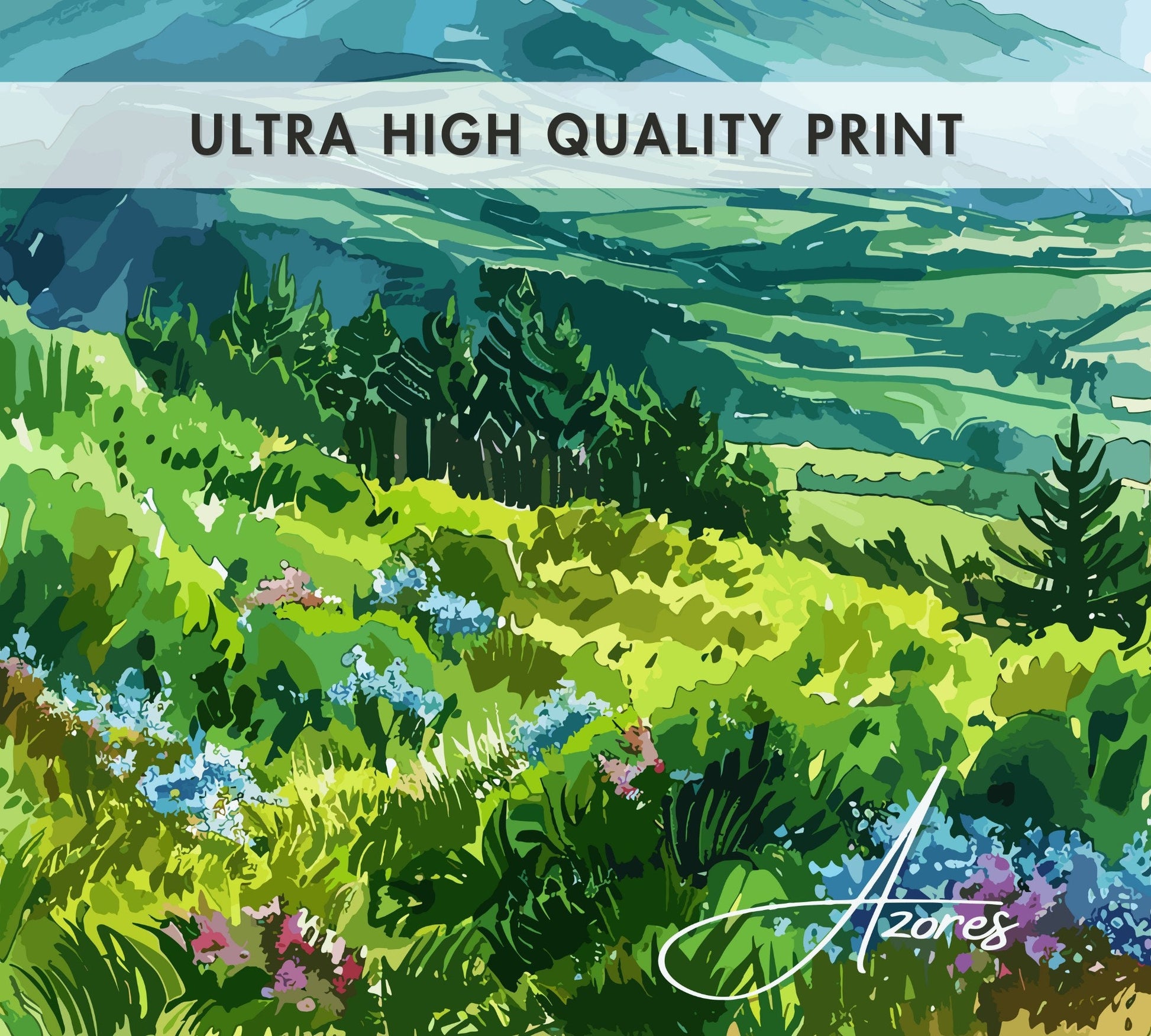 Célébrez l'île paradisiaque du Portugal avec cette affiche de voyage vibrante des Açores.