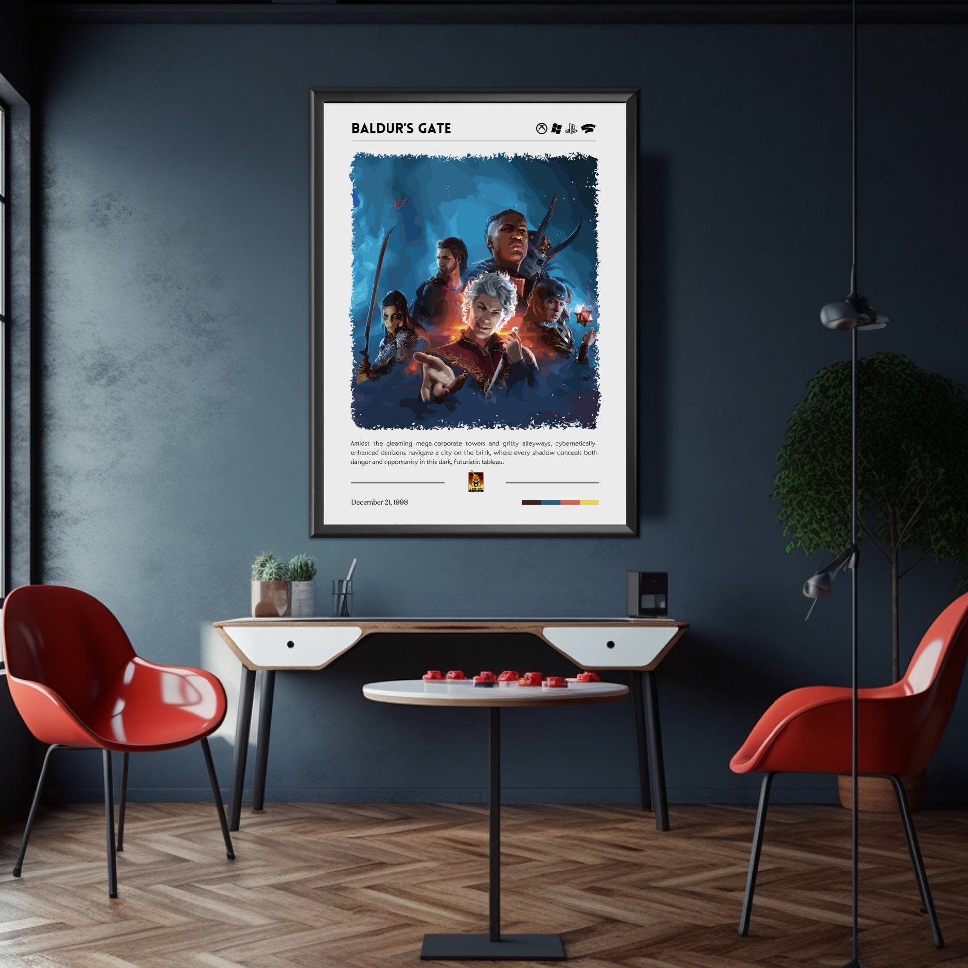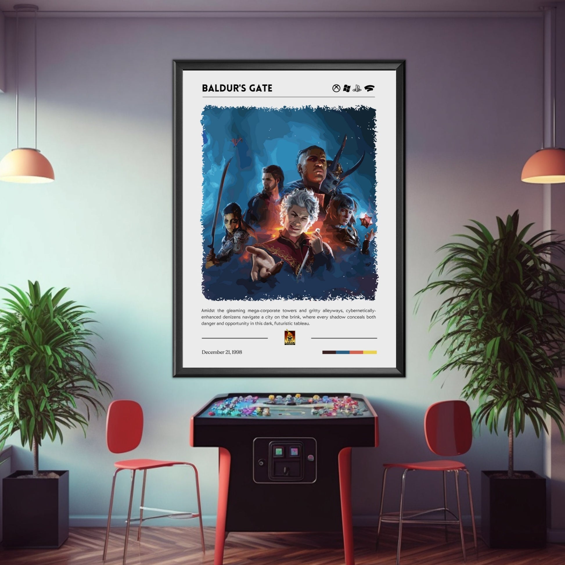 Affiche Baldur's Gate 3 – Décoration murale de RPG fantastique pour les fans de D&D et de jeux vidéo