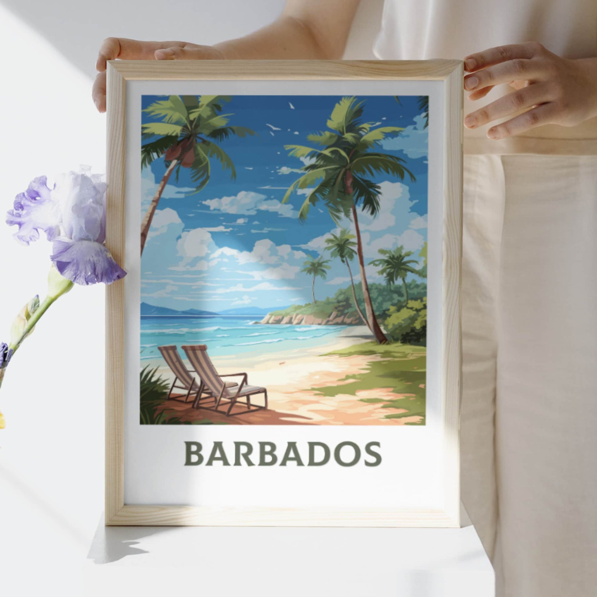Disponible en téléchargement numérique et en tirage physique premium , cette affiche de voyage à la Barbade est disponible en plusieurs formats, du format standard de la série A aux grands formats 76 x 102 cm. Imprimée sur un papier de haute qualité aux couleurs vives et aux détails précis, elle est idéale pour les salons, les bureaux, les maisons de plage ou comme cadeau attentionné pour toute personne inspirée par les Caraïbes.
