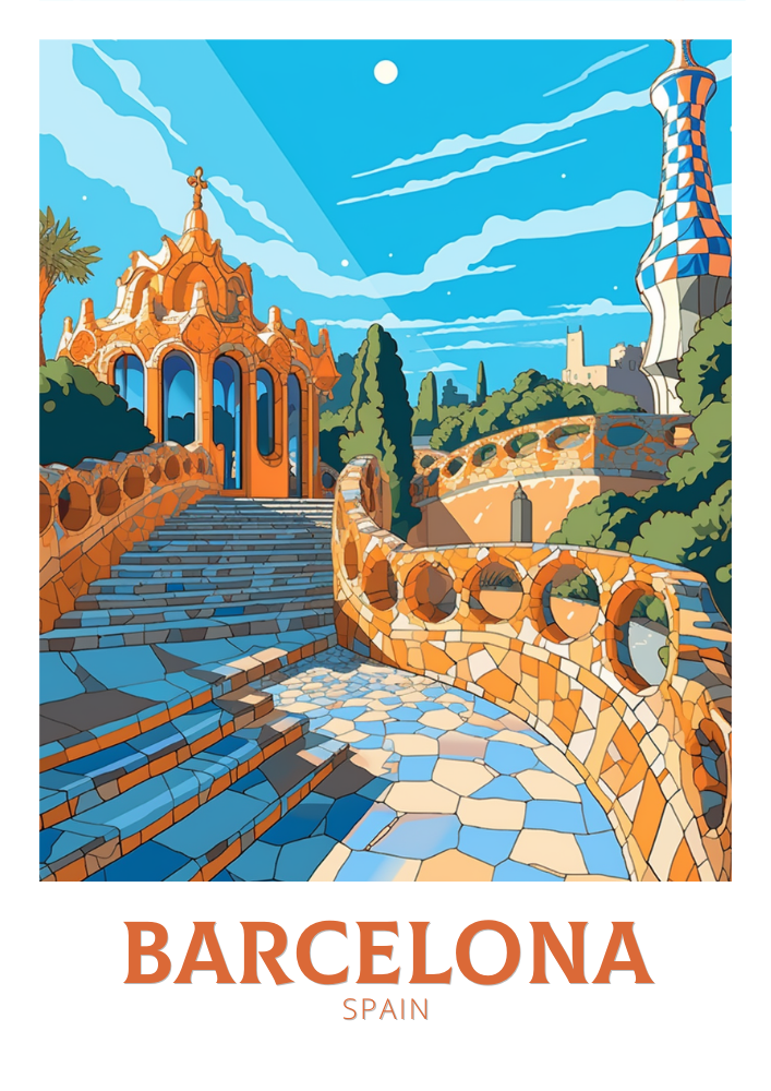 Affiche de voyage à Barcelone : le parc de Gaudi