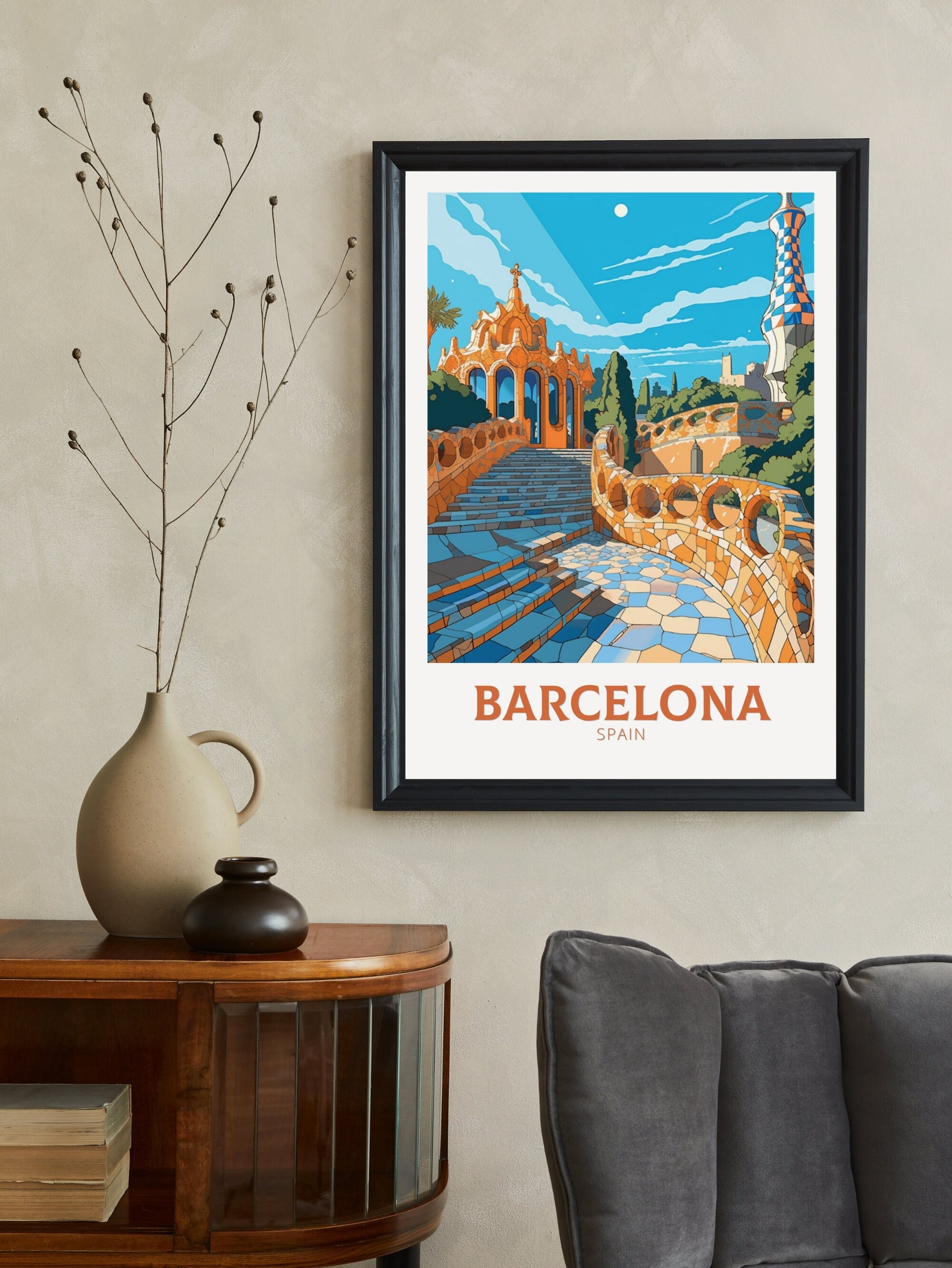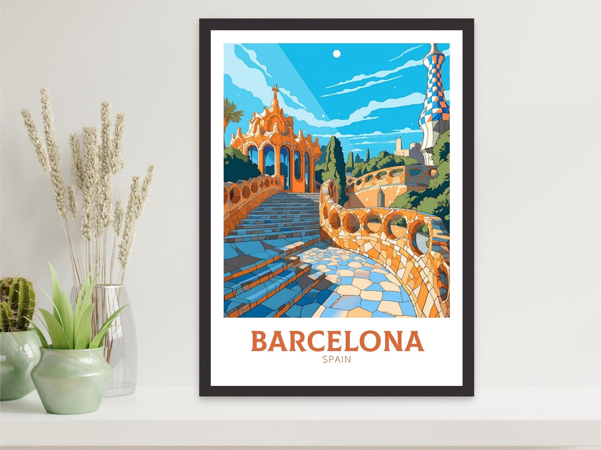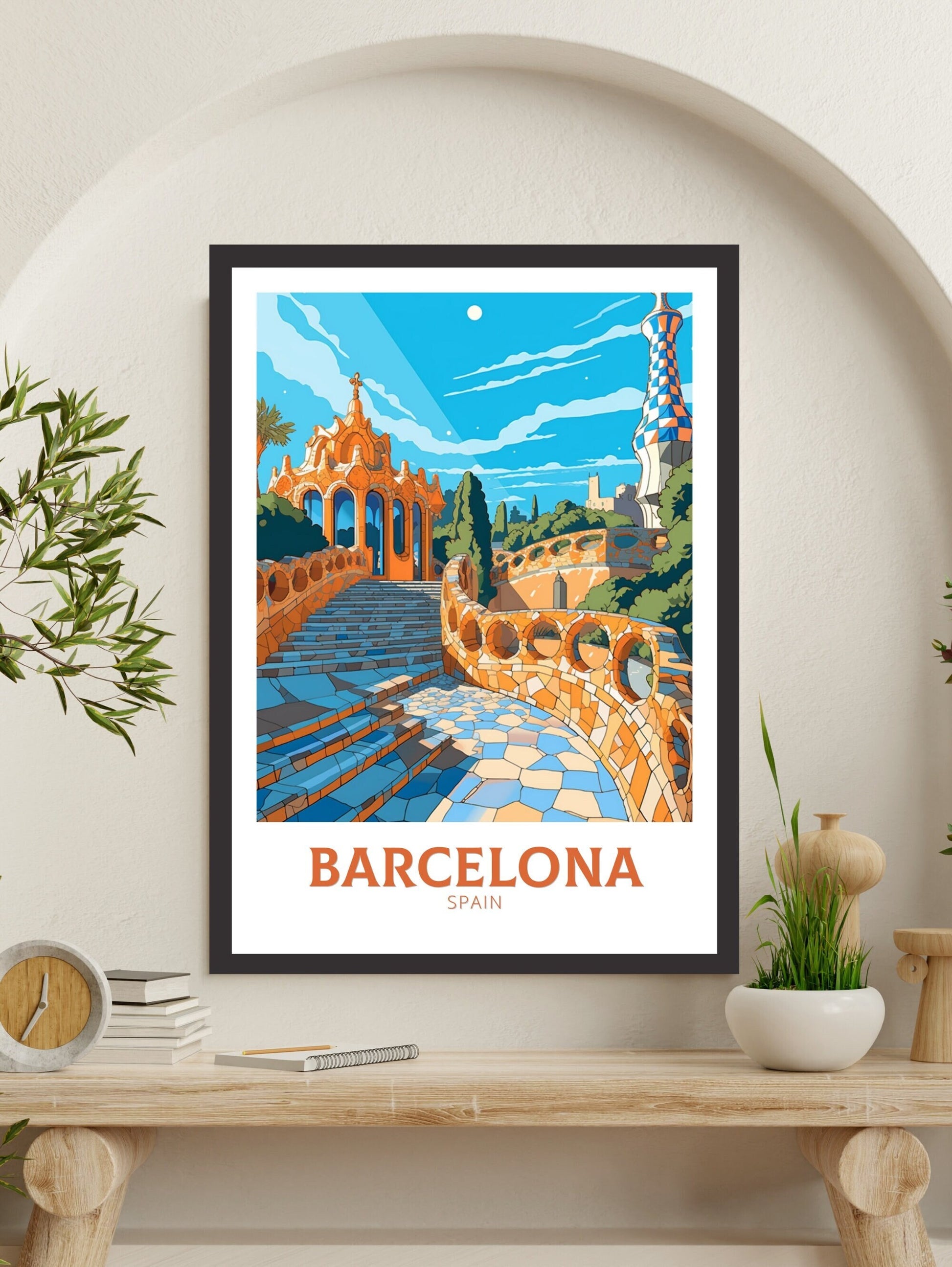Imprimée sur du papier d'archive de qualité musée, cette affiche de voyage inspirée de Gaudí est idéale pour les amateurs d'art, les passionnés d'Espagne et ceux qui adorent le charme unique de Barcelone. Un ajout élégant à tout mur célébrant la créativité et la culture.