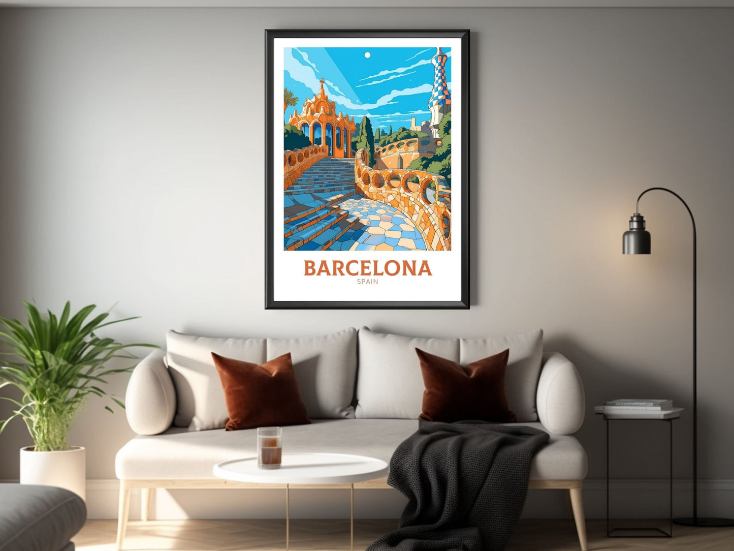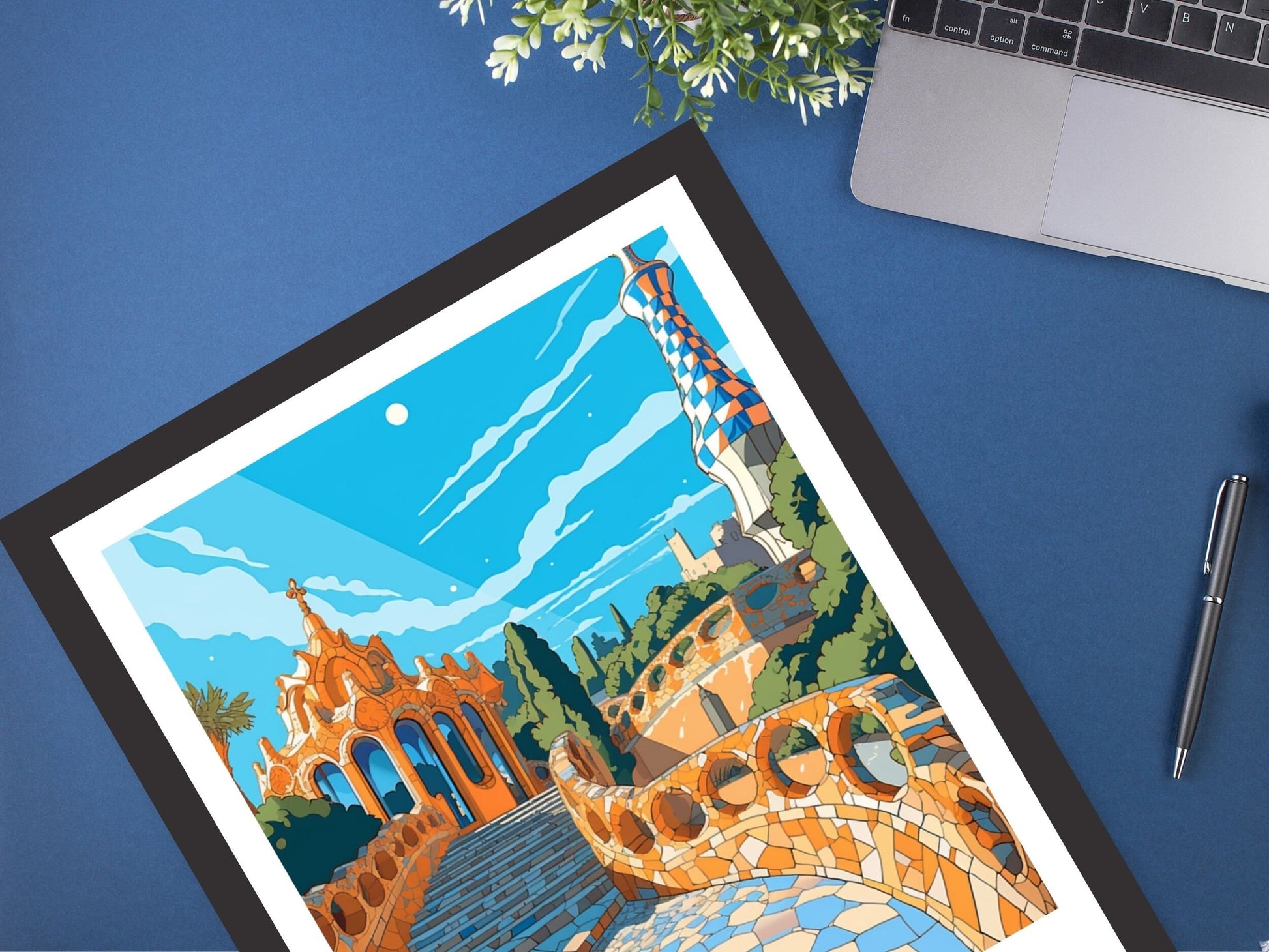 Intégrez le génie artistique d'Antoni Gaudí à votre intérieur avec cette saisissante œuvre d'art de Barcelone représentant le parc Güell. Cette affiche colorée capture les courbes ludiques, les mosaïques audacieuses et l'esprit vibrant de l'un des monuments les plus emblématiques de Barcelone.
