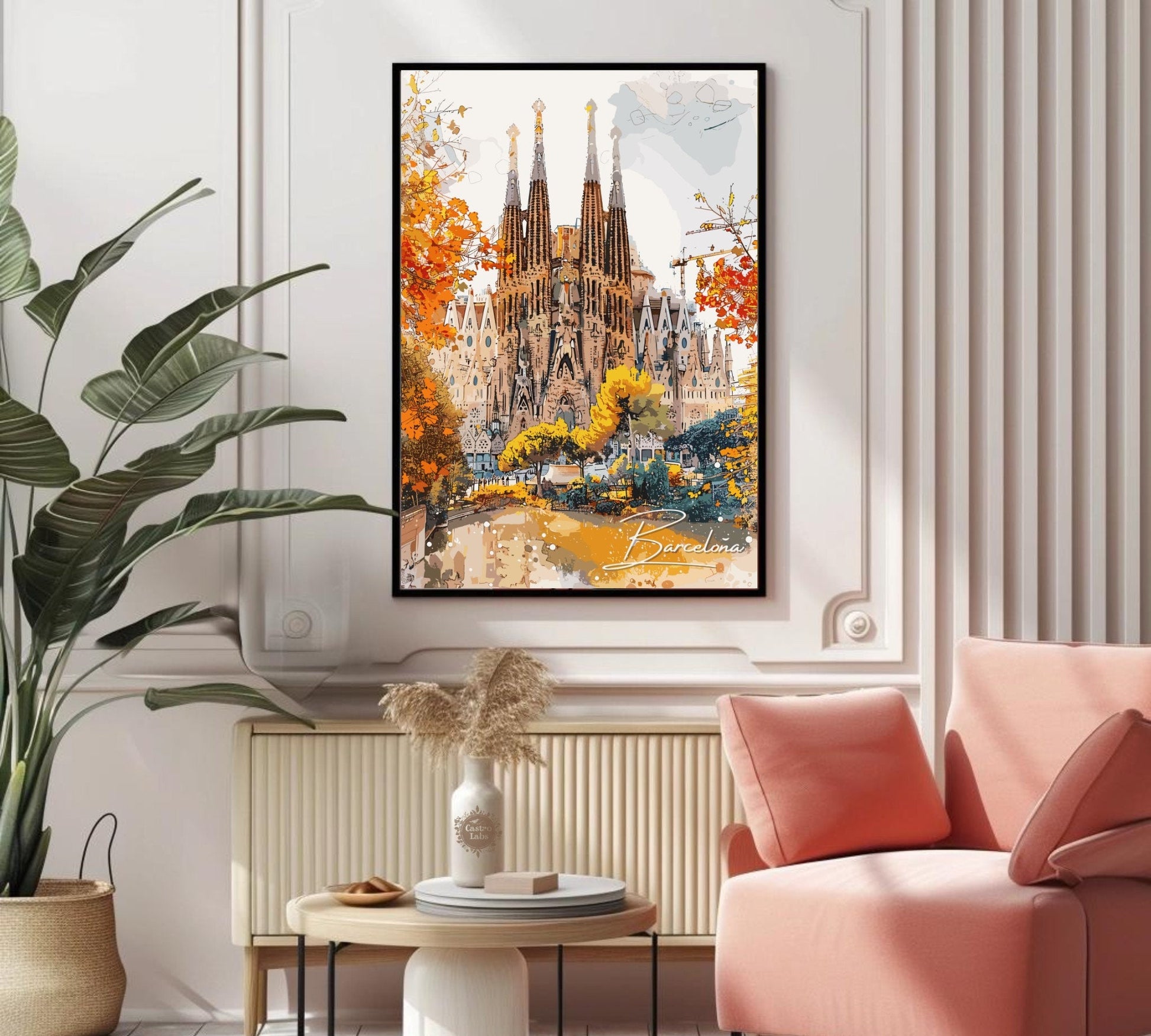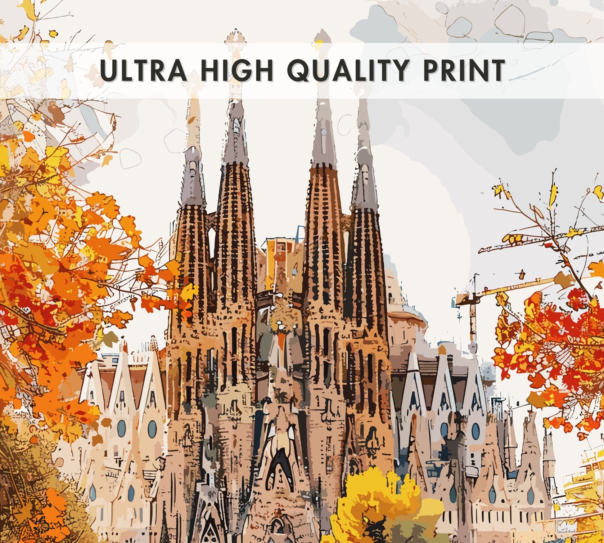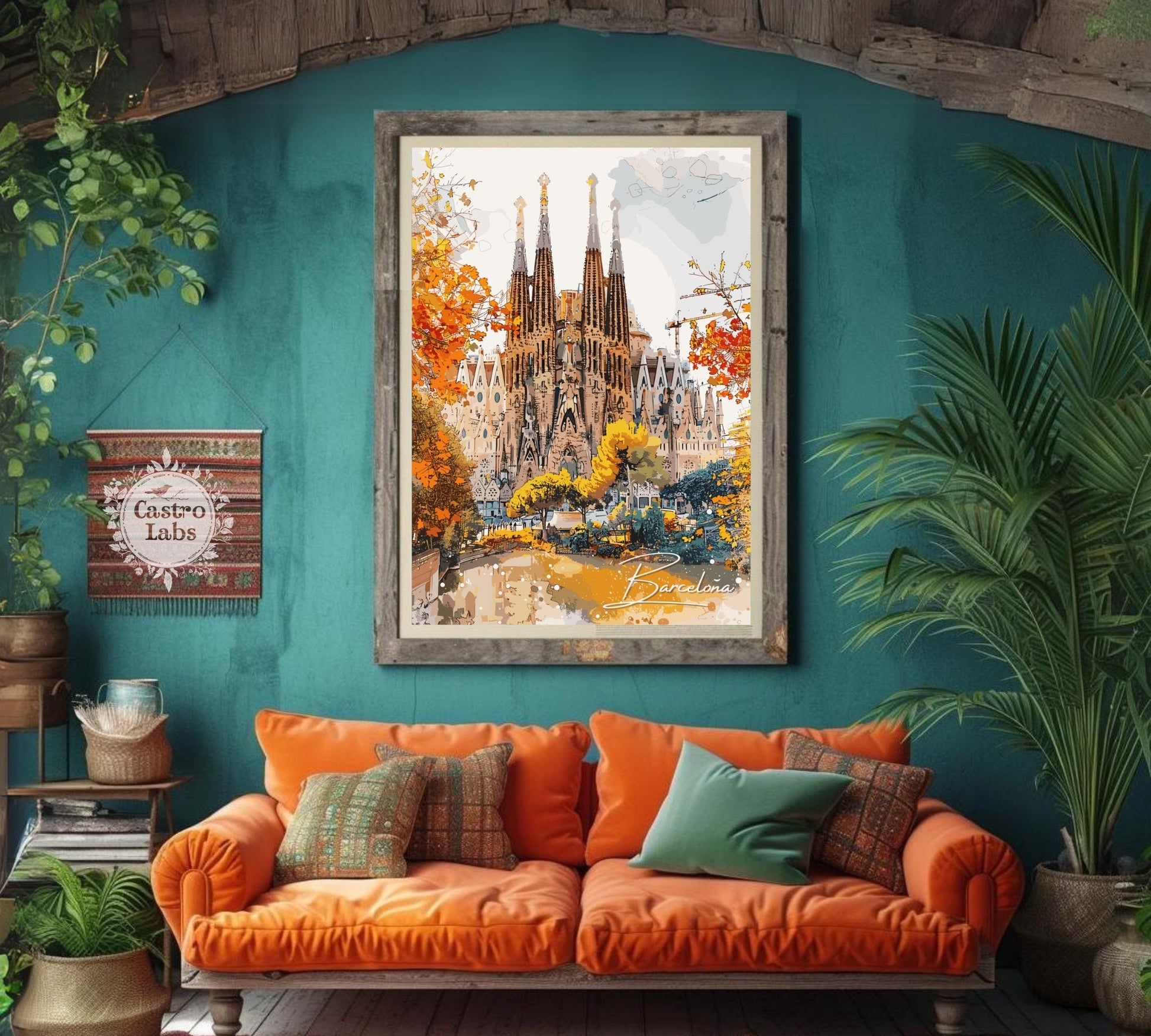 Apportez l'esprit de Barcelone chez vous avec cet élégant imprimé de voyage Sagrada Familia.