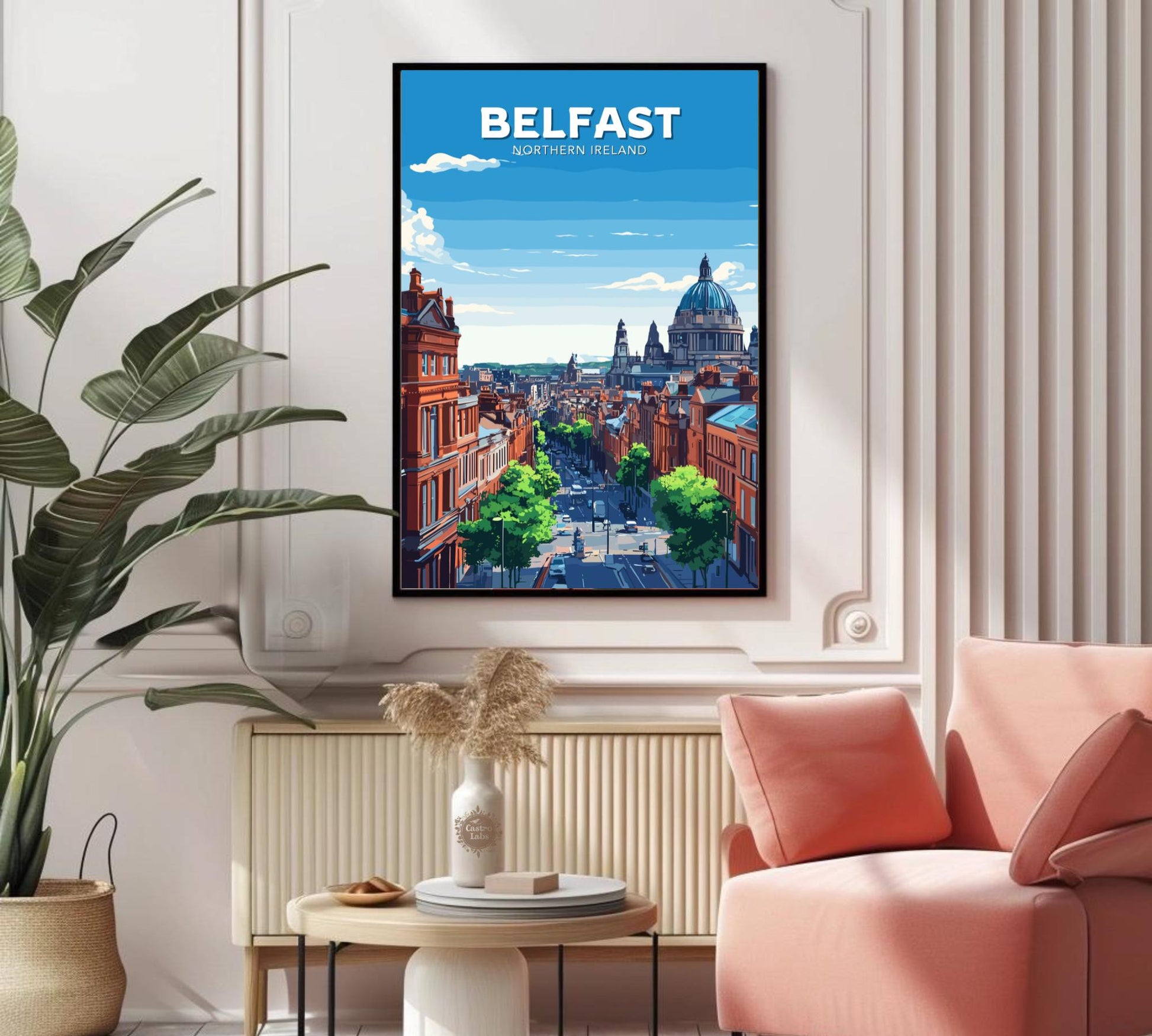 Cette œuvre allie des tons riches au charme intemporel de Belfast, capturant son essence de centre historique et d'innovation. Imprimée sur un papier de qualité supérieure, elle offre un éclat durable et une finition raffinée, ce qui en fait un cadeau idéal pour les voyageurs ou les passionnés de culture celtique. Cette affiche Belfast apporte une touche d'élégance urbaine à tout espace.