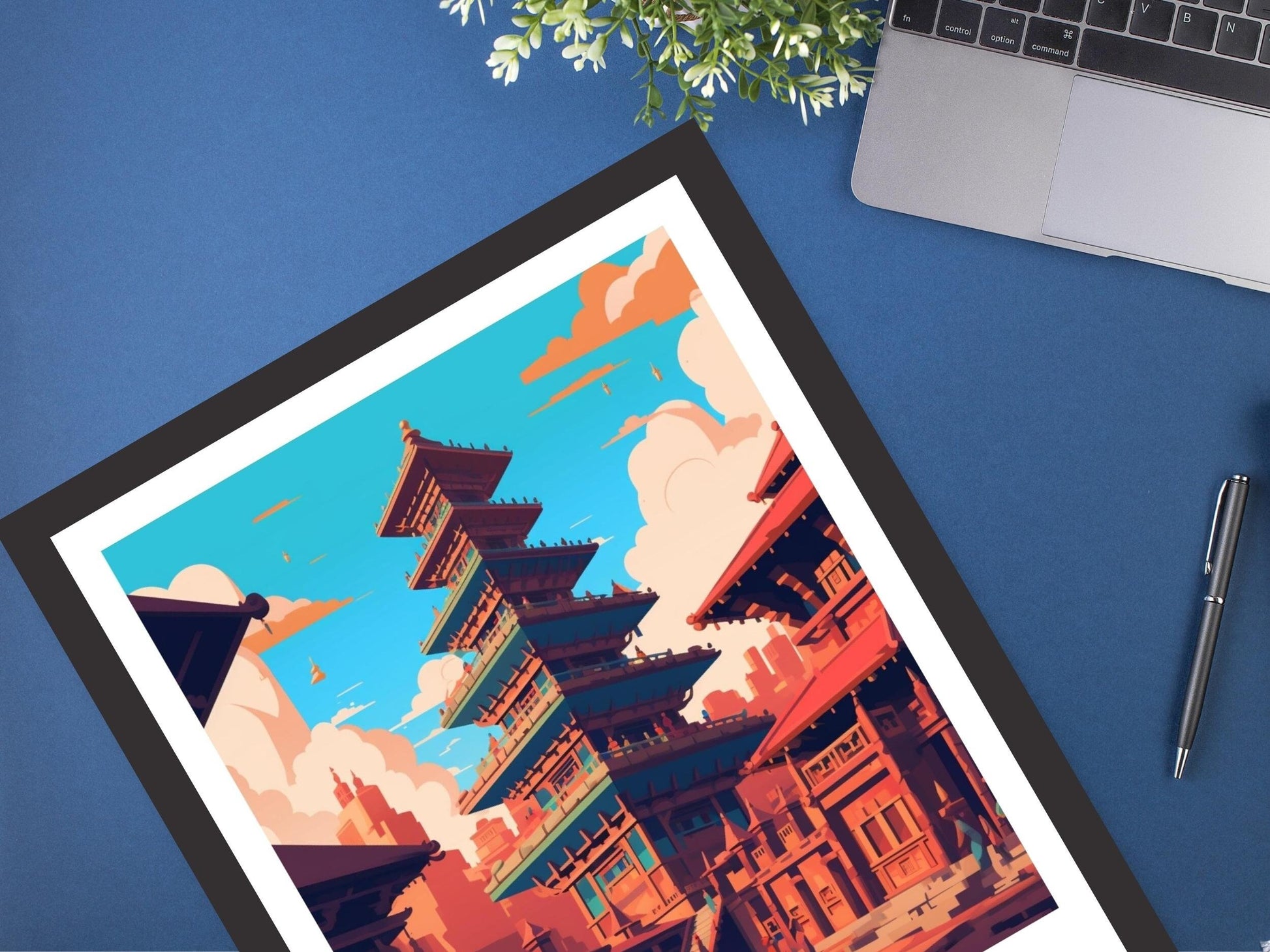 Notre affiche Bhaktapur - Népal, imprimée sur du papier, transporte votre intérieur dans le charme ancestral de Bhaktapur, au Népal, grâce à son design vibrant. Idéale pour les passionnés de voyages et d'art, elle capture avec force détails les temples complexes, les rues pavées et les places de poterie de la ville. Que vous ayez arpenté ses ruelles ou rêvé de son patrimoine, cette affiche Bhaktapur Népal sera un atout déco exceptionnel.