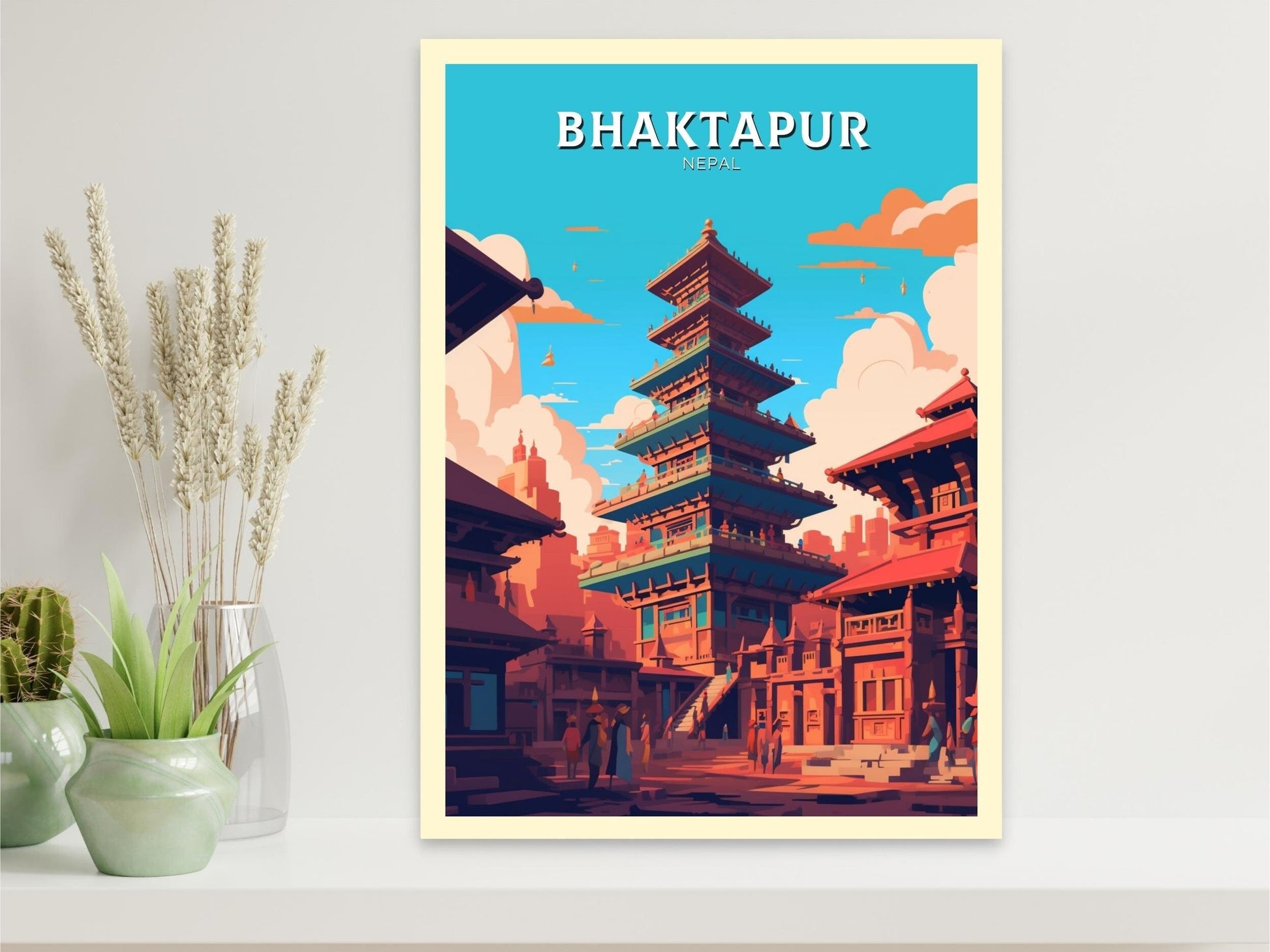 Notre affiche Bhaktapur - Art Vintage plonge votre intérieur dans le charme médiéval de Bhaktapur, au Népal, grâce à son design nostalgique. Parfaite pour les passionnés de voyages et d'art rétro, elle capture les temples anciens et les places finement sculptées de la ville dans un style intemporel. Que vous ayez flâné dans ses ruelles ou rêvé de son patrimoine, cette affiche vintage de Bhaktapur sera un ajout magnifique à votre décoration.