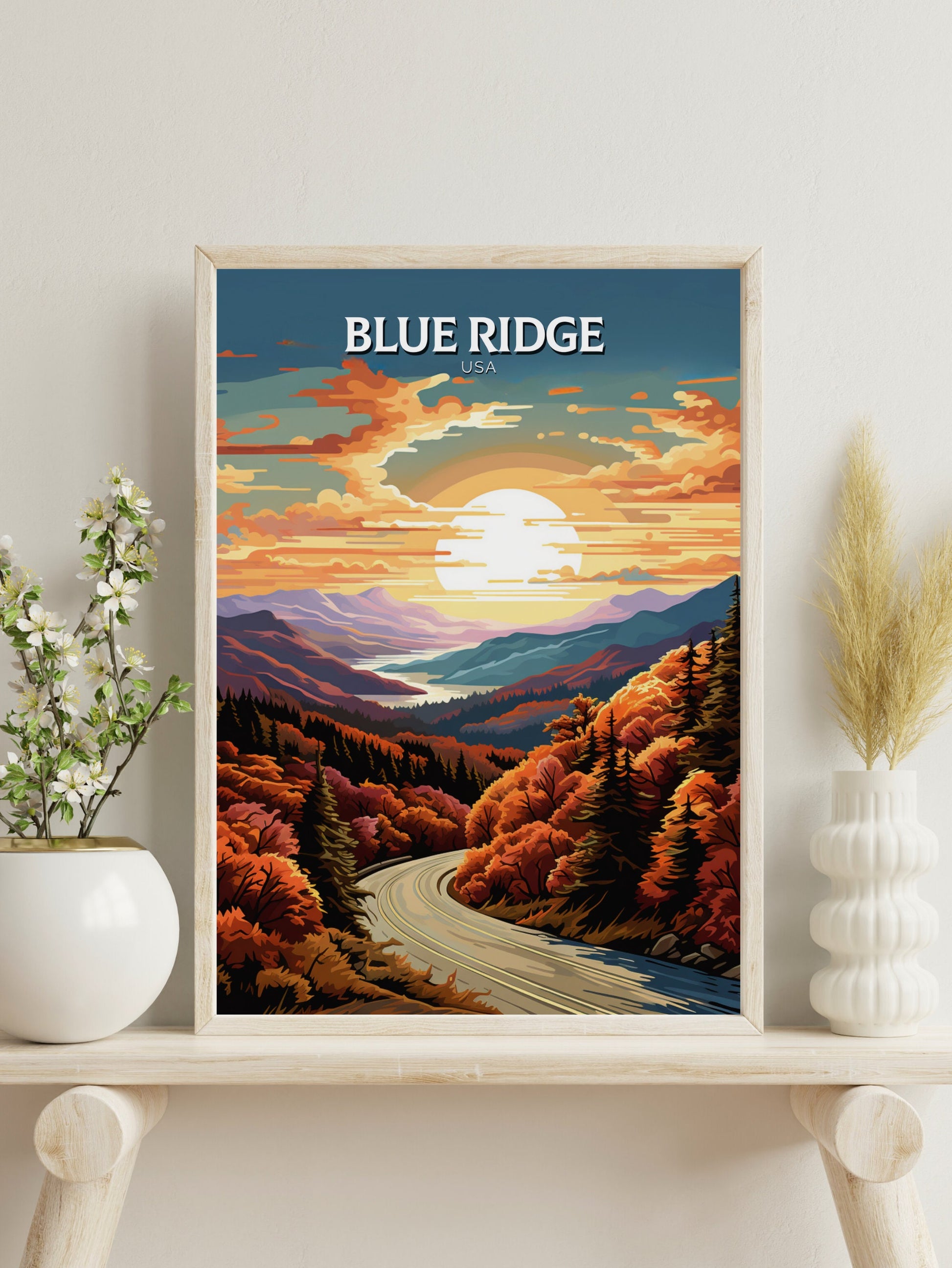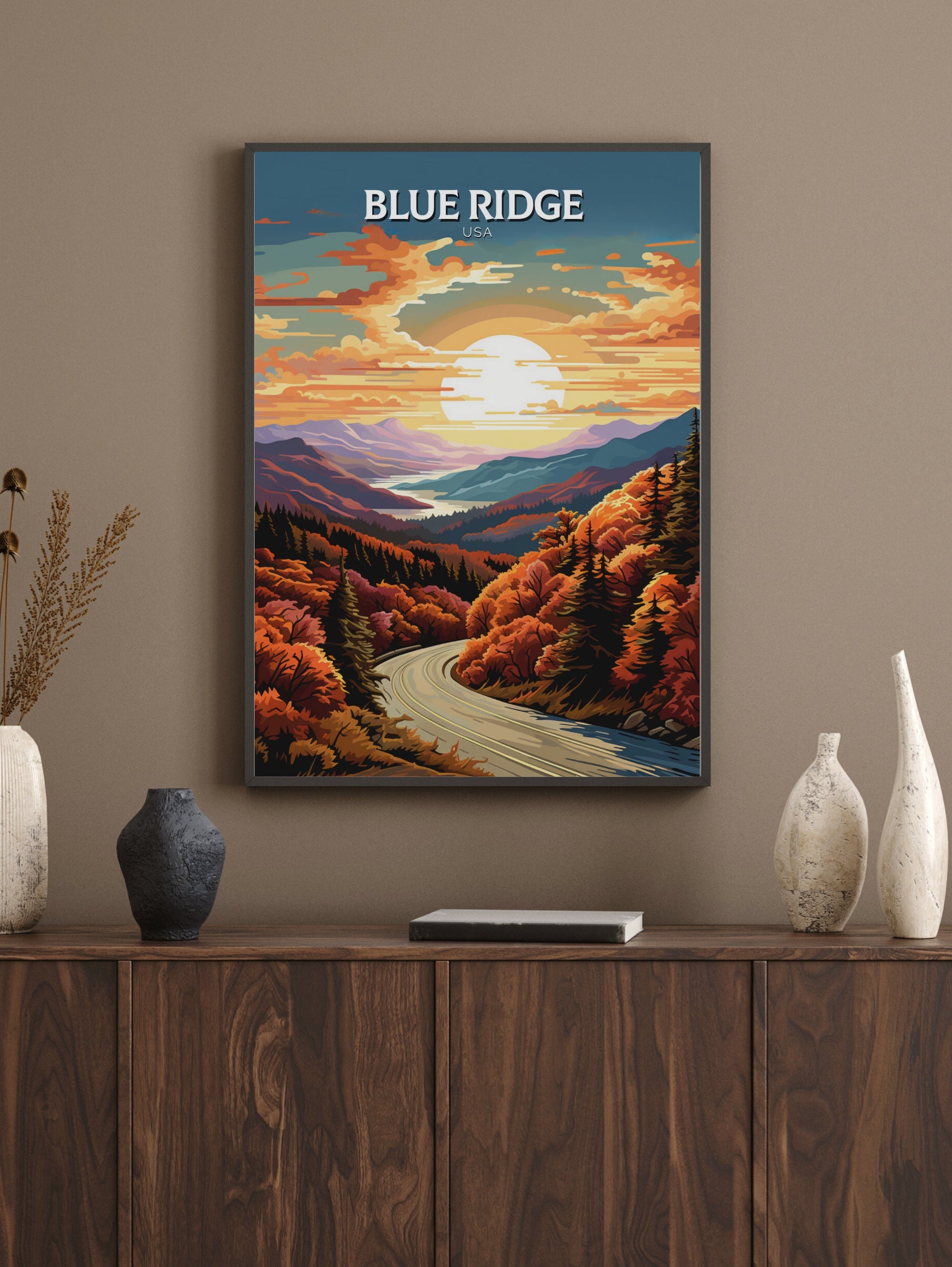 Découvrez la beauté époustouflante des Appalaches avec notre affiche de voyage de la Blue Ridge Parkway . Cette œuvre met en valeur les routes sinueuses emblématiques de la promenade, ses feuillages d'automne éclatants et ses panoramas montagneux, idéale pour les amoureux de la nature, les randonneurs et les passionnés de voyages. Apportez la tranquillité et la majesté de la Blue Ridge Parkway chez vous ou au bureau grâce à cette affiche captivante.