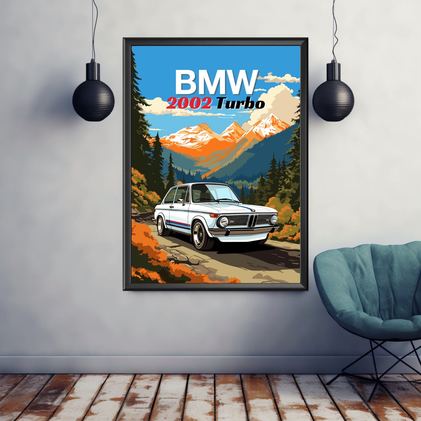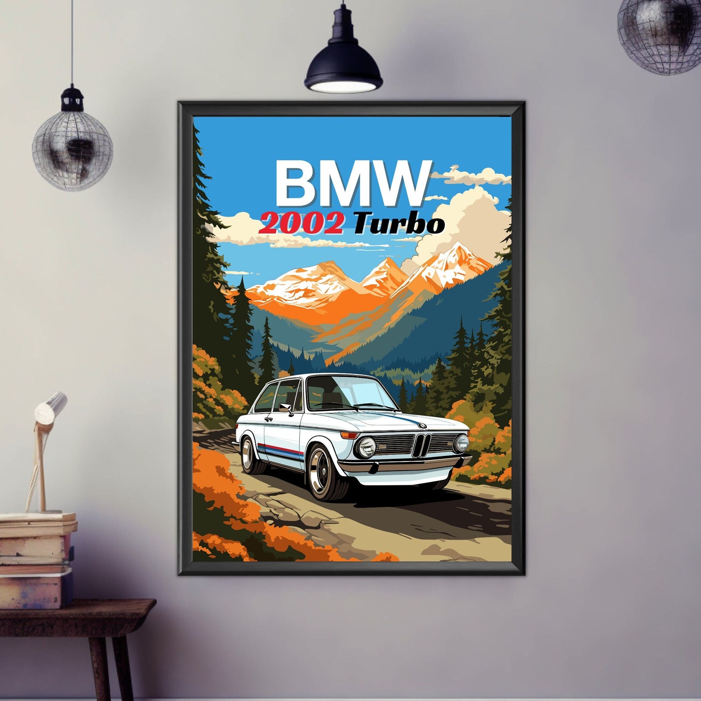 Impression BMW 2002 Turbo – Décoration murale de voiture de sport allemande classique des années 1970