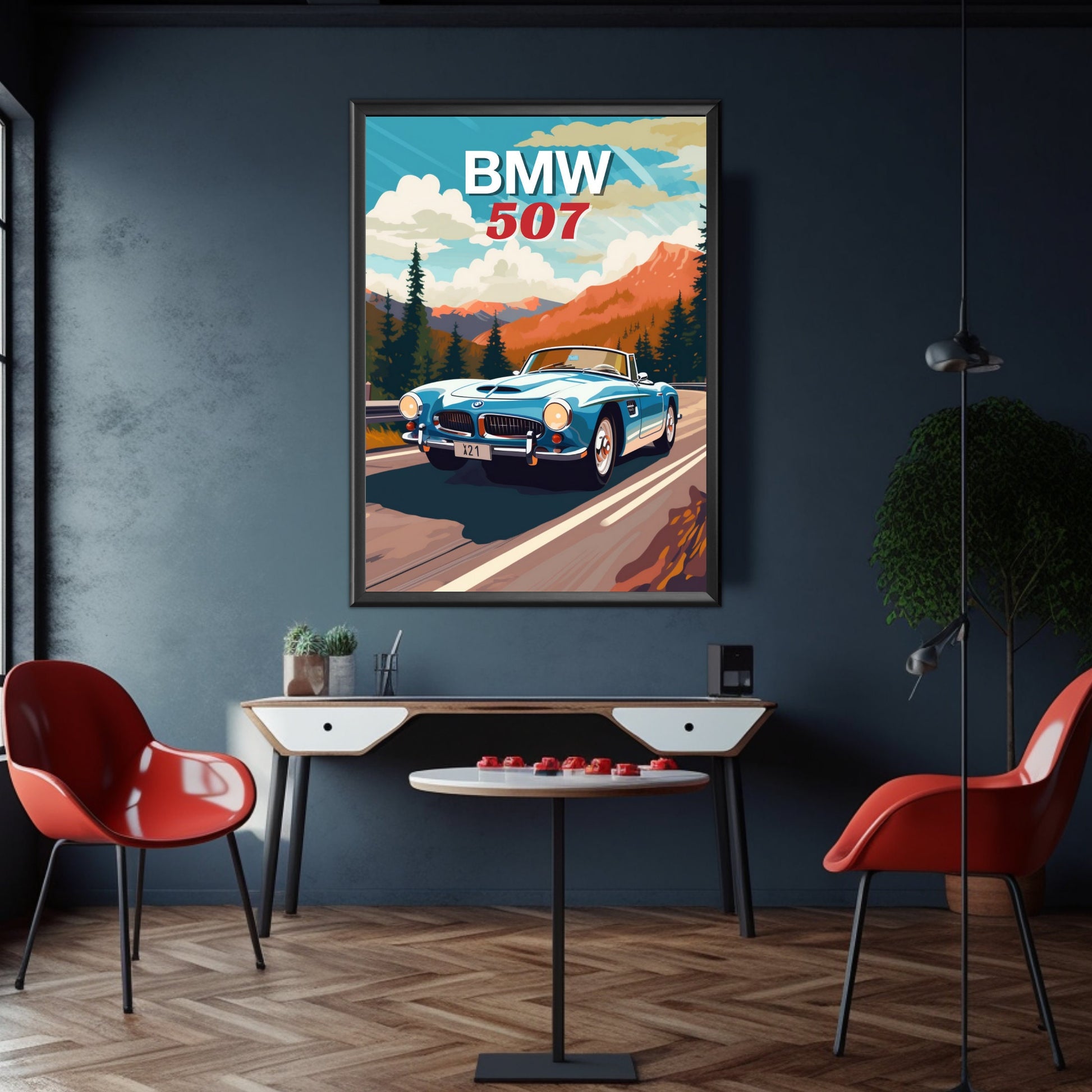 Apportez une élégance intemporelle à vos murs avec l' affiche BMW 507 , un hommage saisissant à l'un des roadsters allemands les plus emblématiques des années 1950. Connue pour son design époustouflant et son exclusivité, la BMW 507 incarne l'âge d'or des voitures de sport européennes classiques. Parfaite pour les passionnés de BMW , les collectionneurs de voitures anciennes et les amateurs d' art automobile rétro , cette œuvre murale capture le raffinement et le prestige de la légendaire BMW 507. Idéale comme décoration de garage , comme œuvre d'art pour le bureau ou comme cadeau unique pour les passionnés d'automobile , cette affiche BMW 507 apporte héritage, luxe et style à n'importe quel espace.