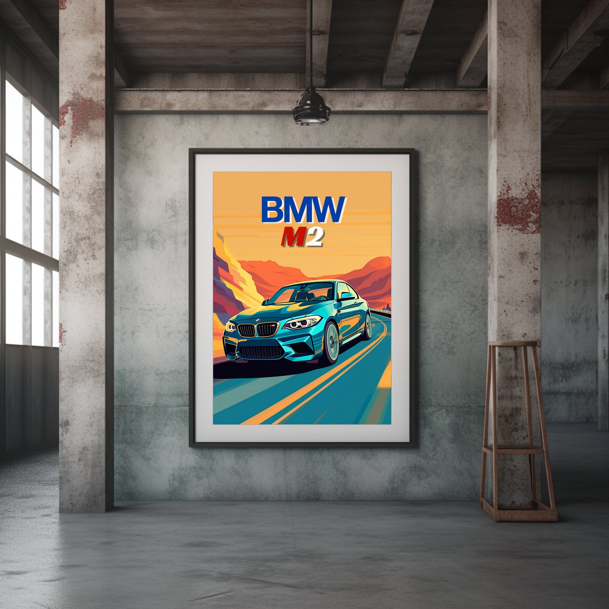 Affiche BMW M2 – Décoration murale de voiture de sport allemande moderne des années 2010