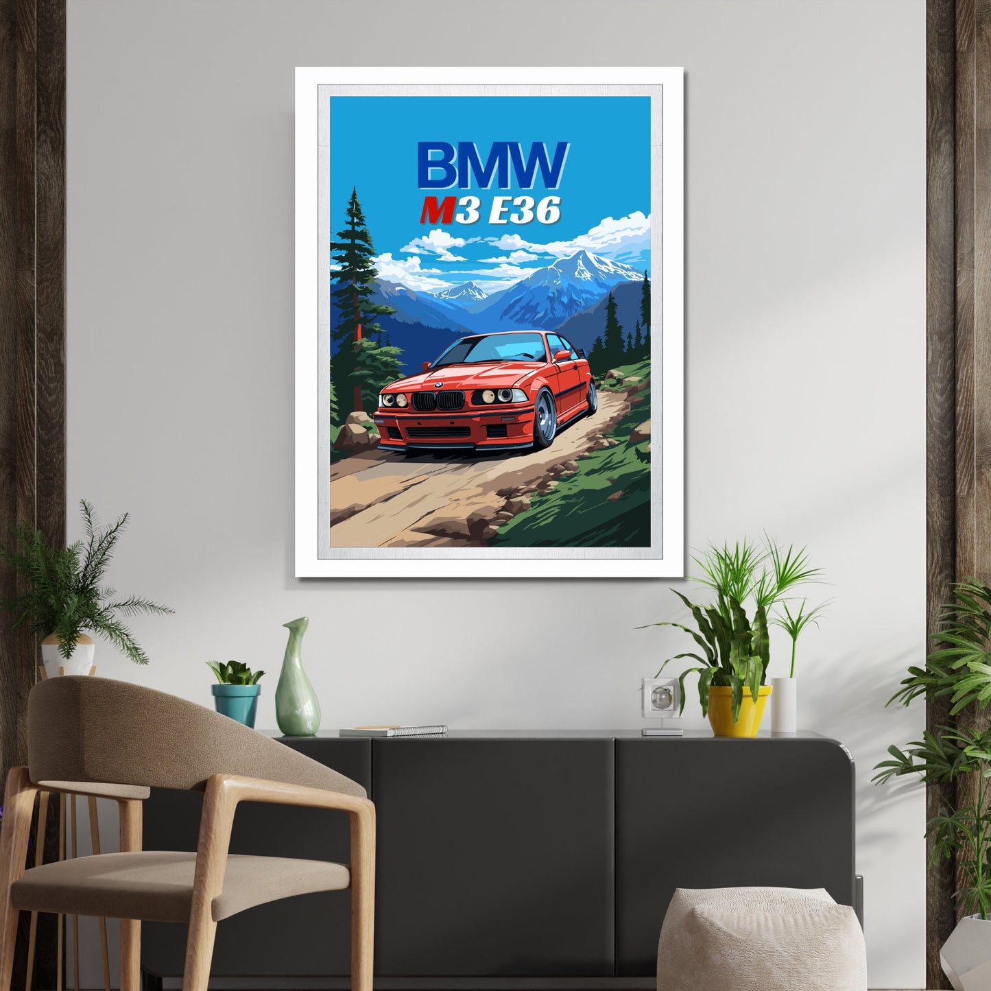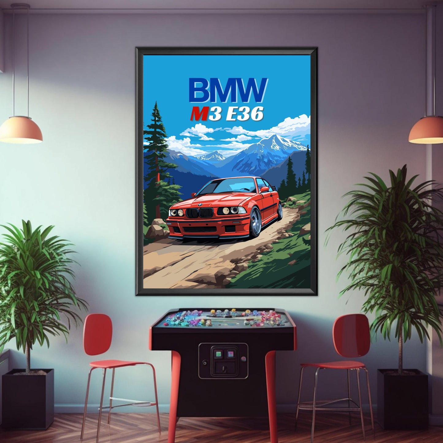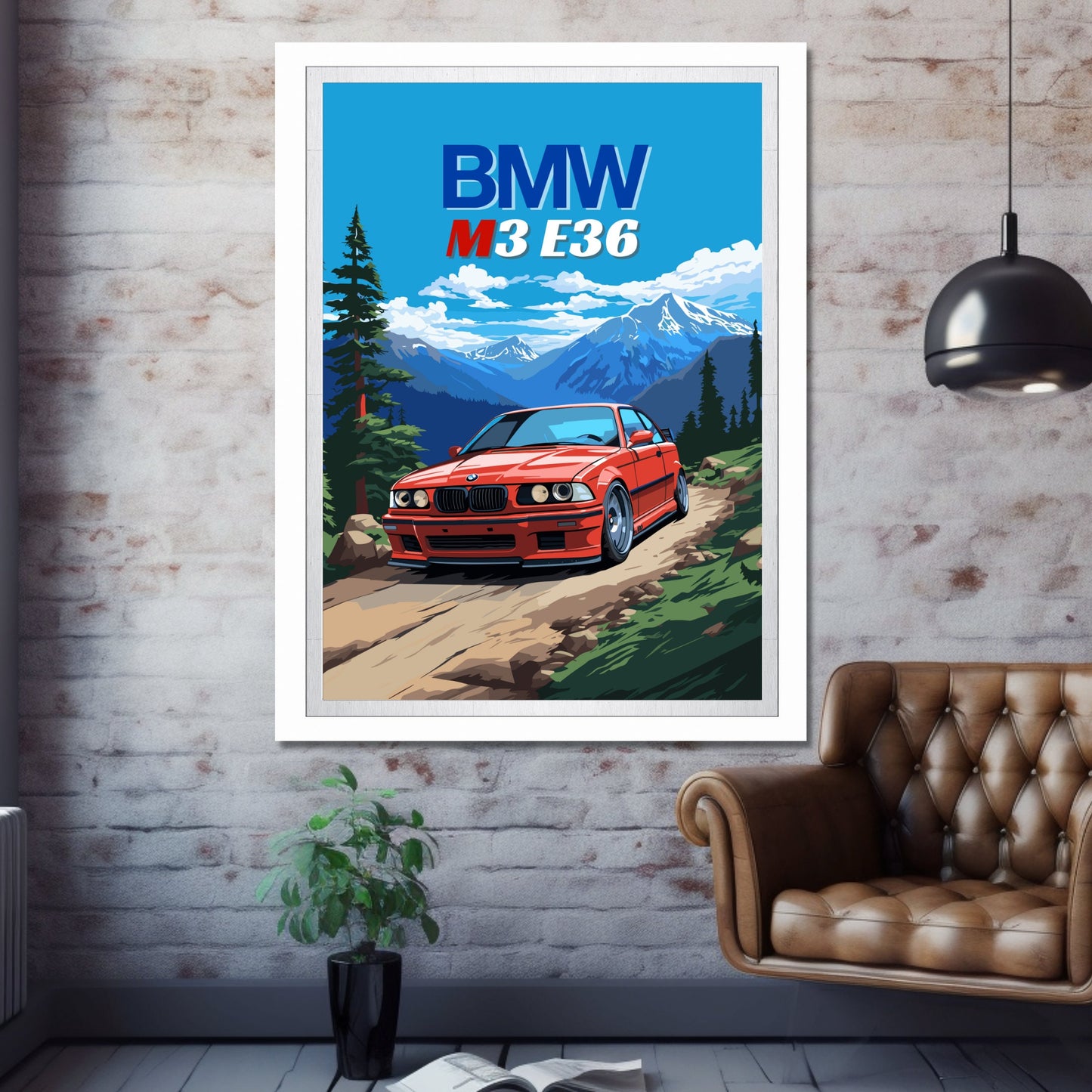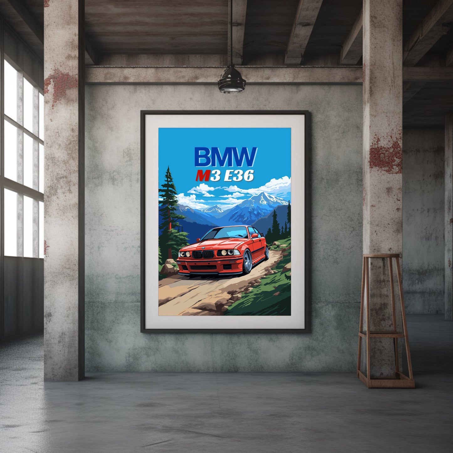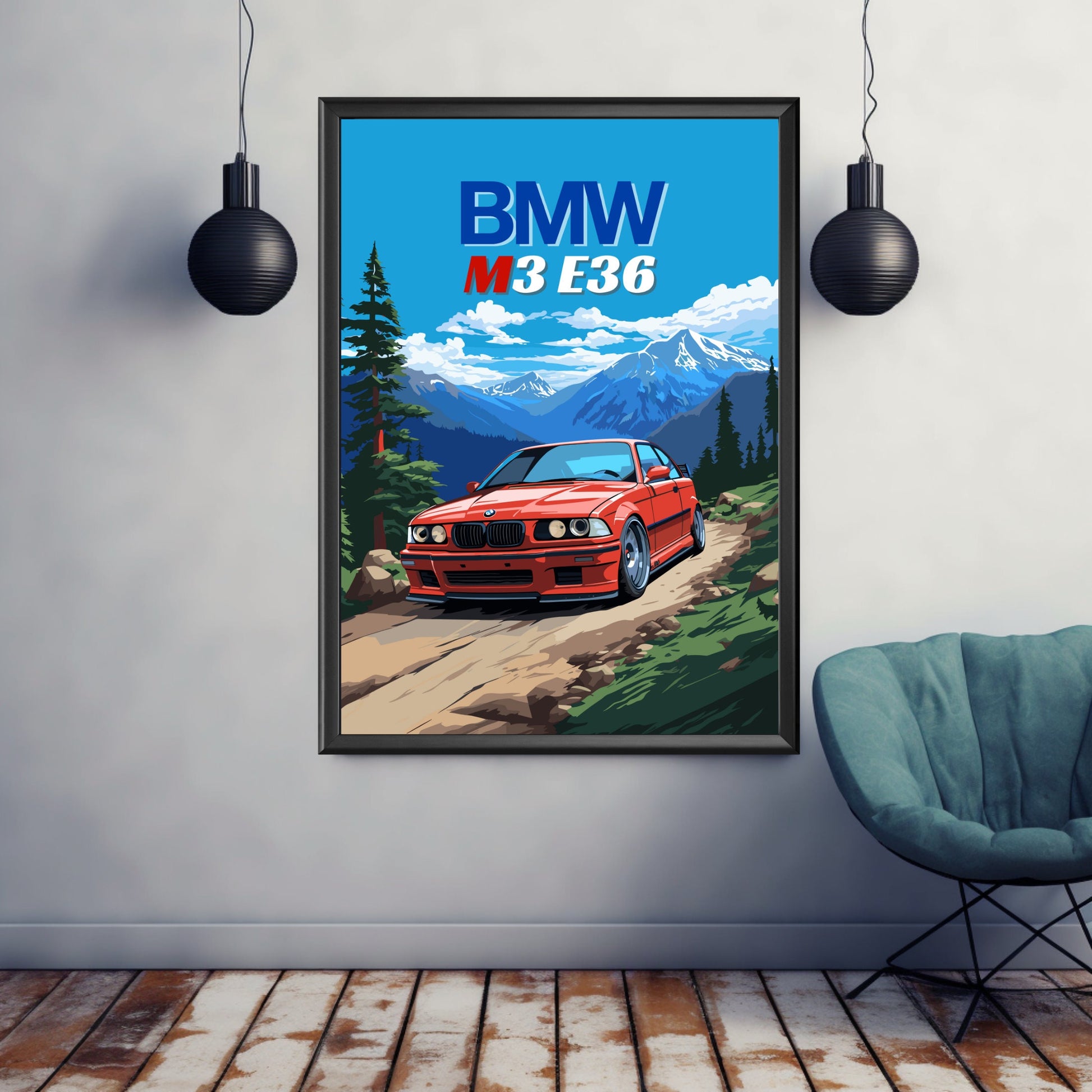 Impression BMW M3 E36 – Décoration murale représentant une voiture de sport allemande classique des années 1990