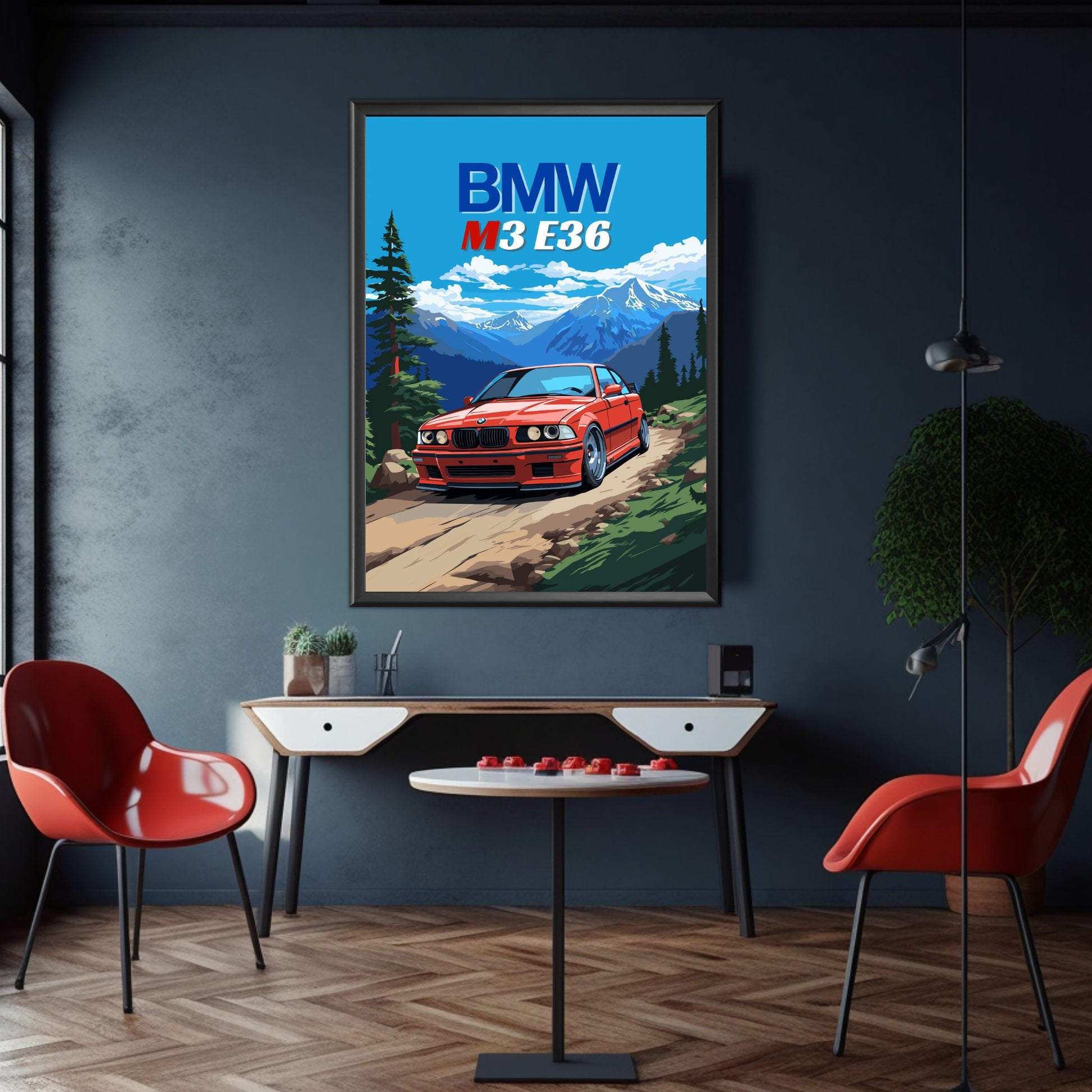 Imprimée sur des matériaux de haute qualité, la décoration murale BMW M3 E36 garantit des couleurs éclatantes et une durabilité exceptionnelle, ce qui en fait une pièce maîtresse de toute collection automobile. Parfaite pour les posters BMW classiques , les impressions de voitures des années 1990 et les souvenirs de voitures de sport allemandes vintage , cette affiche célèbre l'emblématique BMW M3 E36 et son héritage dans l'histoire des voitures de performance. Sublimez votre décoration avec cette impression BMW M3 E36 – Décoration murale de voiture de sport allemande classique des années 1990 et affichez votre passion pour les performances BMW vintage , les voitures de sport rétro et l'art automobile allemand classique .