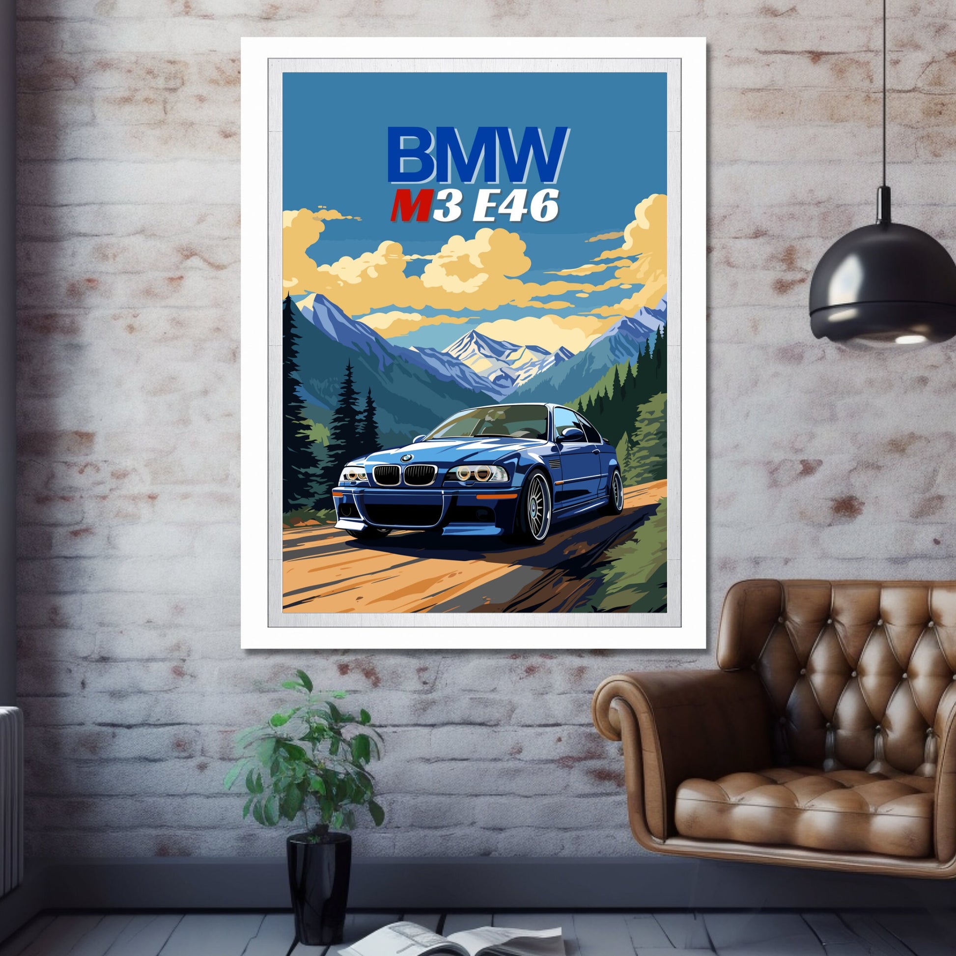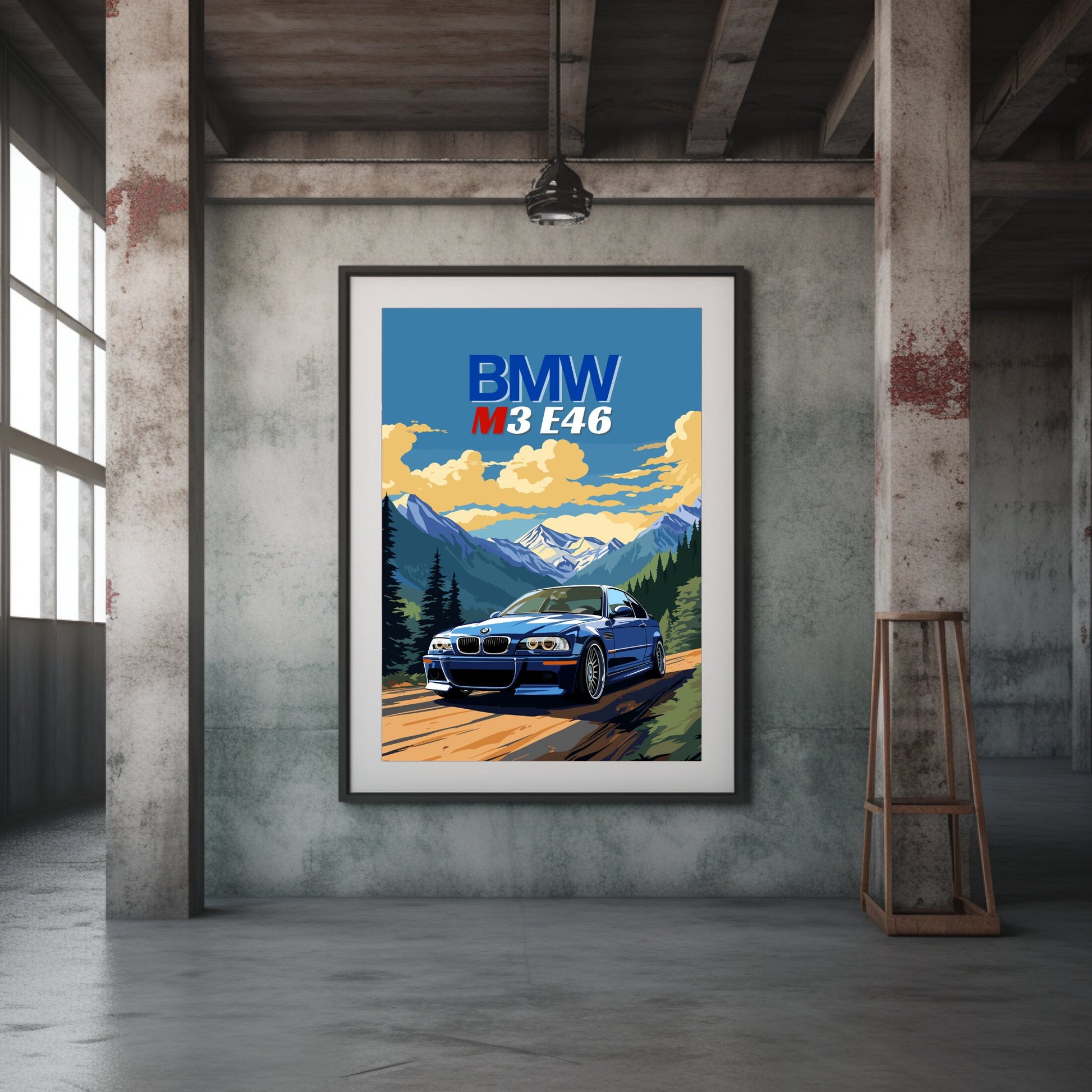 Décoration murale BMW M3 E46 – Impression d'une voiture de sport allemande classique des années 2000